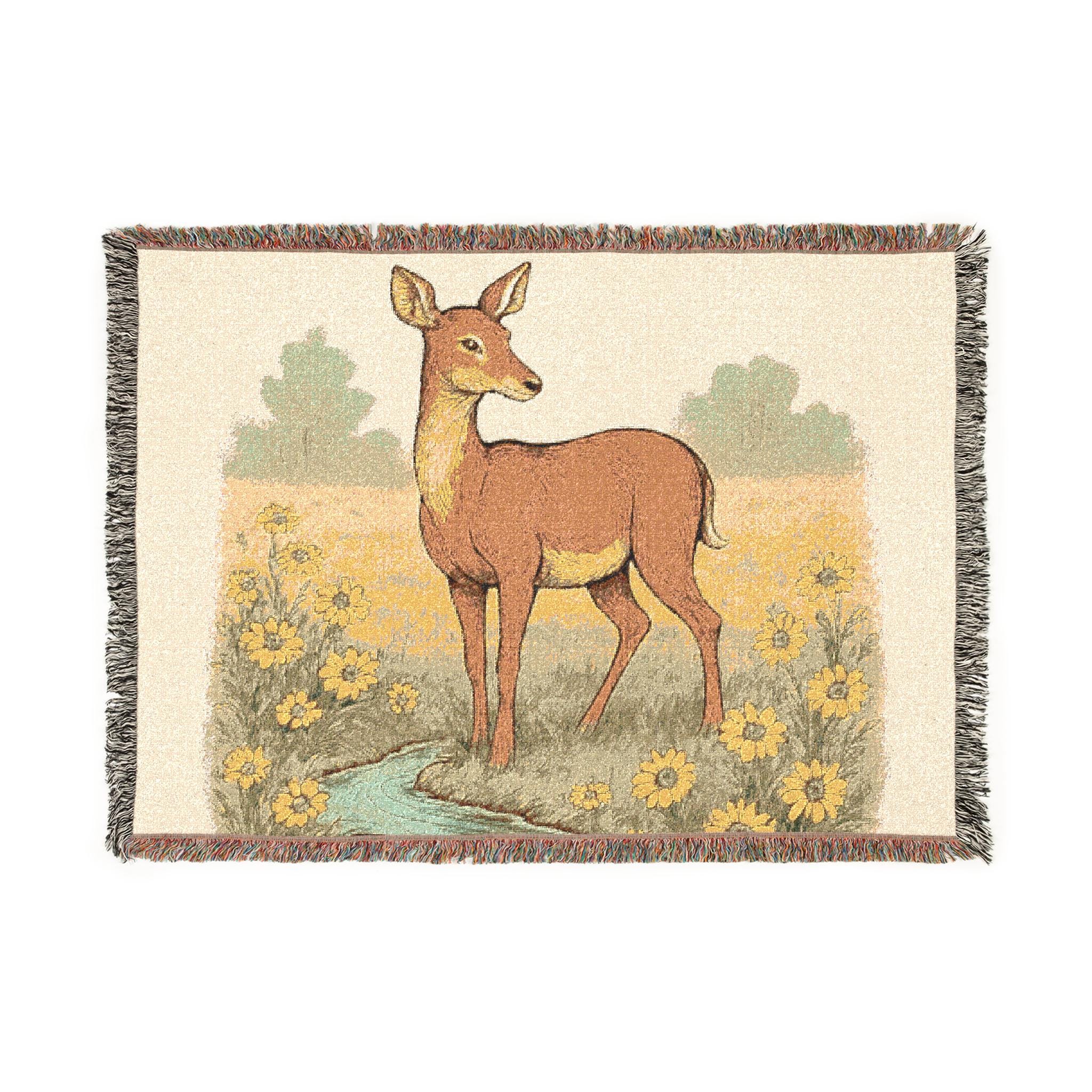 Woodland Deer Woven Blanket | Rustic Wildlife Throw, Sunflower Meadow Design