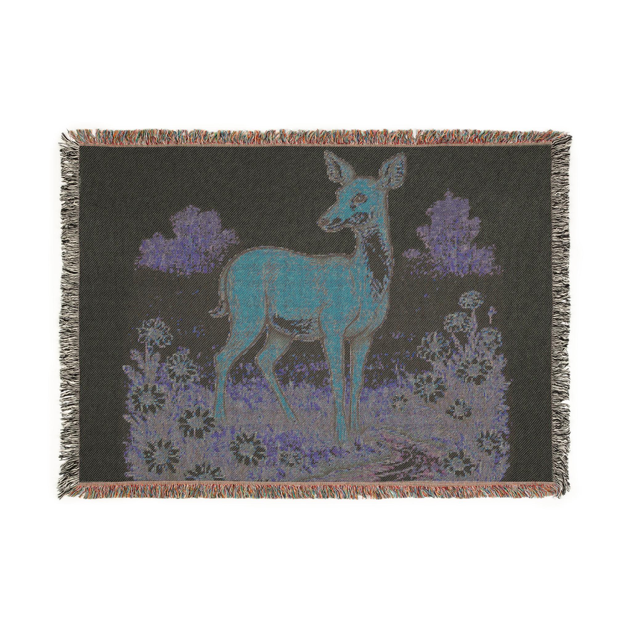 This woven blanket brings a quiet, woodland moment into your living space. Hand-tufted imagery of a gentle deer standing among wildflowers and a little stream feels like a sunlit walk at golden hour. The cotton weave gives the scene a soft painterly texture; choose the Artwork variant for bold color blocks or Photo for subtle tonal shifts. Finished with colorful fringed edges and available in three sizes, the blanket layers easily over a couch, chair, or foot of a bed to add warmth and a storybook touch to cozy evenings and seasonal gatherings.
