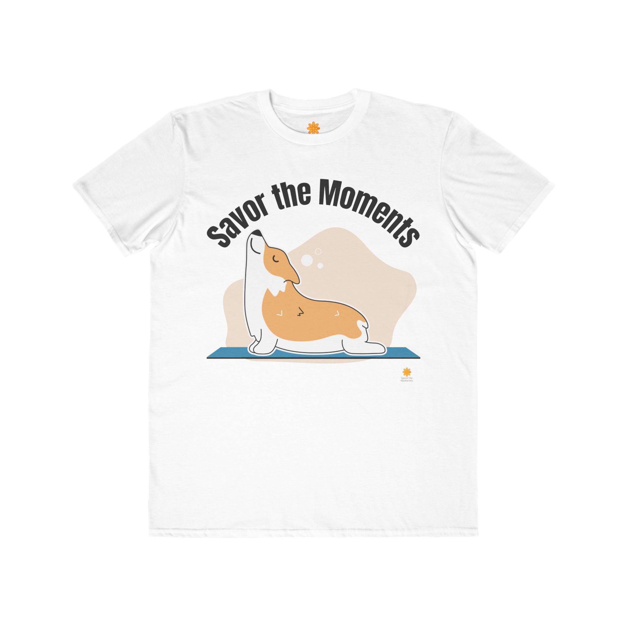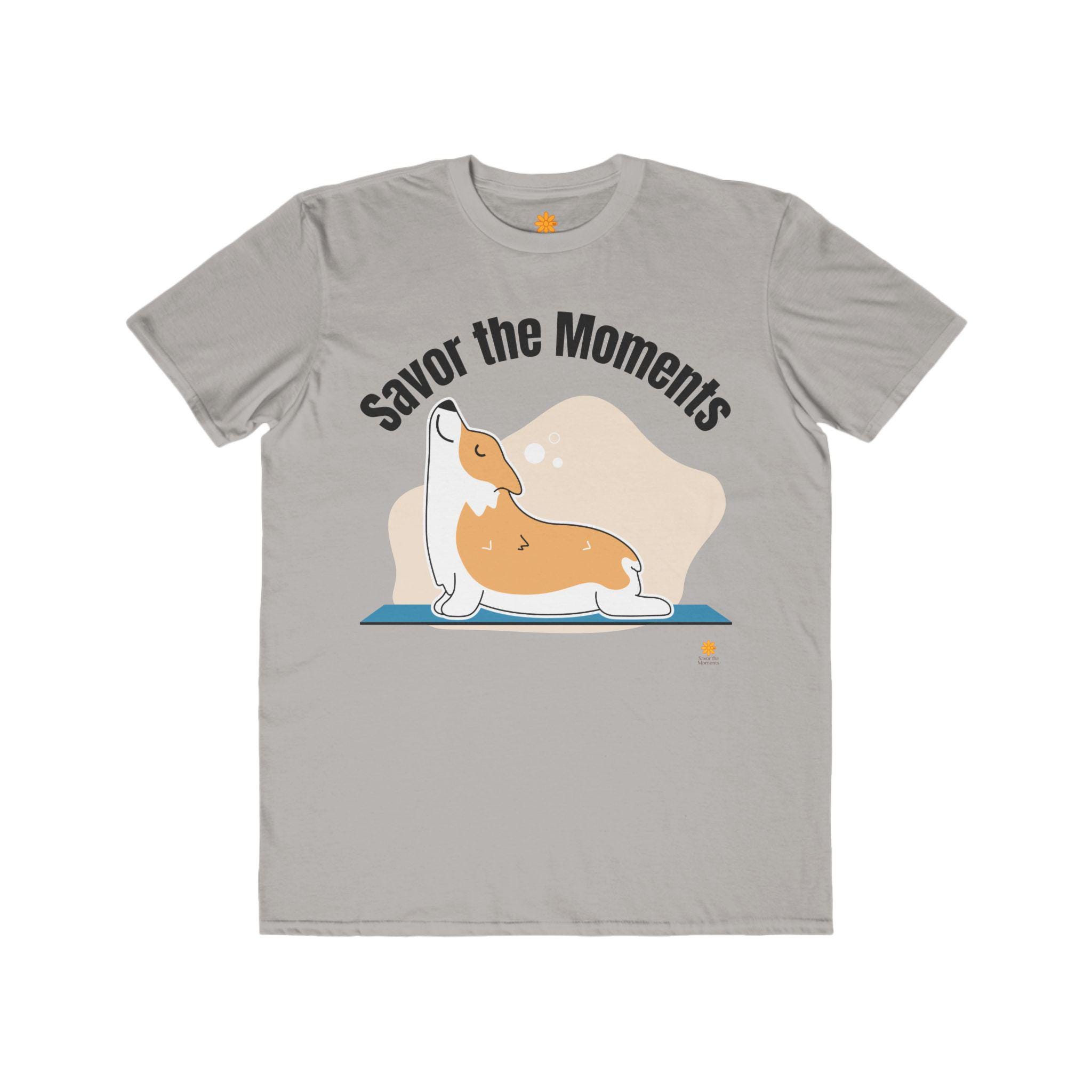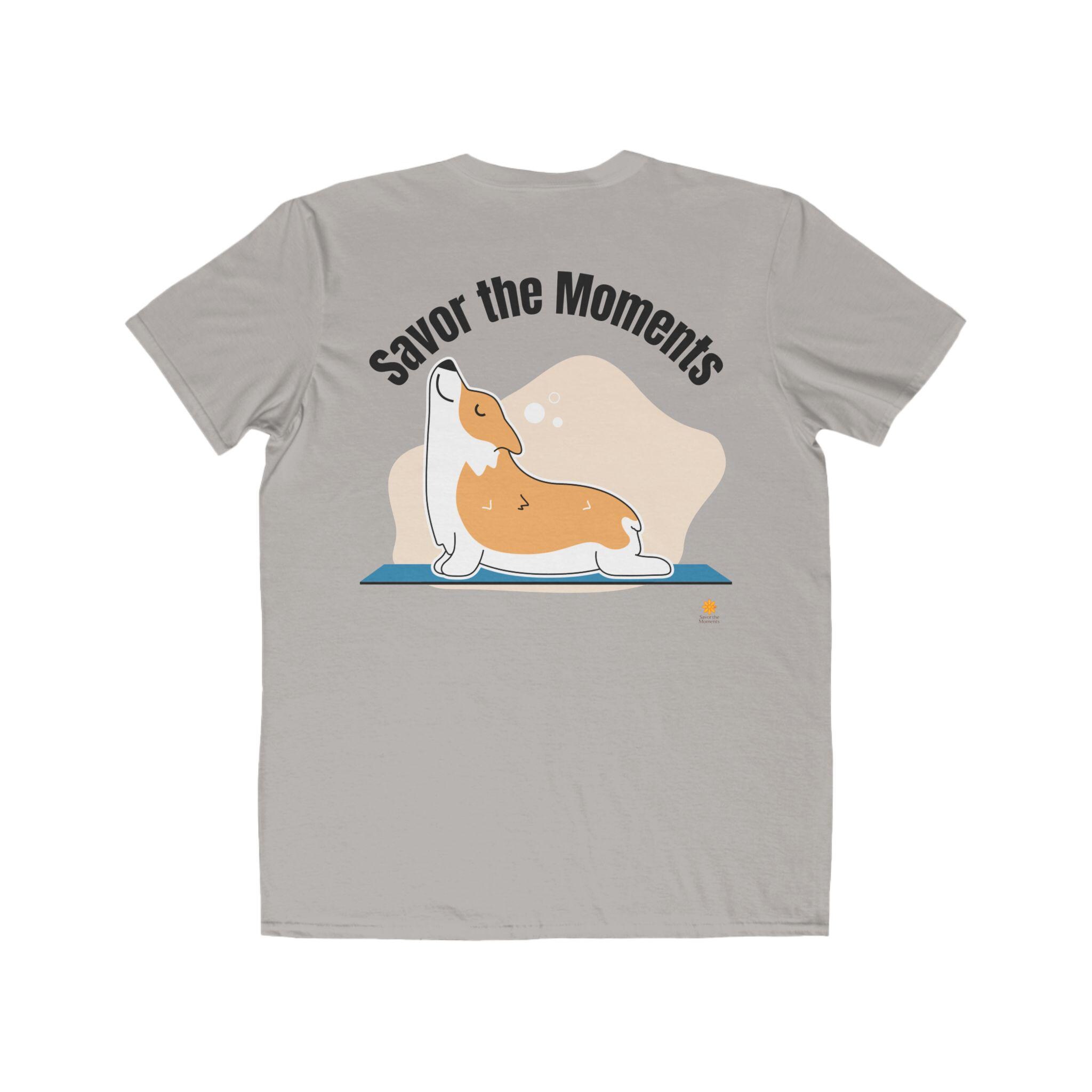 Lightweight and breezy, this tee carries a gentle, feel-good message: Savor the Moments. A relaxed corgi in a stretch pose sits beneath hand-lettered text, inviting slow breaths and small joys. The soft, low-weight fabric and classic cut let the design breathe without weighing you down—great for late-morning coffee, a quiet walk, or stretching into the day. Wear it when you want a calm reminder to pause, notice, and smile.