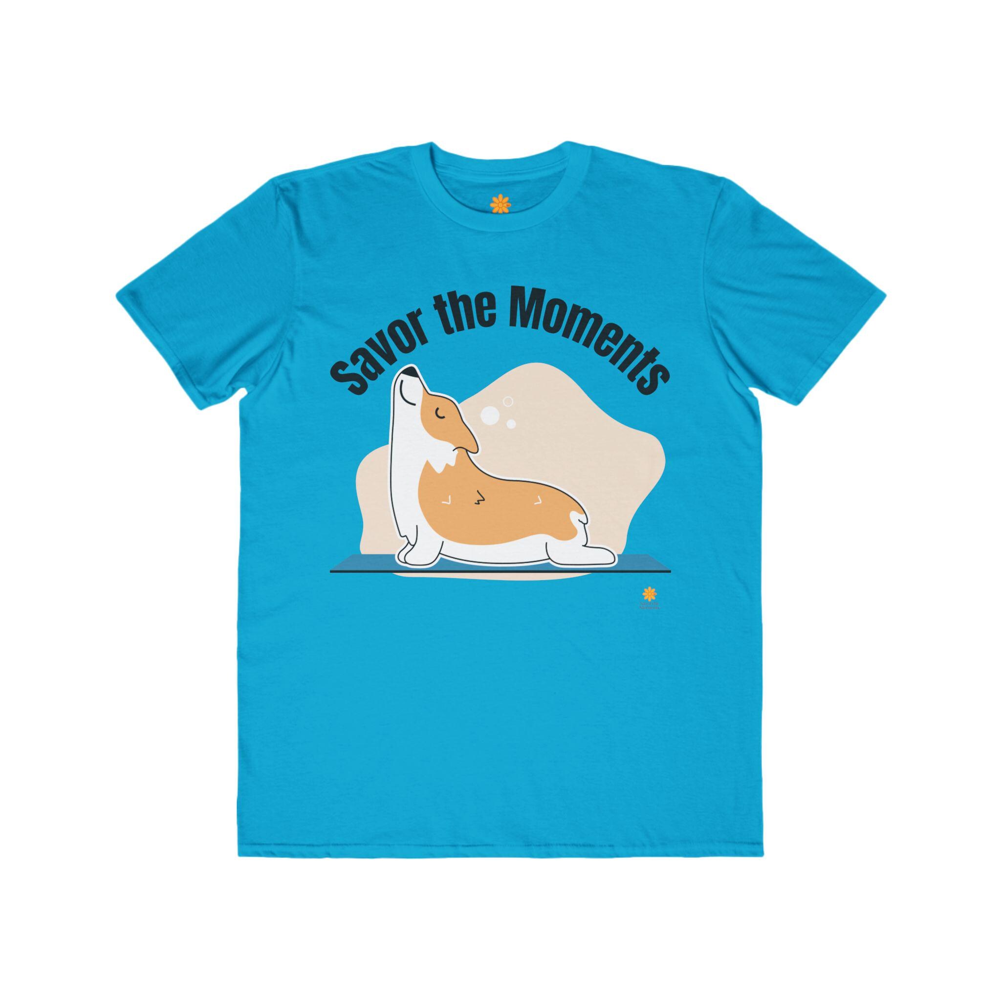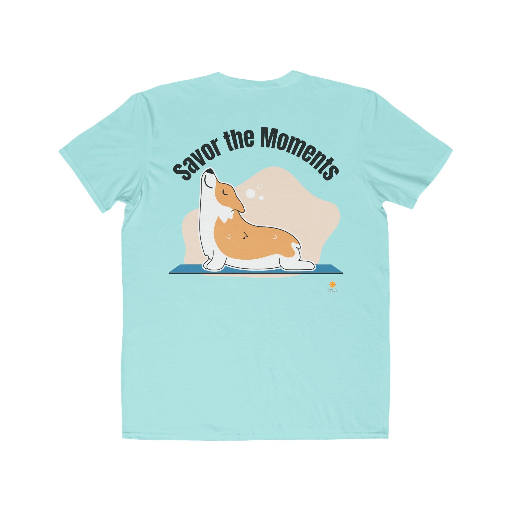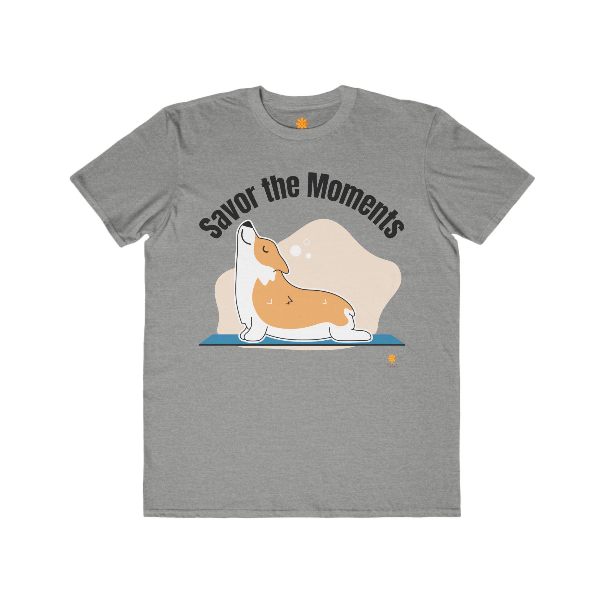 Lightweight and breezy, this tee carries a gentle, feel-good message: Savor the Moments. A relaxed corgi in a stretch pose sits beneath hand-lettered text, inviting slow breaths and small joys. The soft, low-weight fabric and classic cut let the design breathe without weighing you down—great for late-morning coffee, a quiet walk, or stretching into the day. Wear it when you want a calm reminder to pause, notice, and smile.