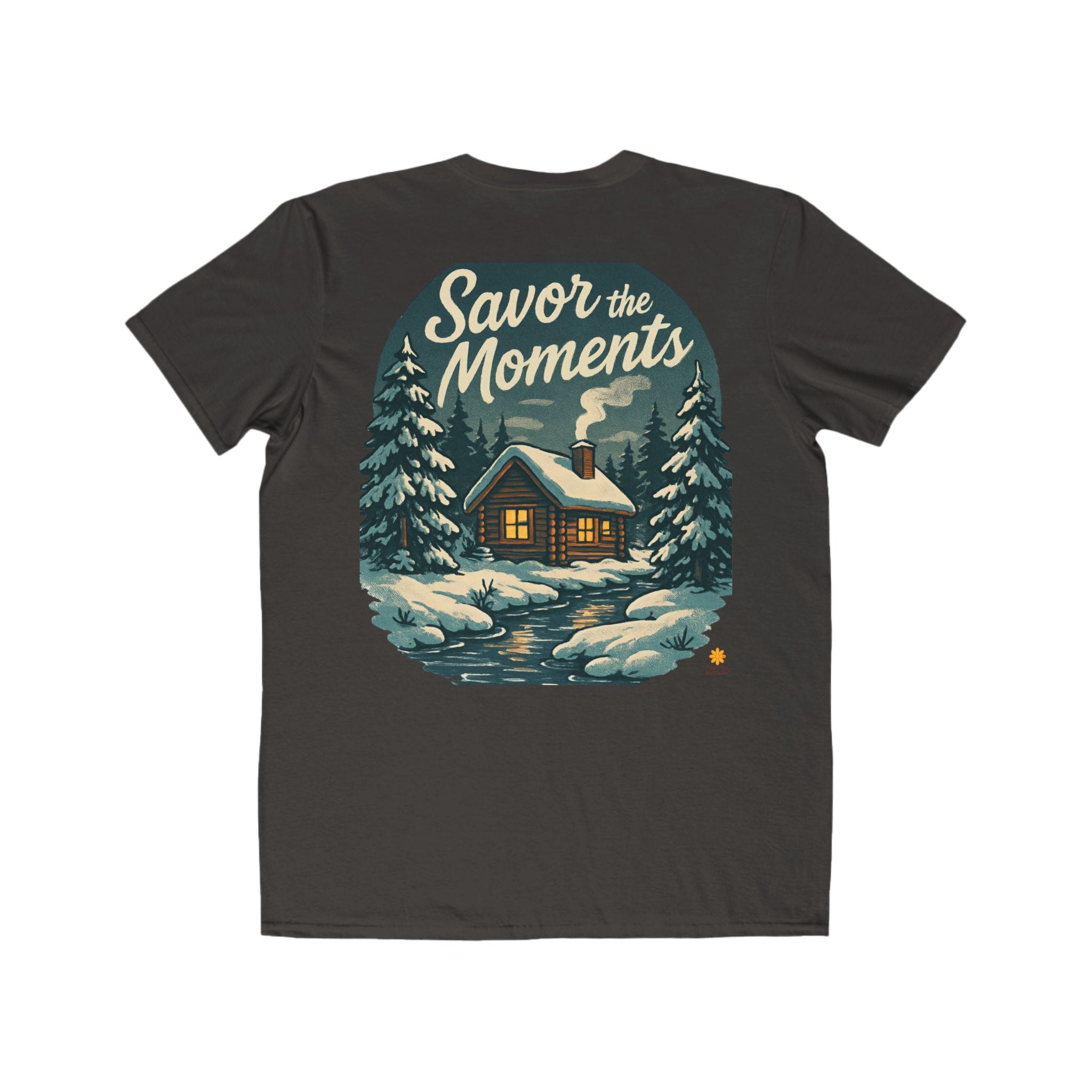Winter Snowy Lodge T-Shirt Savor the Moments Cabin Scene Tee |