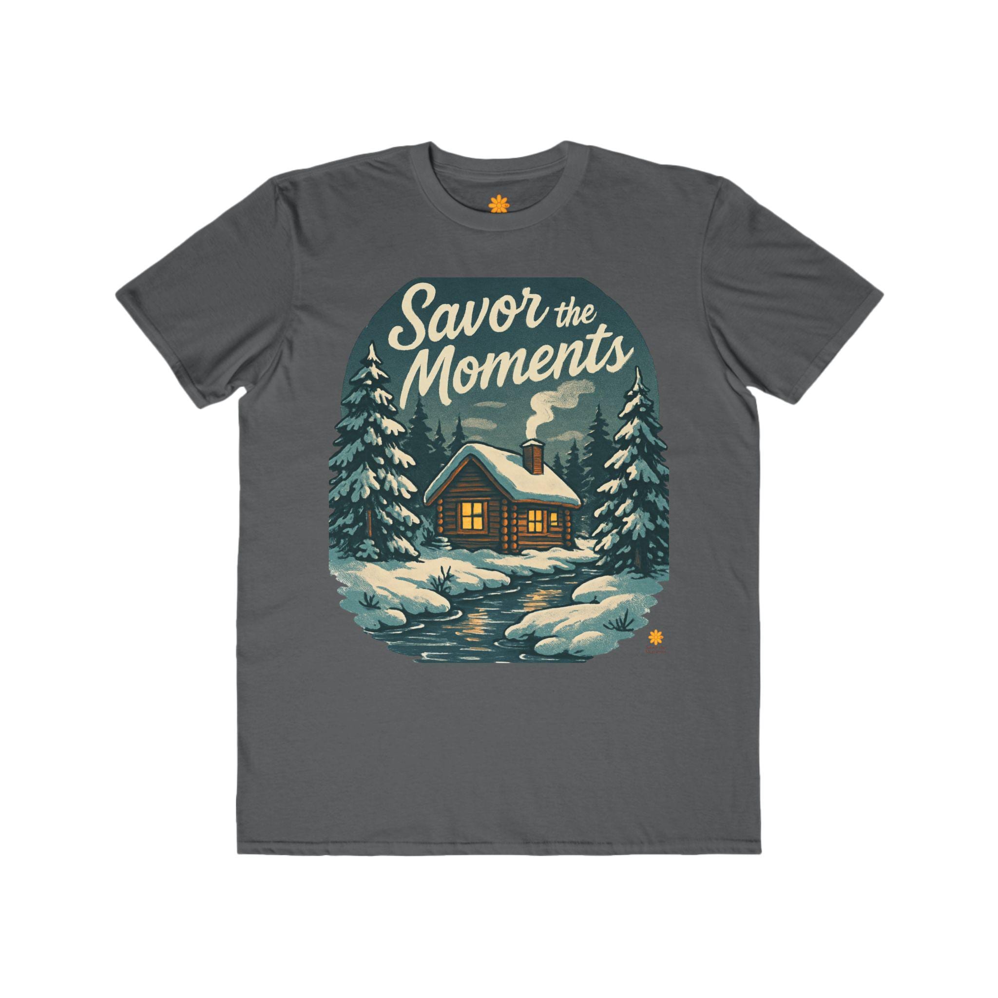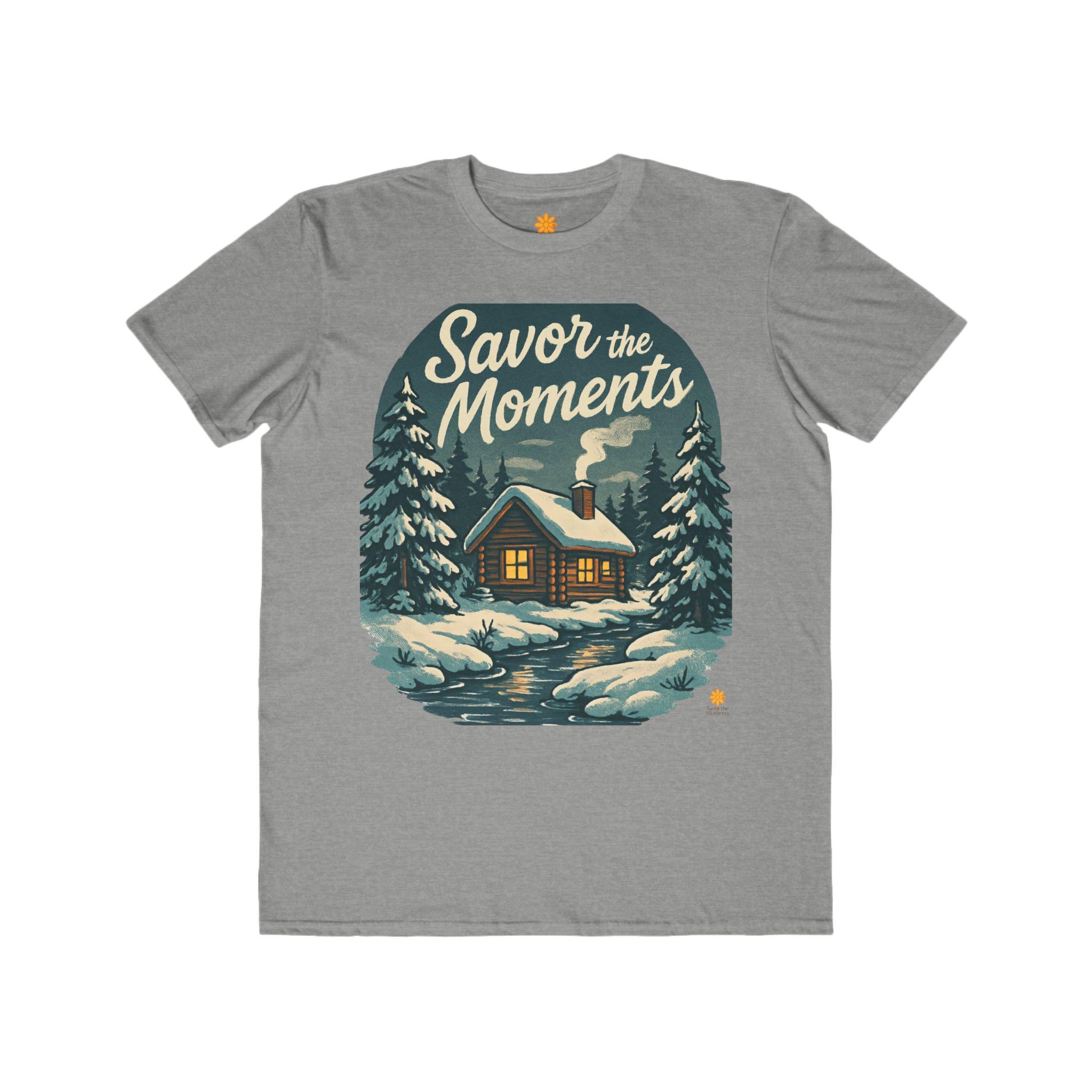 A lightweight tee that invites quiet evenings and slow breaths. The vintage-style cabin print — soft moonlight, snow-dusted pines, and a warm glow from the cottage window — carries a calm, nostalgic mood. Wear it when you want to lean into cozy moments: stargazing after a day on the trail, sipping a slow cup of coffee by a frosted window, or layering under a flannel for a fireside walk. The modern classic fit and soft, breathable fabric make it comfortable for all-day wear without feeling bulky. The message and artwork read like a reminder to pause and savor the small, ordinary pockets of peace in a busy life.