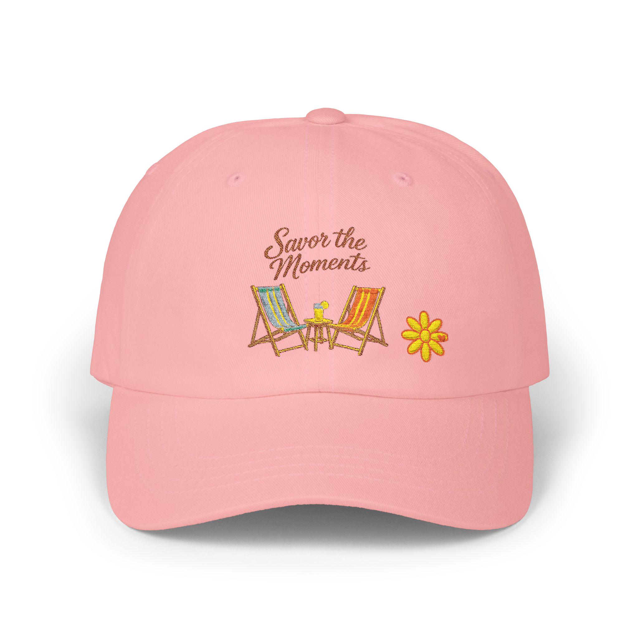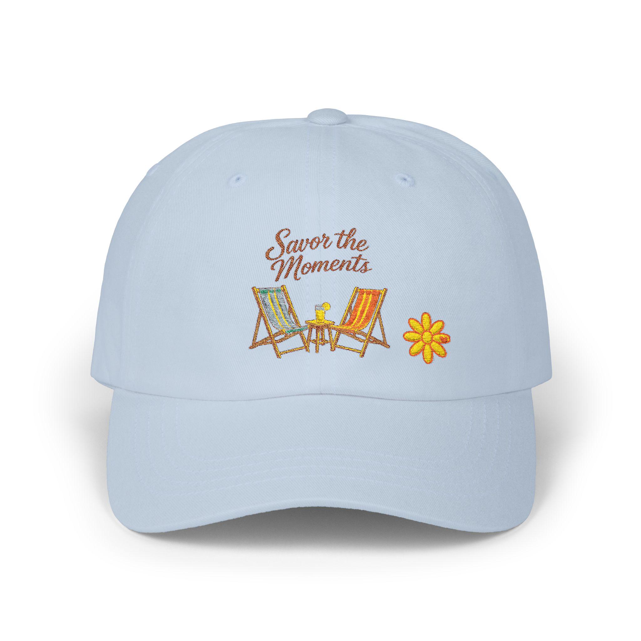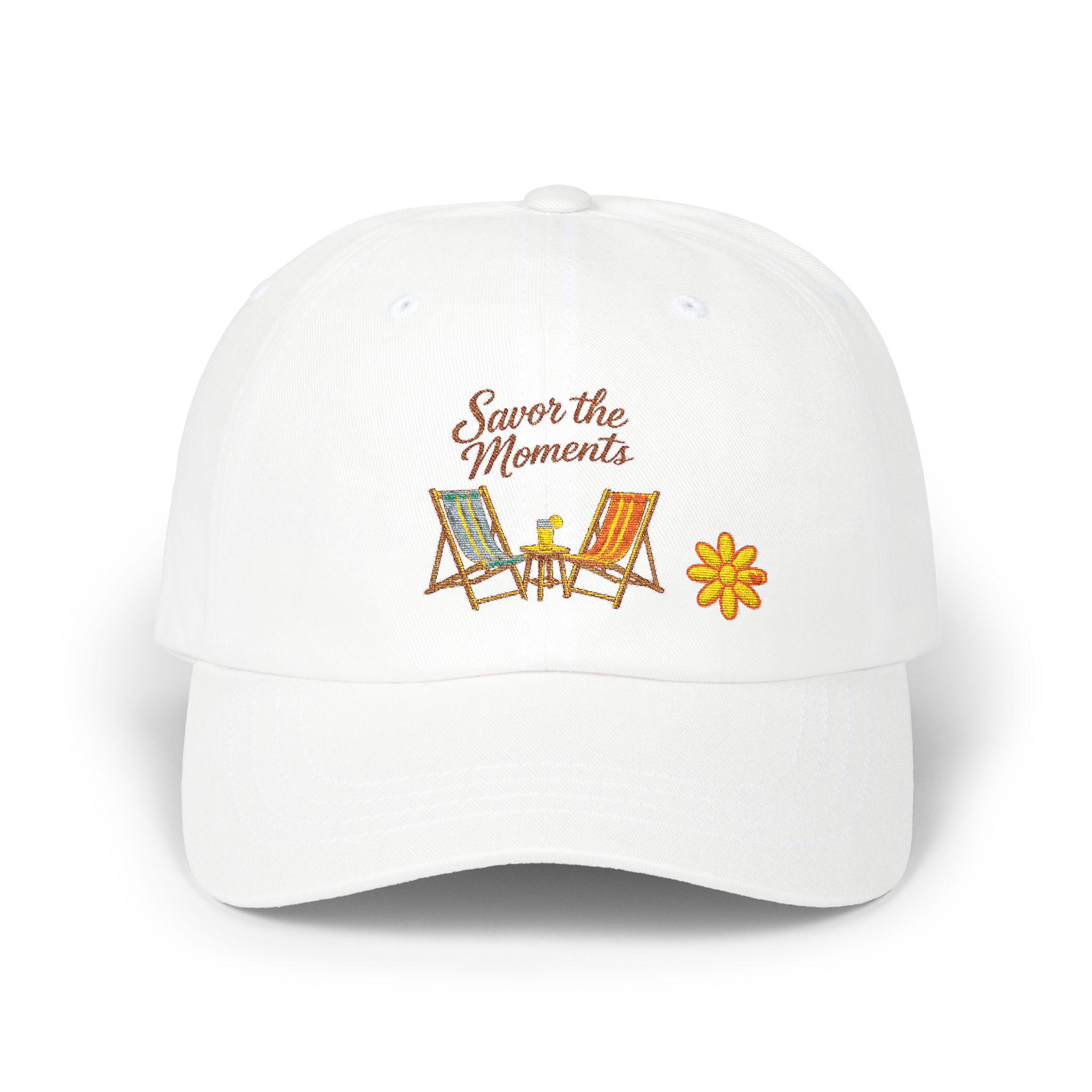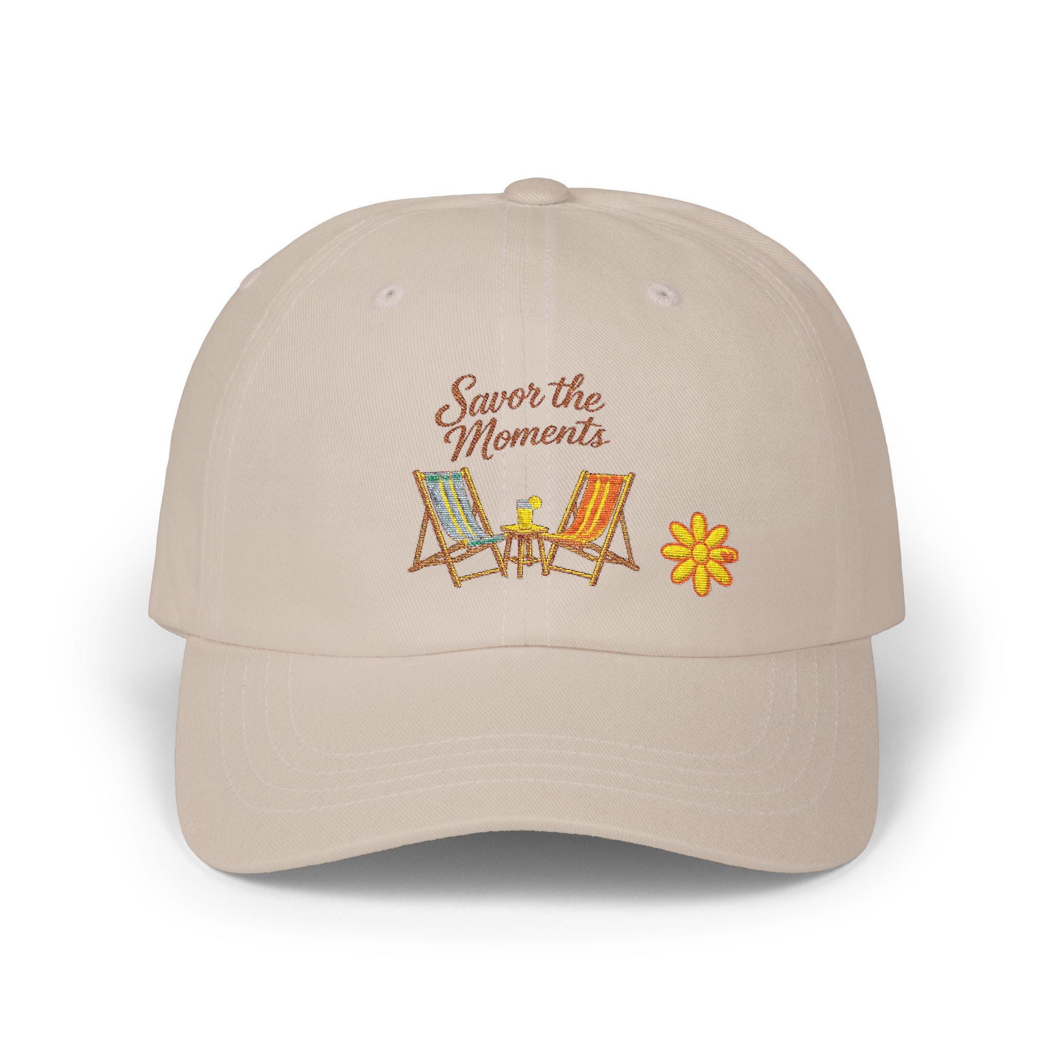 A relaxed, sun-ready cap embroidered with two vintage beach chairs and the phrase “Savor the Moments.” Soft, 100% cotton feels lived-in from the first wear. The low-profile, unstructured silhouette and pre-curved Permacurv visor give a laid-back look that tucks easily under a hood or pairs with a warm sweater on cool evenings. An antique-brass hideaway strap lets you fine-tune the fit while the sewn-in label and visor sticker keep the authentic, handcrafted vibe. Wear it driving down coastal roads, sitting at a campground fire, or while sipping coffee on a slow morning — it’s made to carry small, quiet rituals with you.