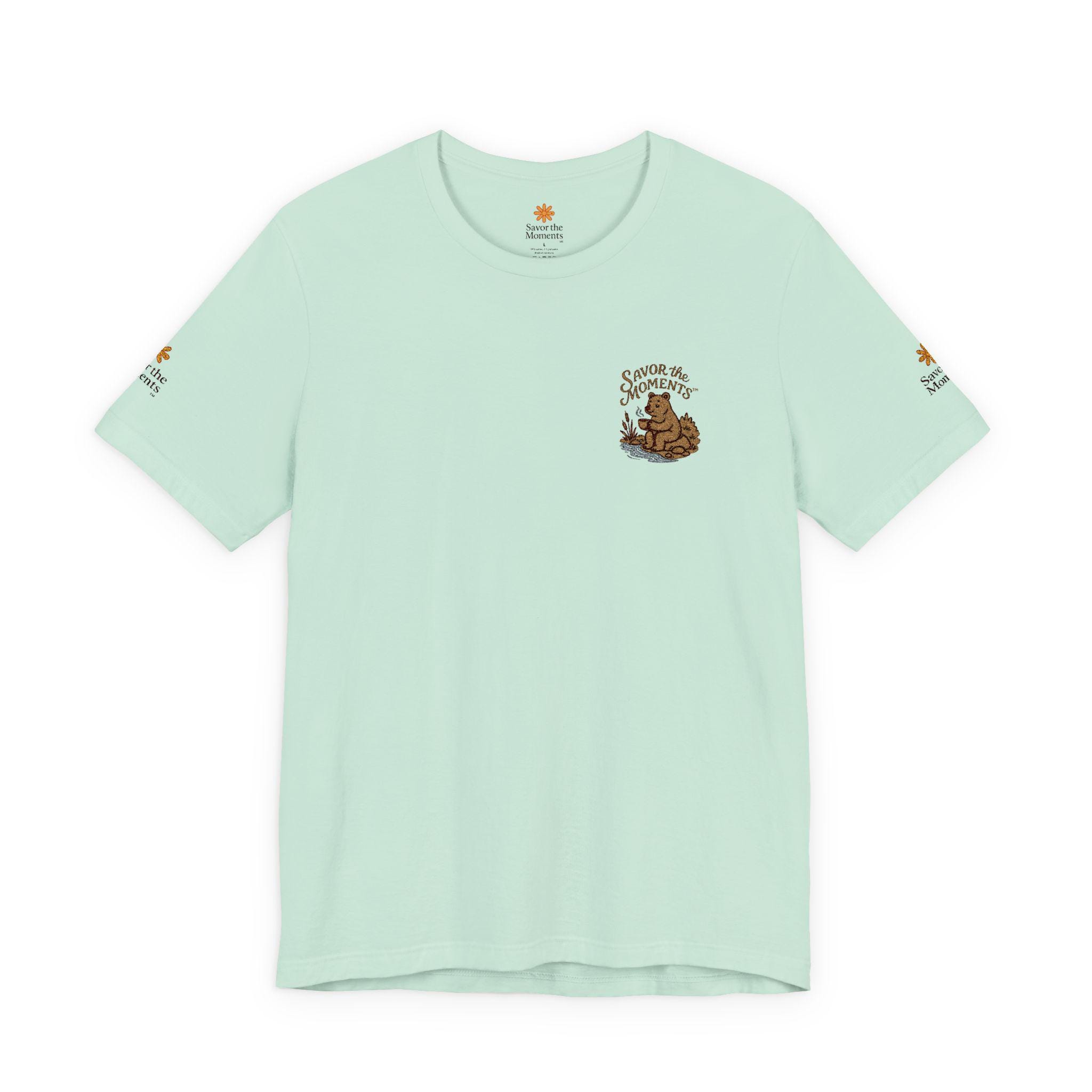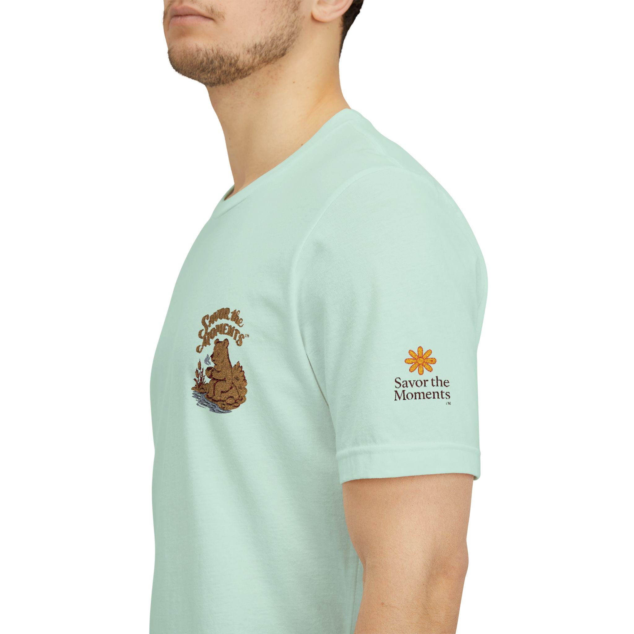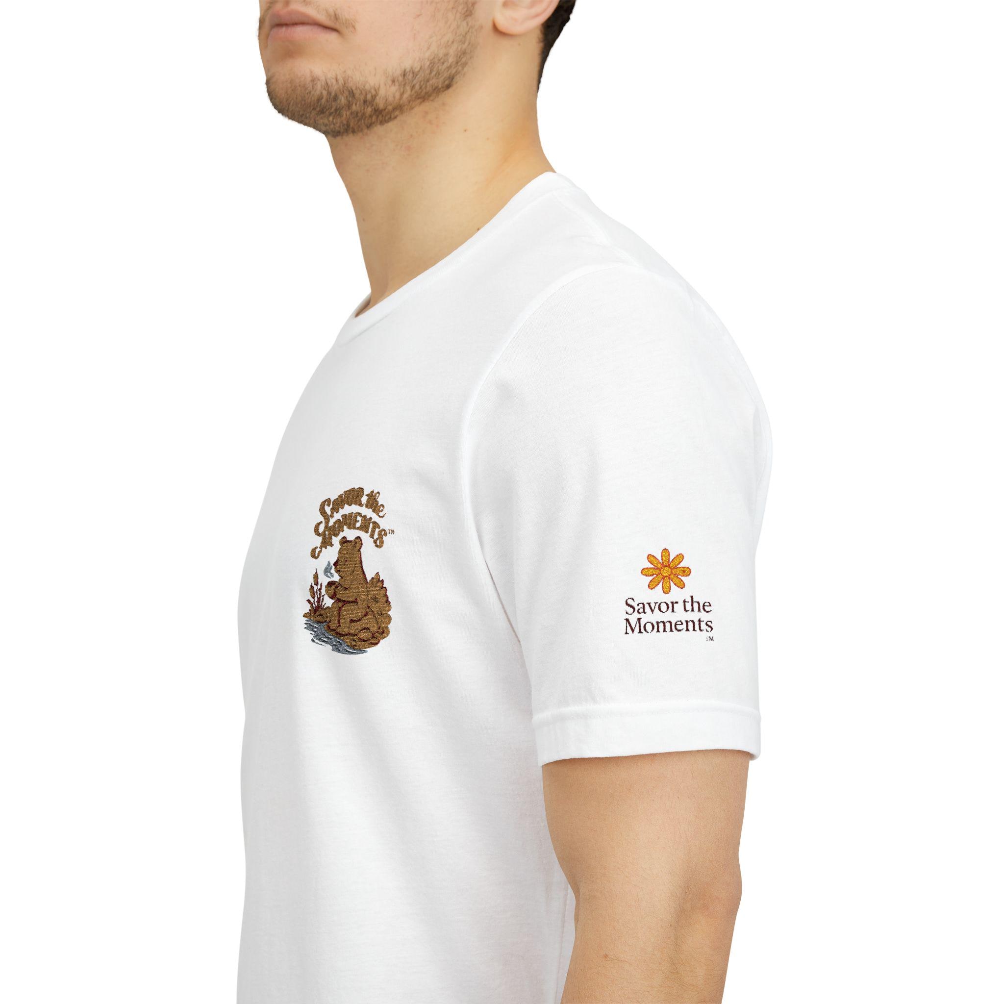 Bear coffee cup a lightweight, breathable tee made from 100% Airlume combed and ring-spun cotton that feels soft against the skin and layers easily. Subtle, nature-inspired artwork sits over the left chest with matching sleeve accents, giving a quiet, outdoorsy character without shouting for attention. Tailored with side seams, shoulder tape, and a ribbed knit collar to keep its shape through repeat wear. Ethically produced and REACH certified, this tee works for everyday adventures: mornings at the trailhead, slow coffee on the porch, or casual meetups with friends who appreciate thoughtful design.