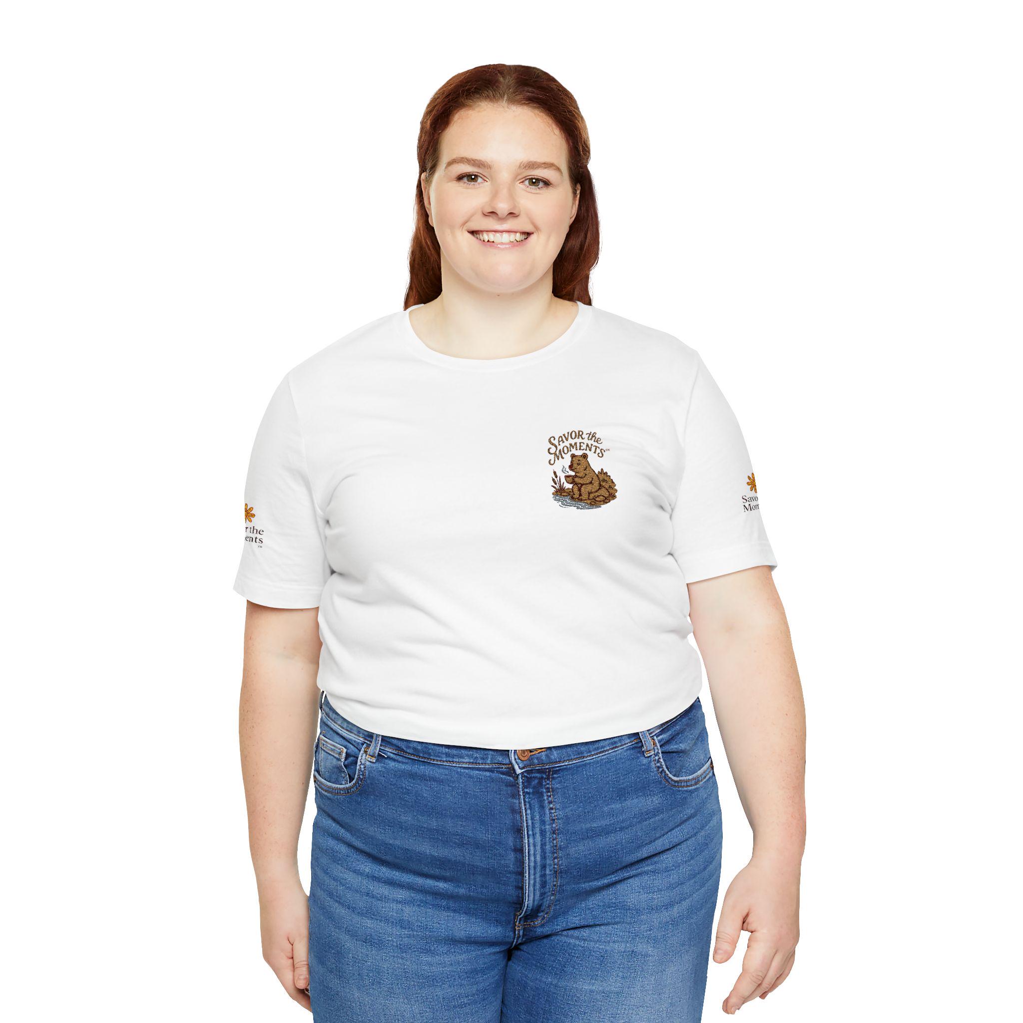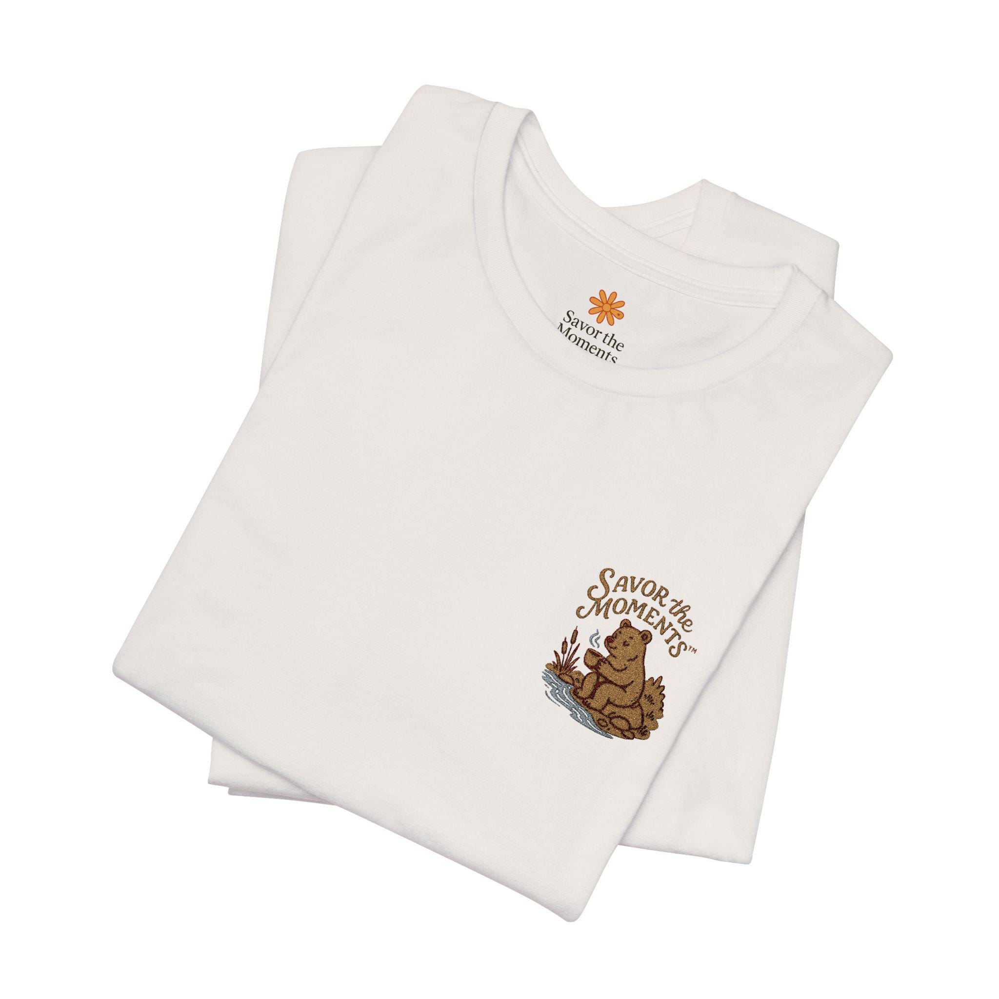 Bear coffee cup Illustration tee | Small Chest Print, Sleeve Accents
