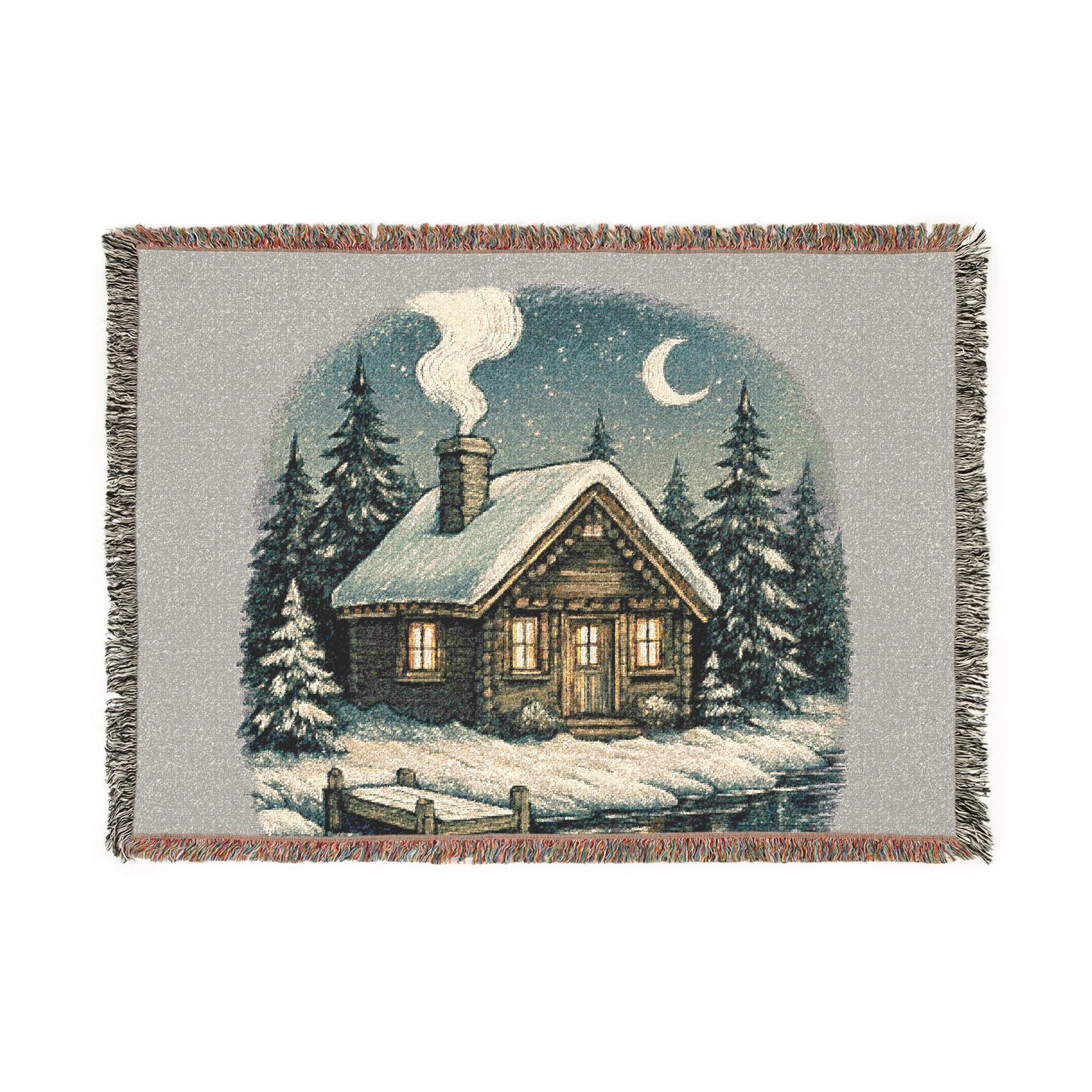 Cozy Snowy Cabin Woven Blanket | Winter Cabin Throw