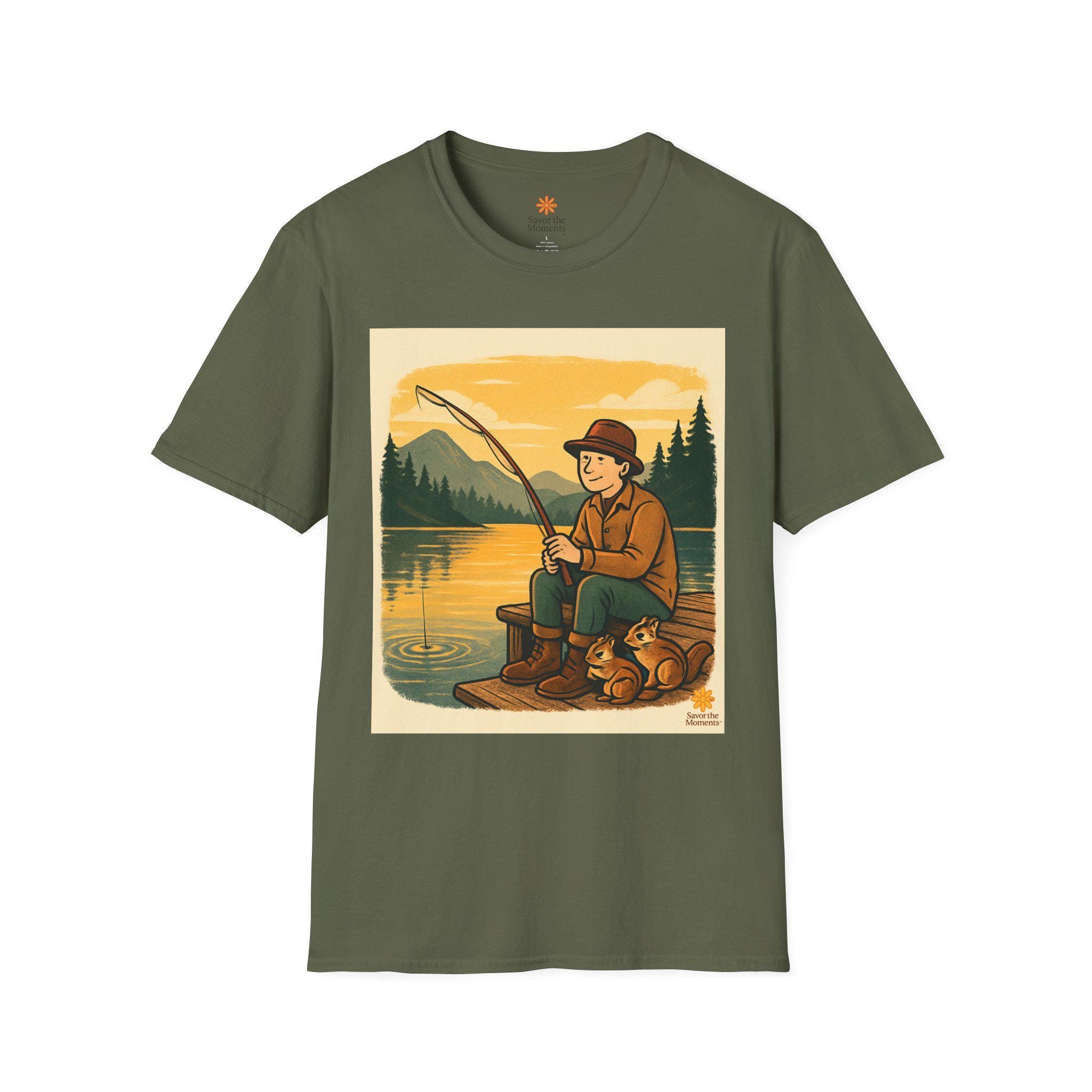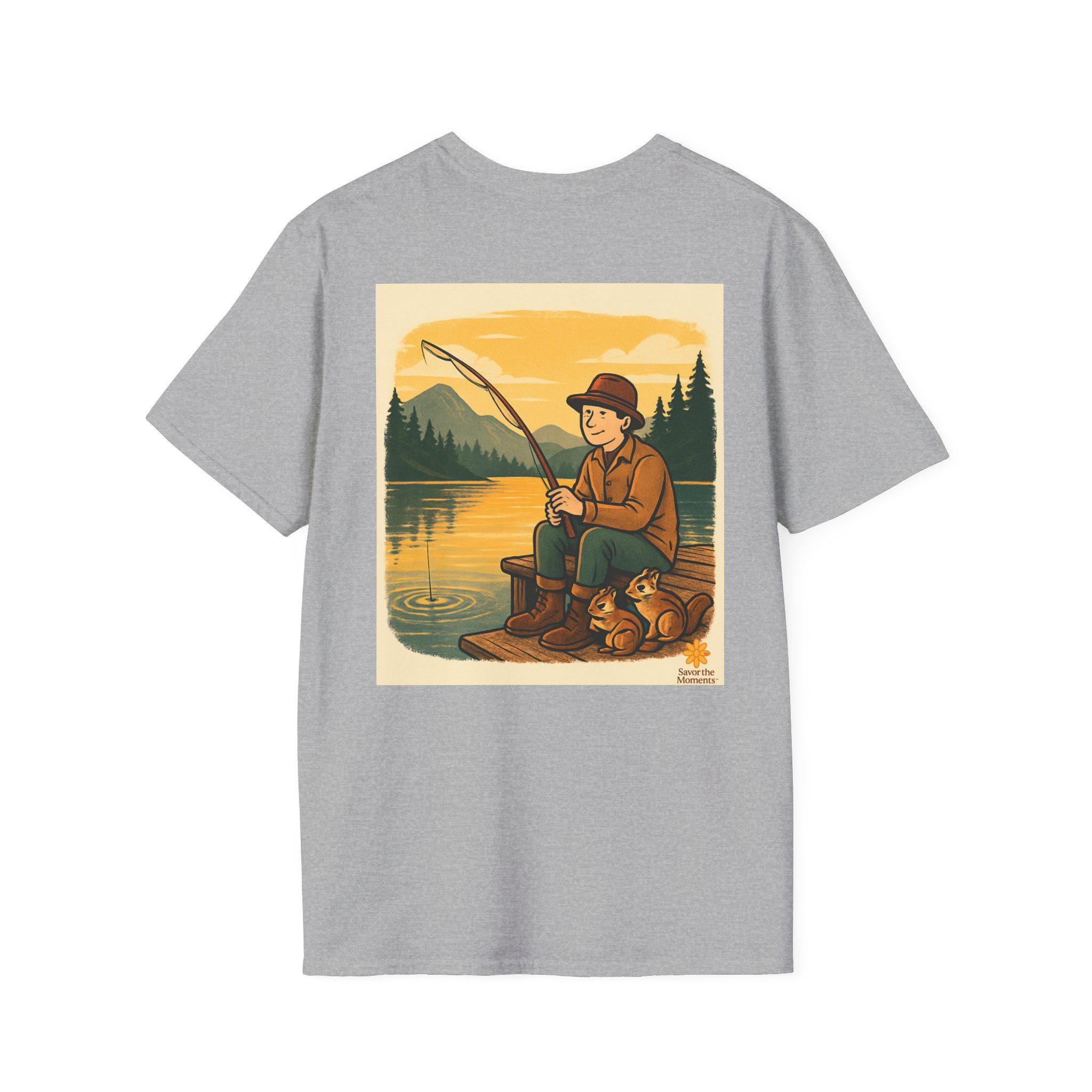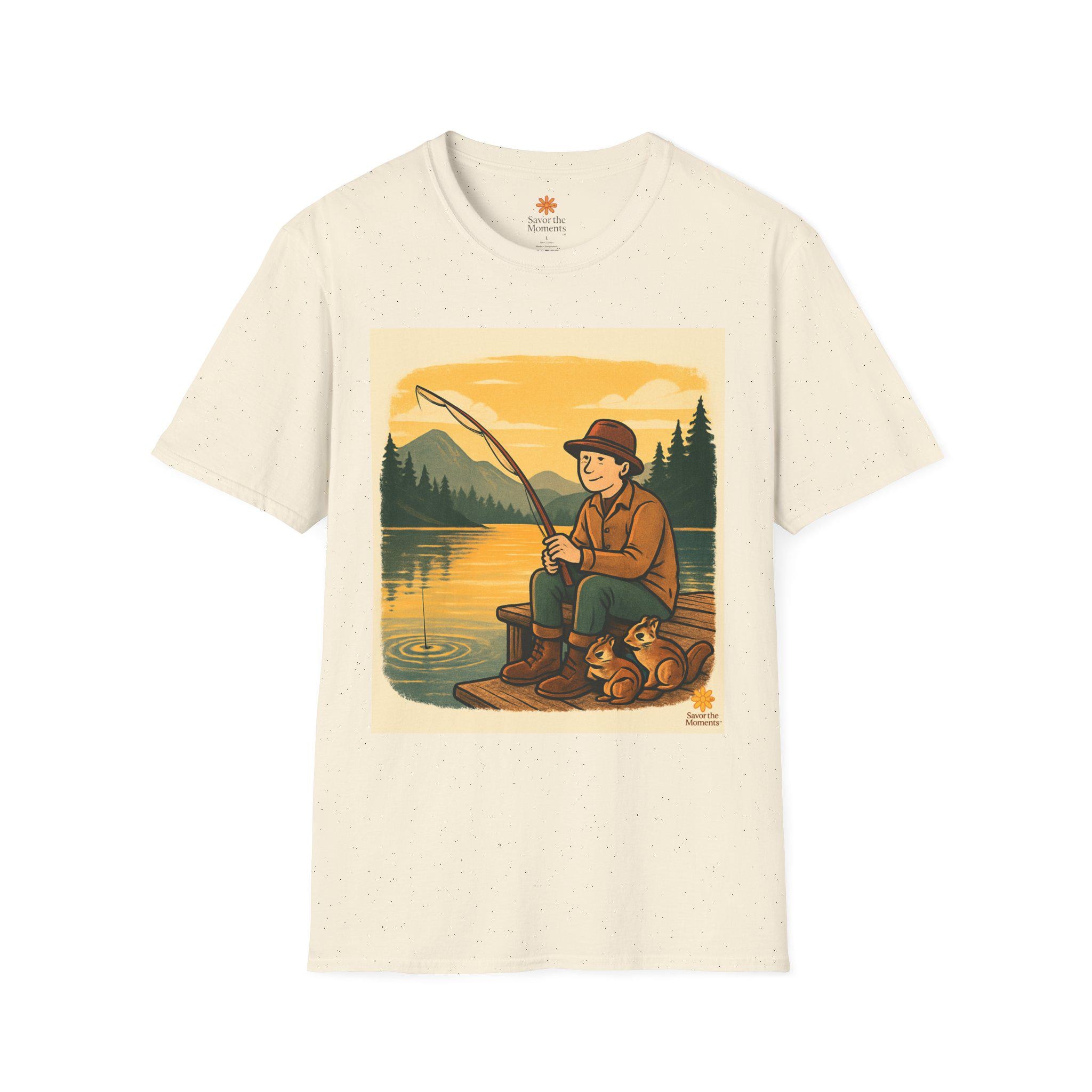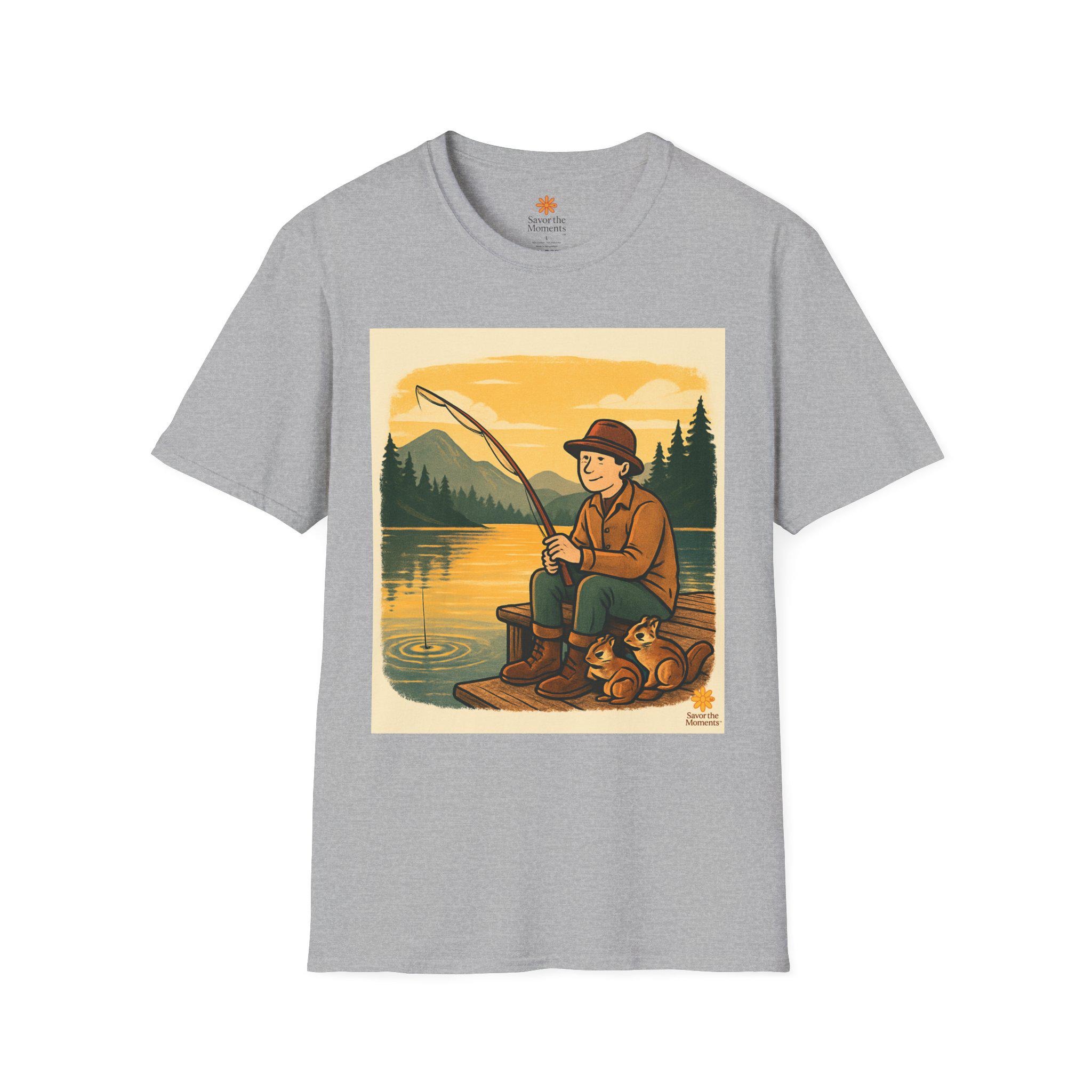 Sunset Pier Fishing T‑Shirt with Chipmunks • Relaxing Angler Tee • Calm Waters Nature Scene • Outdoors Adventure Top. Soft, timeless, and quietly nostalgic — this tee carries a lakeside pause you can wear. A warm sunrise palette and the silhouette of a lone angler are printed with care, inviting slow mornings in a boat, quiet lines in the water, and conversations that wander. Lightweight and incredibly soft, the shirt slips on for weekend escapes, dockside coffee, or evenings around a lantern. It holds its shape, breathes easily, and lets the design remain the calm center of any layering setup. For someone who keeps a tackle box in the trunk and remembers that the best catches are the small, steady moments, this shirt feels like a familiar day out on the water.