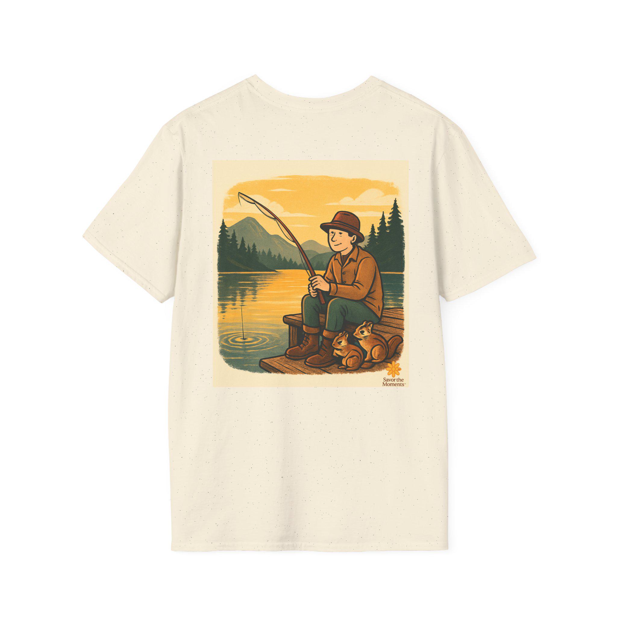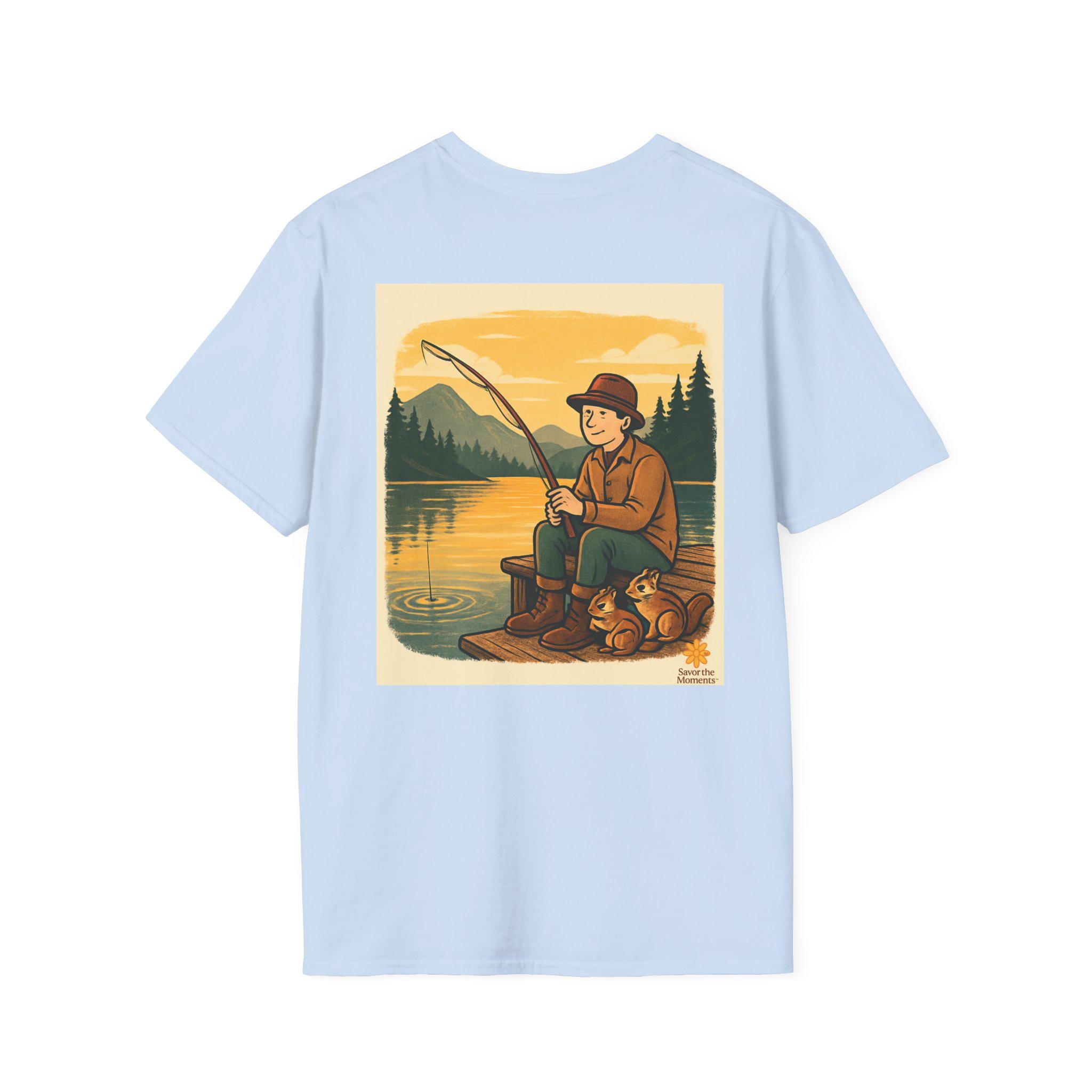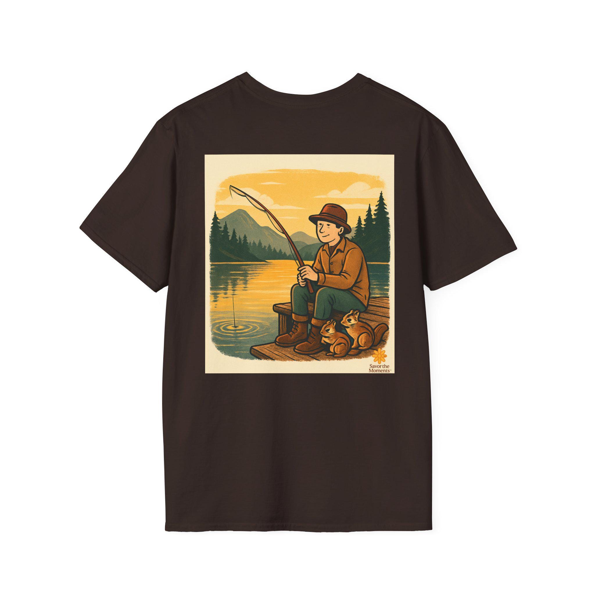 Sunset Pier Fishing T‑Shirt with Chipmunks • Relaxing Angler Tee • Calm Waters Nature Scene • Outdoors Adventure Top. Soft, timeless, and quietly nostalgic — this tee carries a lakeside pause you can wear. A warm sunrise palette and the silhouette of a lone angler are printed with care, inviting slow mornings in a boat, quiet lines in the water, and conversations that wander. Lightweight and incredibly soft, the shirt slips on for weekend escapes, dockside coffee, or evenings around a lantern. It holds its shape, breathes easily, and lets the design remain the calm center of any layering setup. For someone who keeps a tackle box in the trunk and remembers that the best catches are the small, steady moments, this shirt feels like a familiar day out on the water.