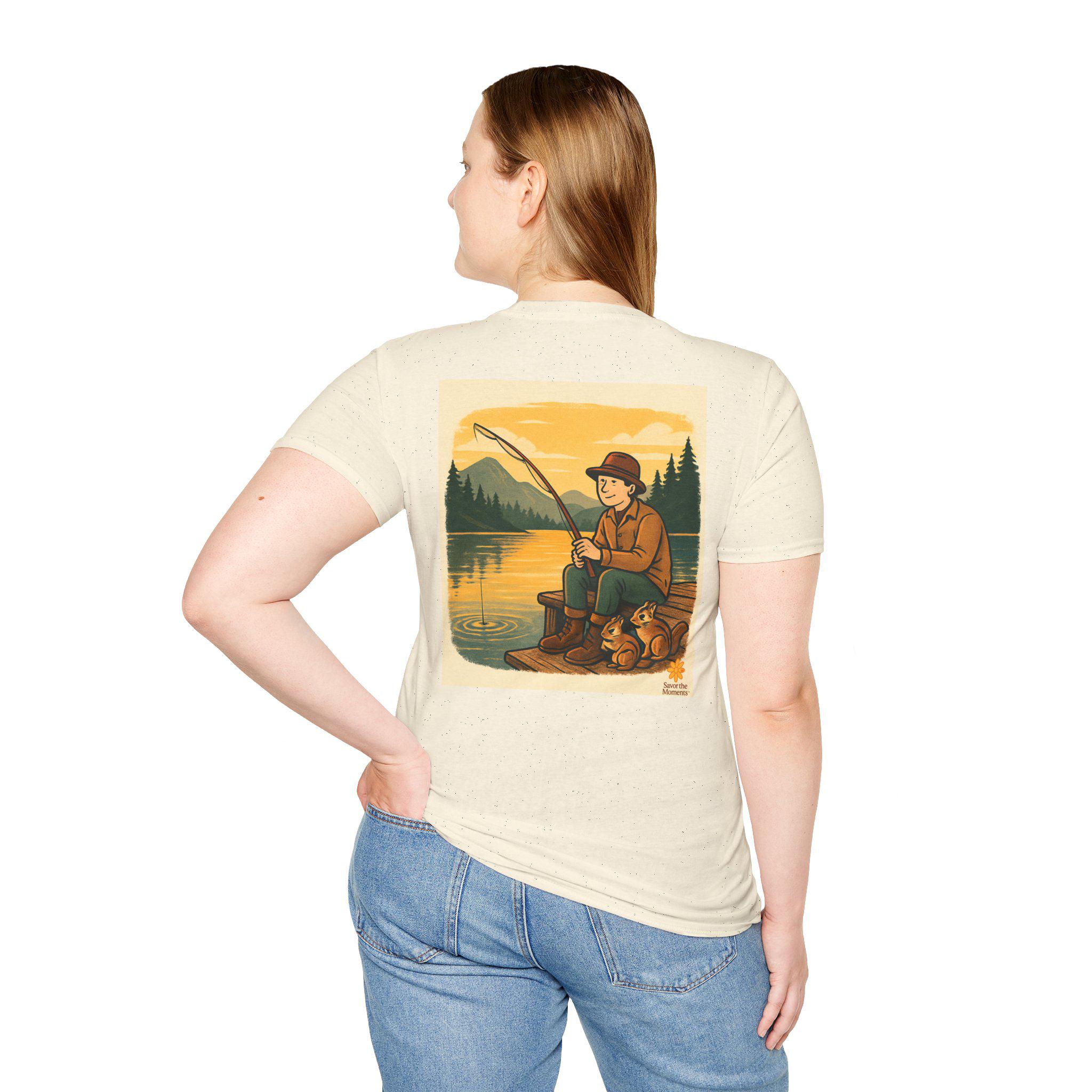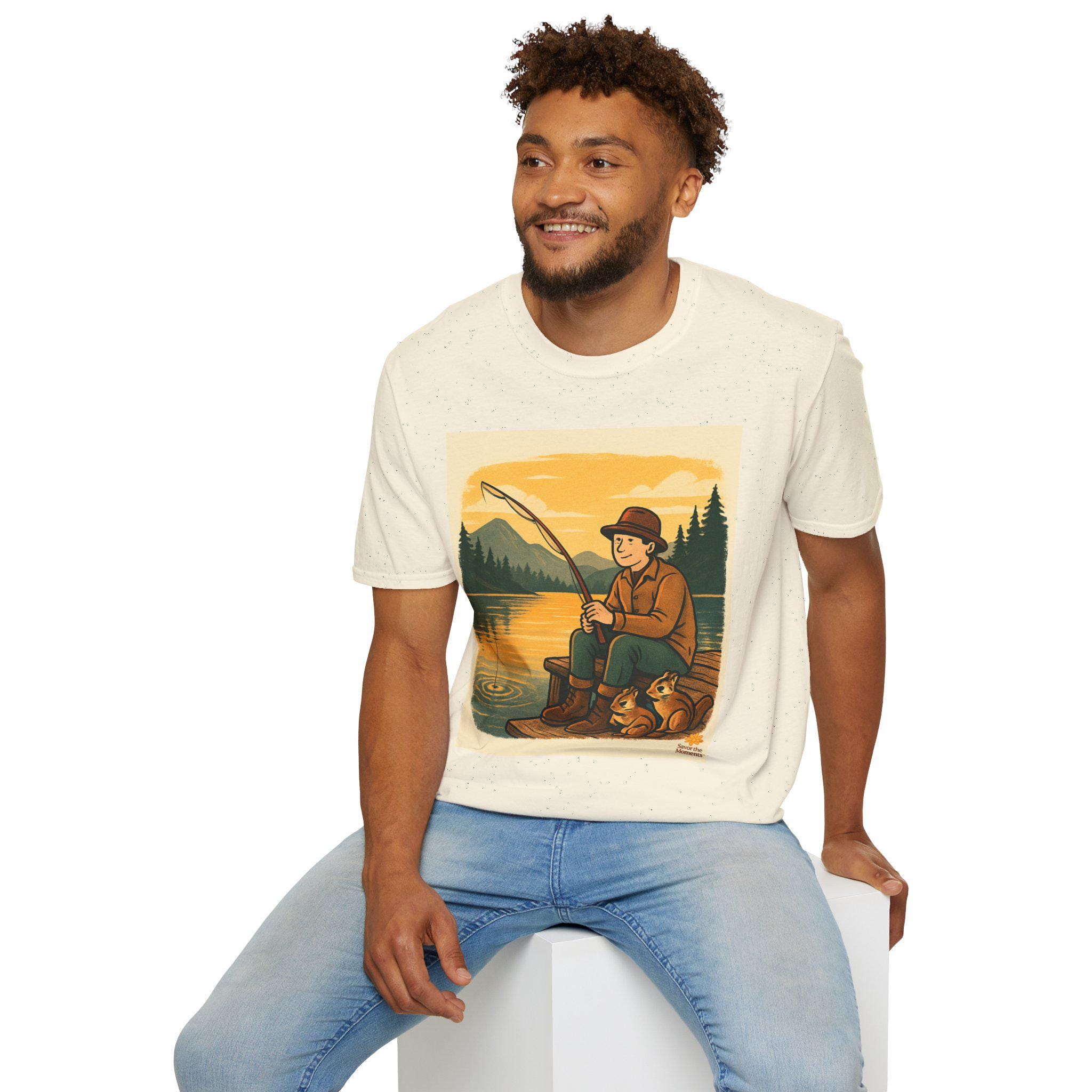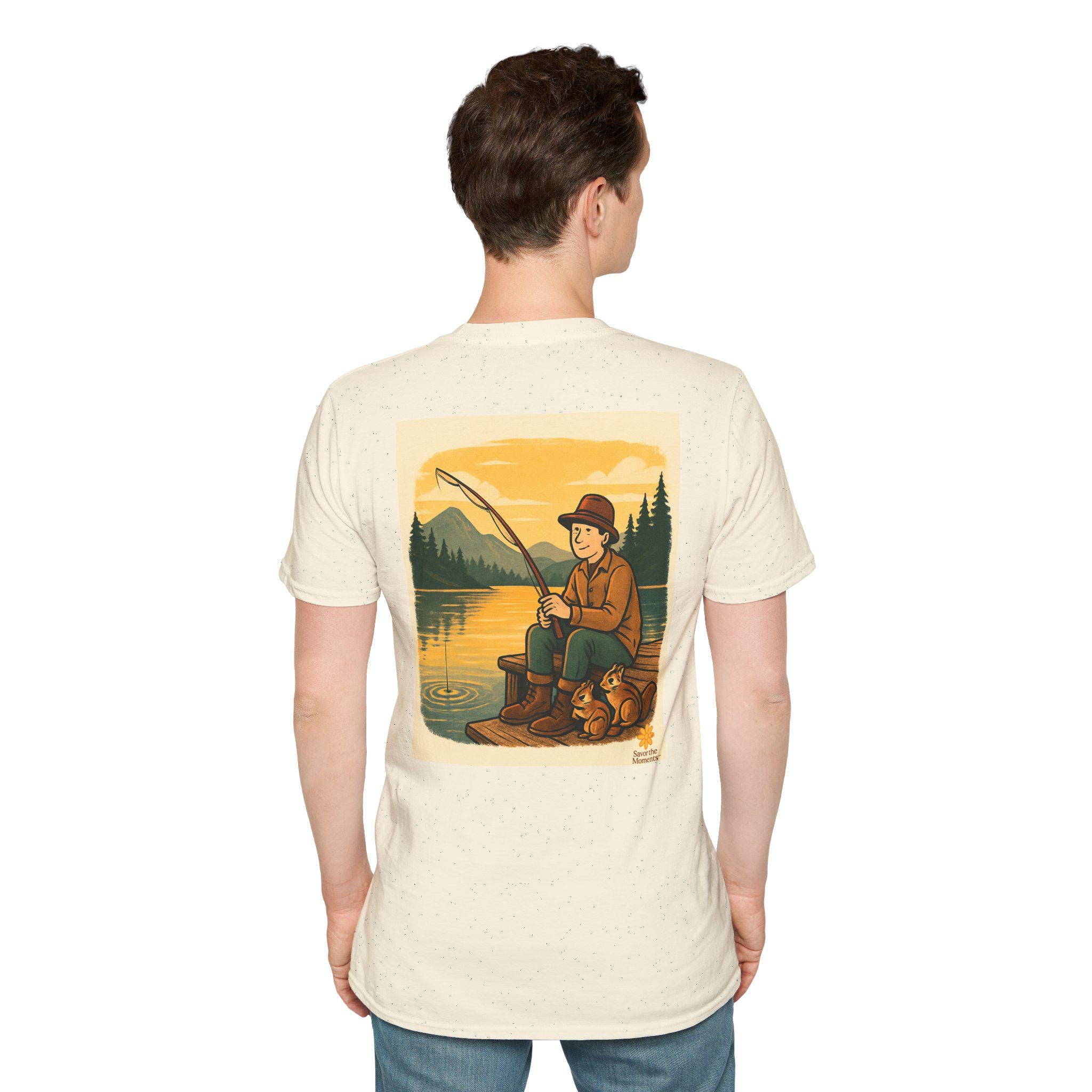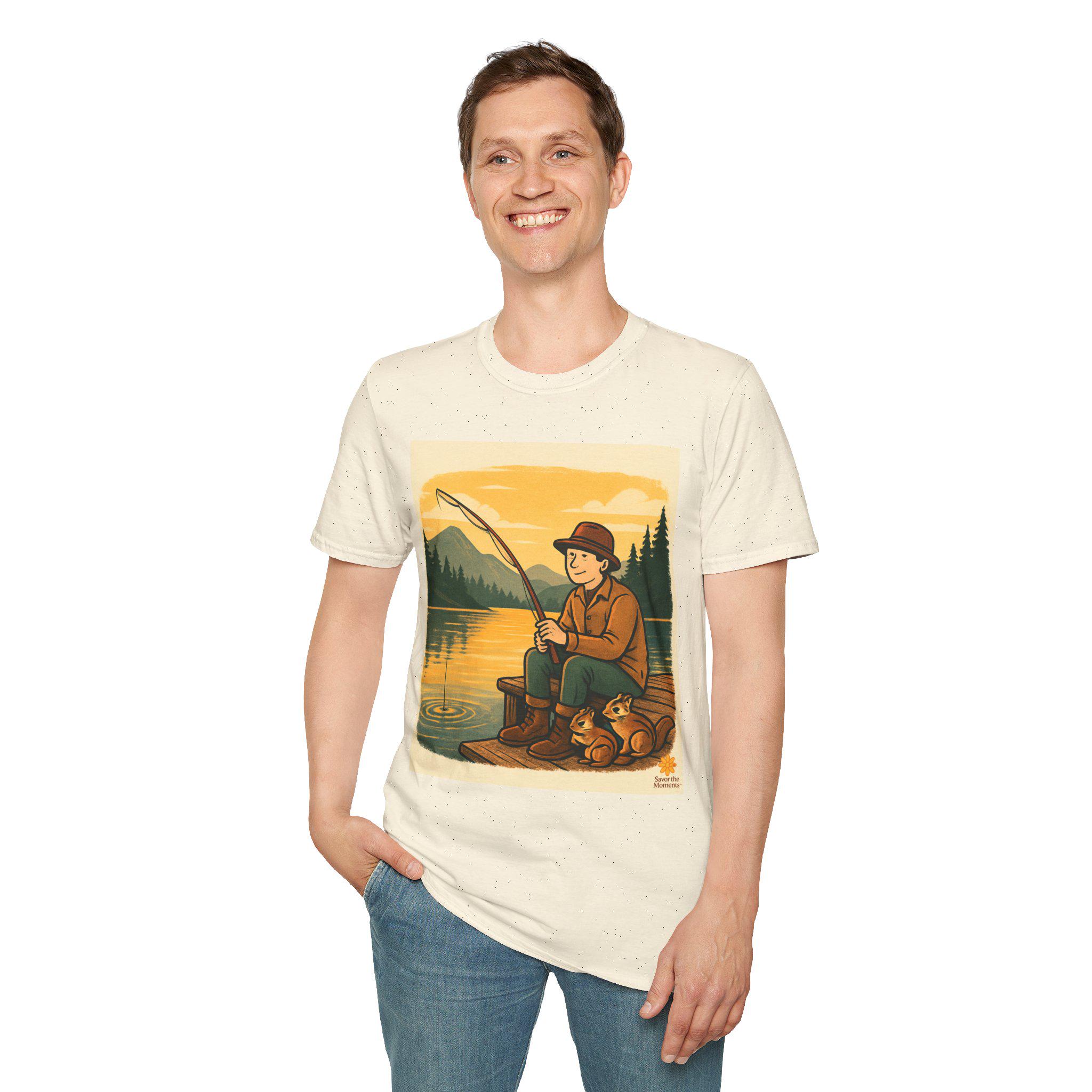 Sunset Pier Fishing T‑Shirt with Chipmunks • Relaxing Angler Tee • Calm Waters Nature Scene • Outdoors Adventure Top. Soft, timeless, and quietly nostalgic — this tee carries a lakeside pause you can wear. A warm sunrise palette and the silhouette of a lone angler are printed with care, inviting slow mornings in a boat, quiet lines in the water, and conversations that wander. Lightweight and incredibly soft, the shirt slips on for weekend escapes, dockside coffee, or evenings around a lantern. It holds its shape, breathes easily, and lets the design remain the calm center of any layering setup. For someone who keeps a tackle box in the trunk and remembers that the best catches are the small, steady moments, this shirt feels like a familiar day out on the water.