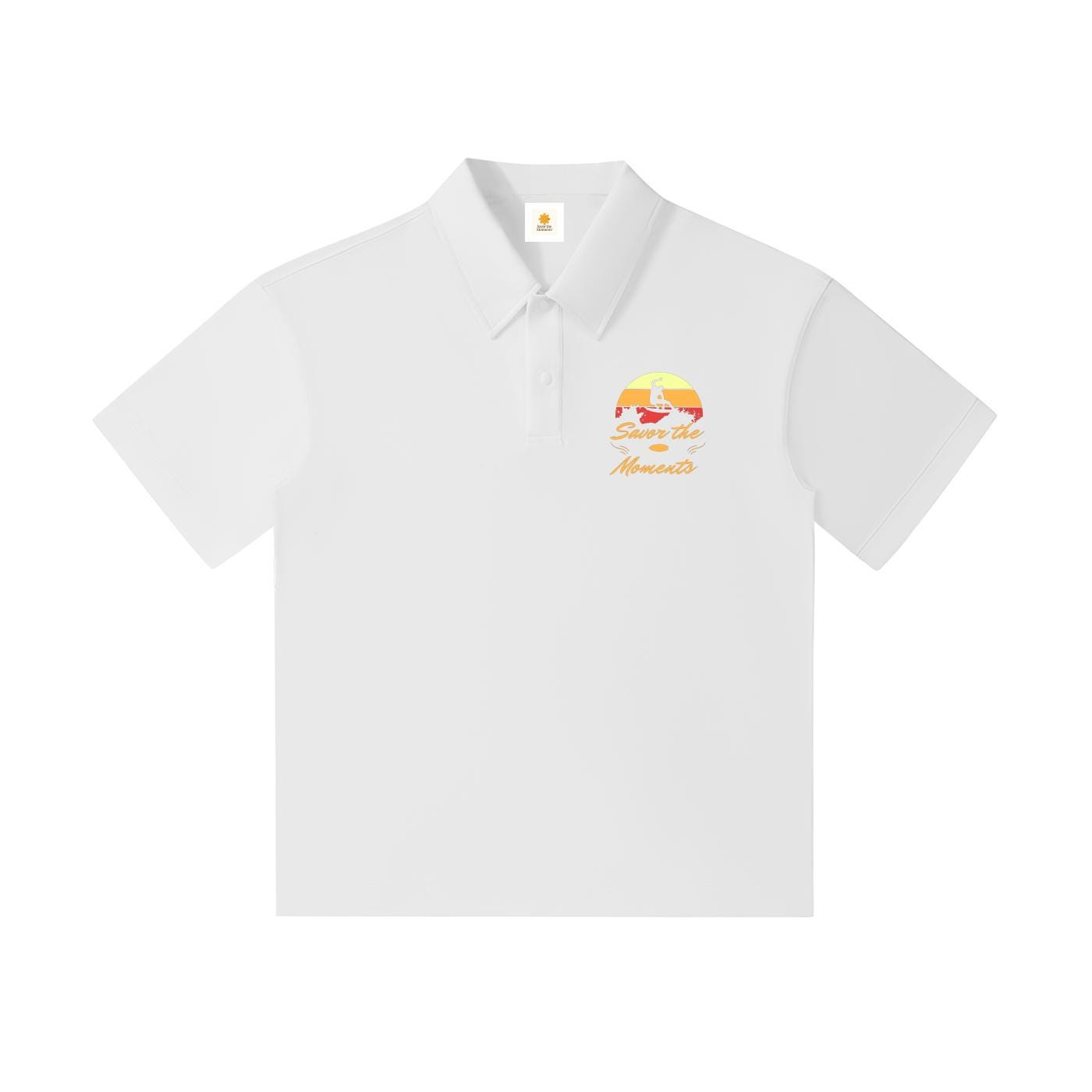 Surfer Drop‑Shoulder Polo • Surfing Sun Graphic Shirt • Beach Style Short‑Sleeve Polo • Coastal Casual Wear.