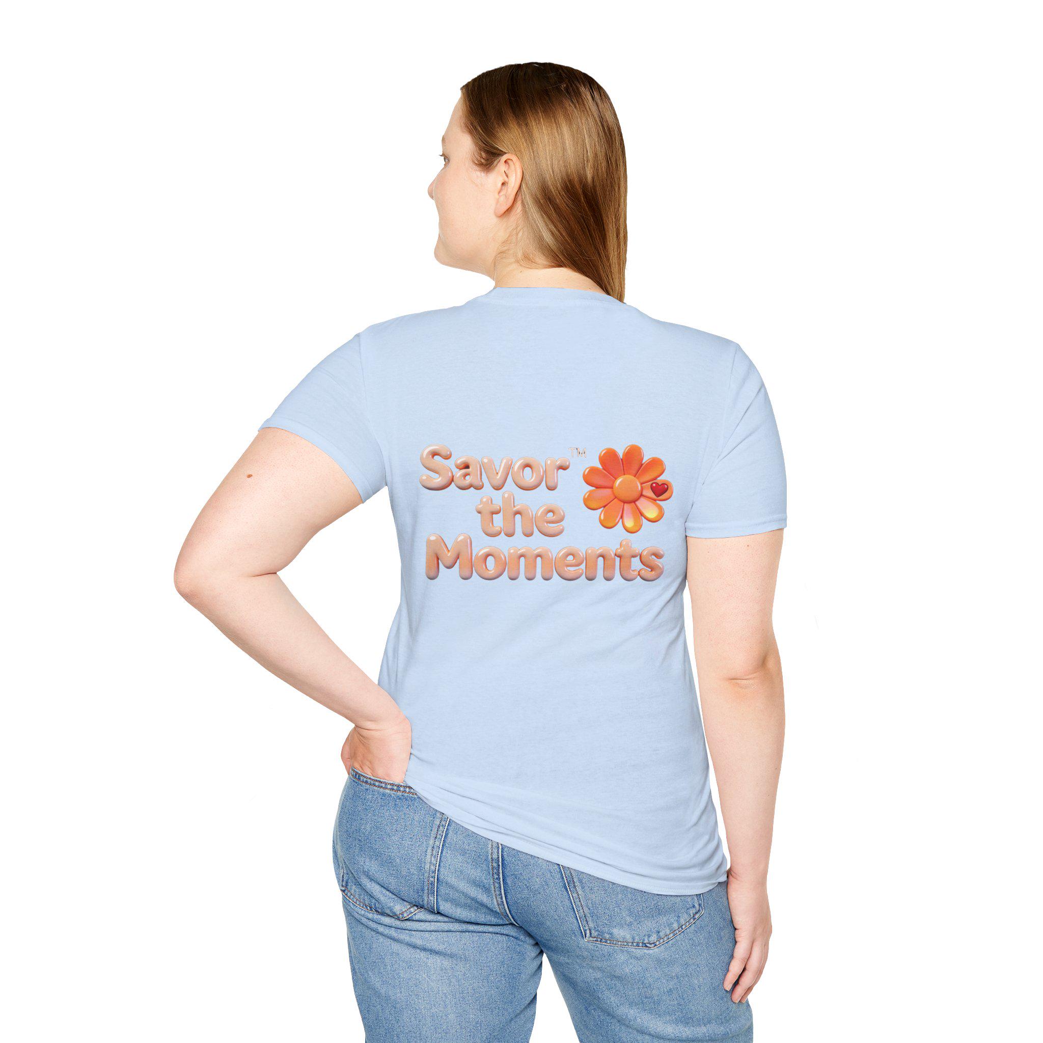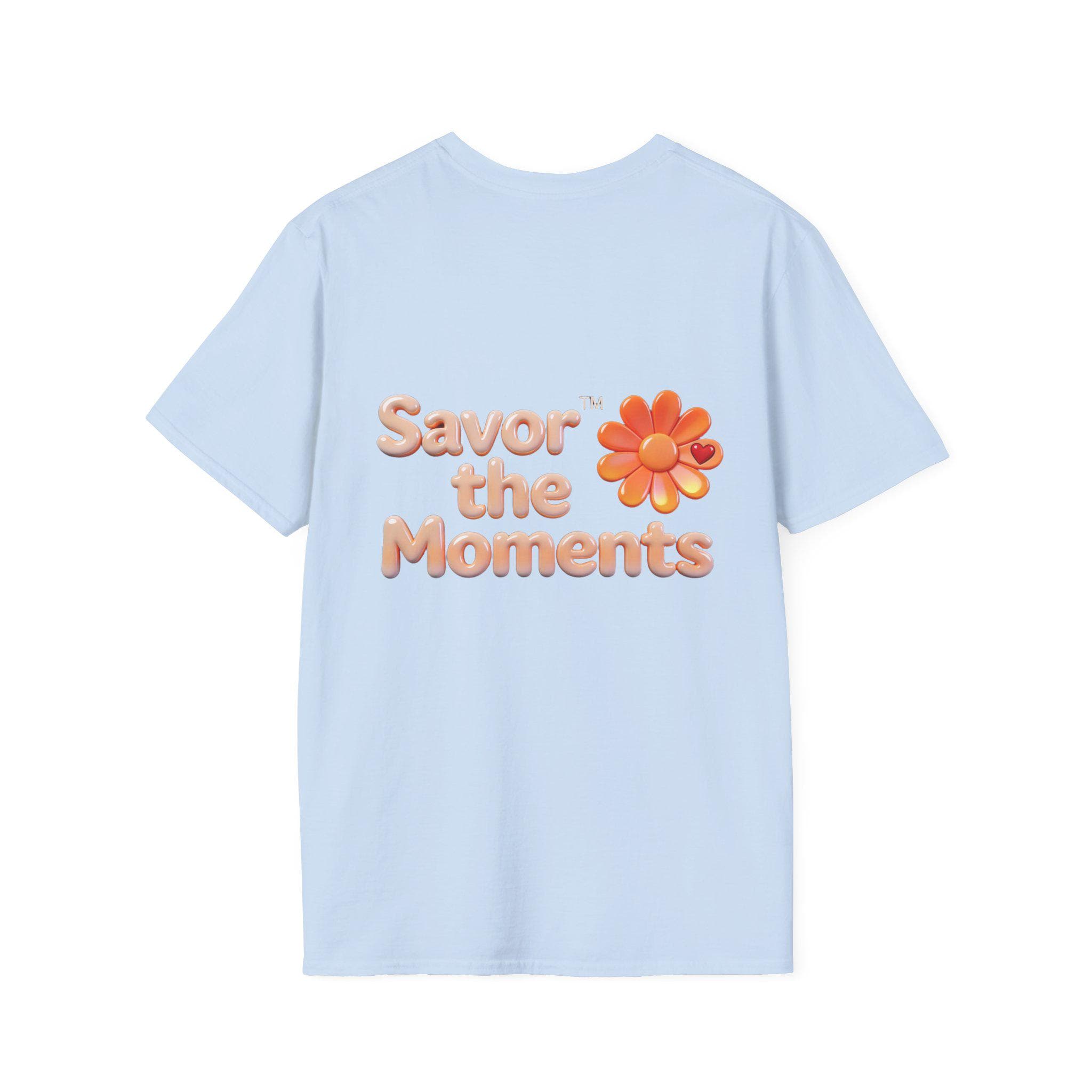 Retro Daisy Typography T‑Shirt • Savor the Moments™ 3‑D Lettering Tee • Positive Quote Graphic • Casual Unisex Apparel. This lightweight cotton tee carries a gentle reminder to slow down and appreciate small joys. Soft, pillowy lettering reads “Savor the Moments” beside a warm, retro-inspired daisy — a quiet, optimistic design that sits comfortably on the chest and back. Wear it on weekend walks, coffee runs, or lazy mornings at home; the breathable ring-spun cotton and classic crew neck keep it feeling effortless all day. The understated vintage color palette pairs easily with jeans, skirts, or layered under a cardigan for a calm, nostalgic look.