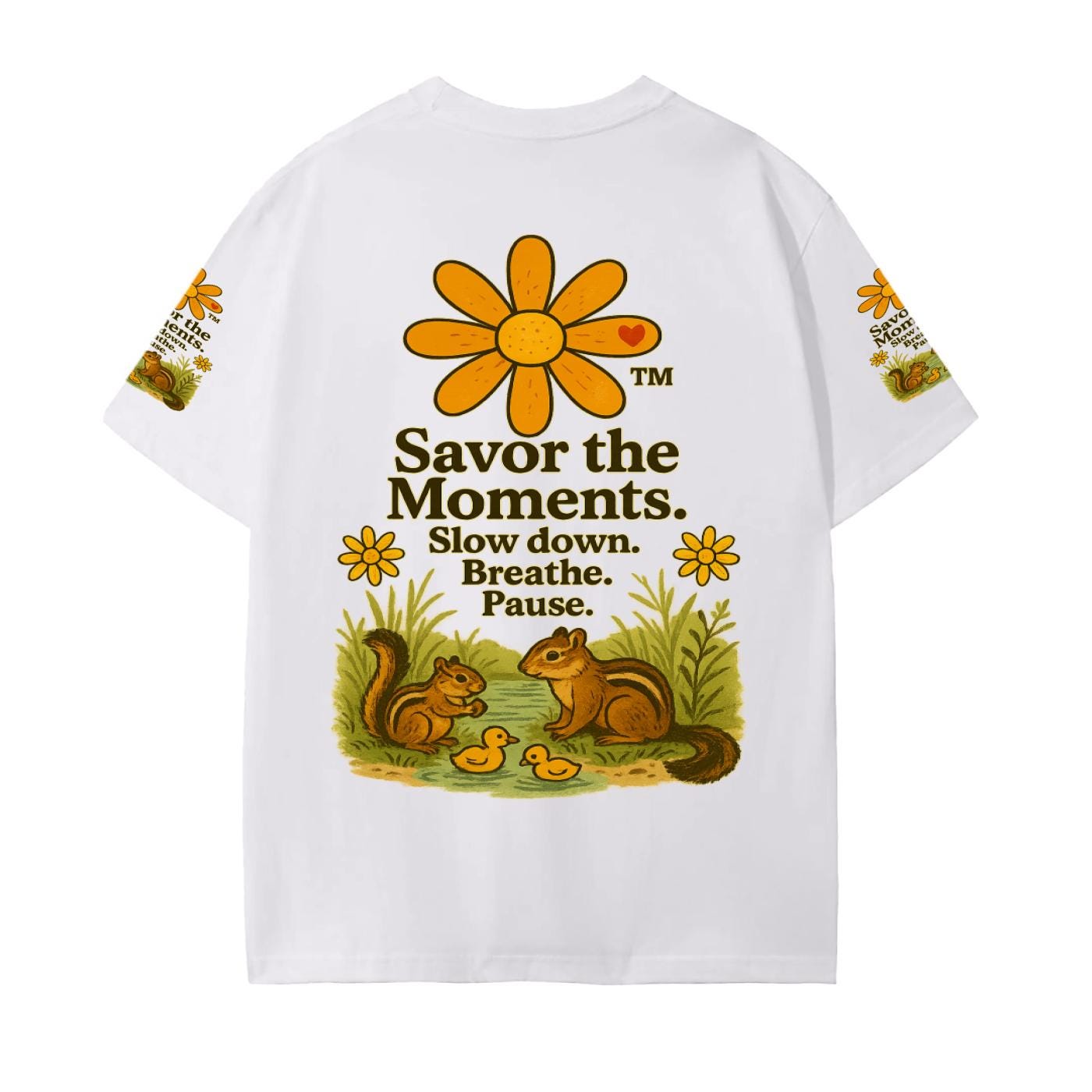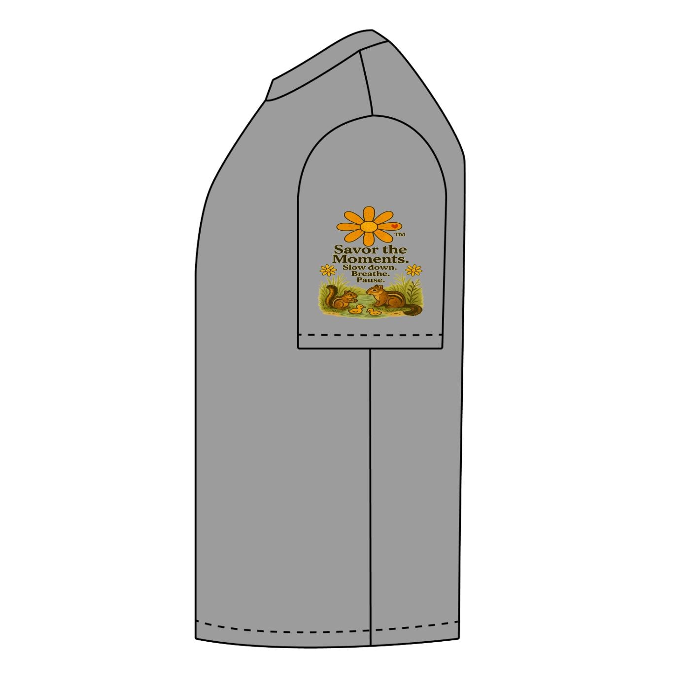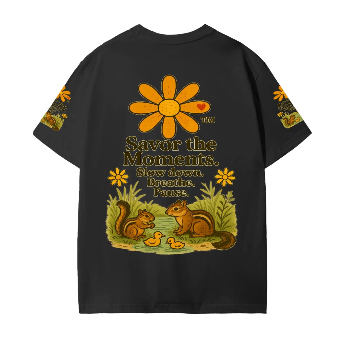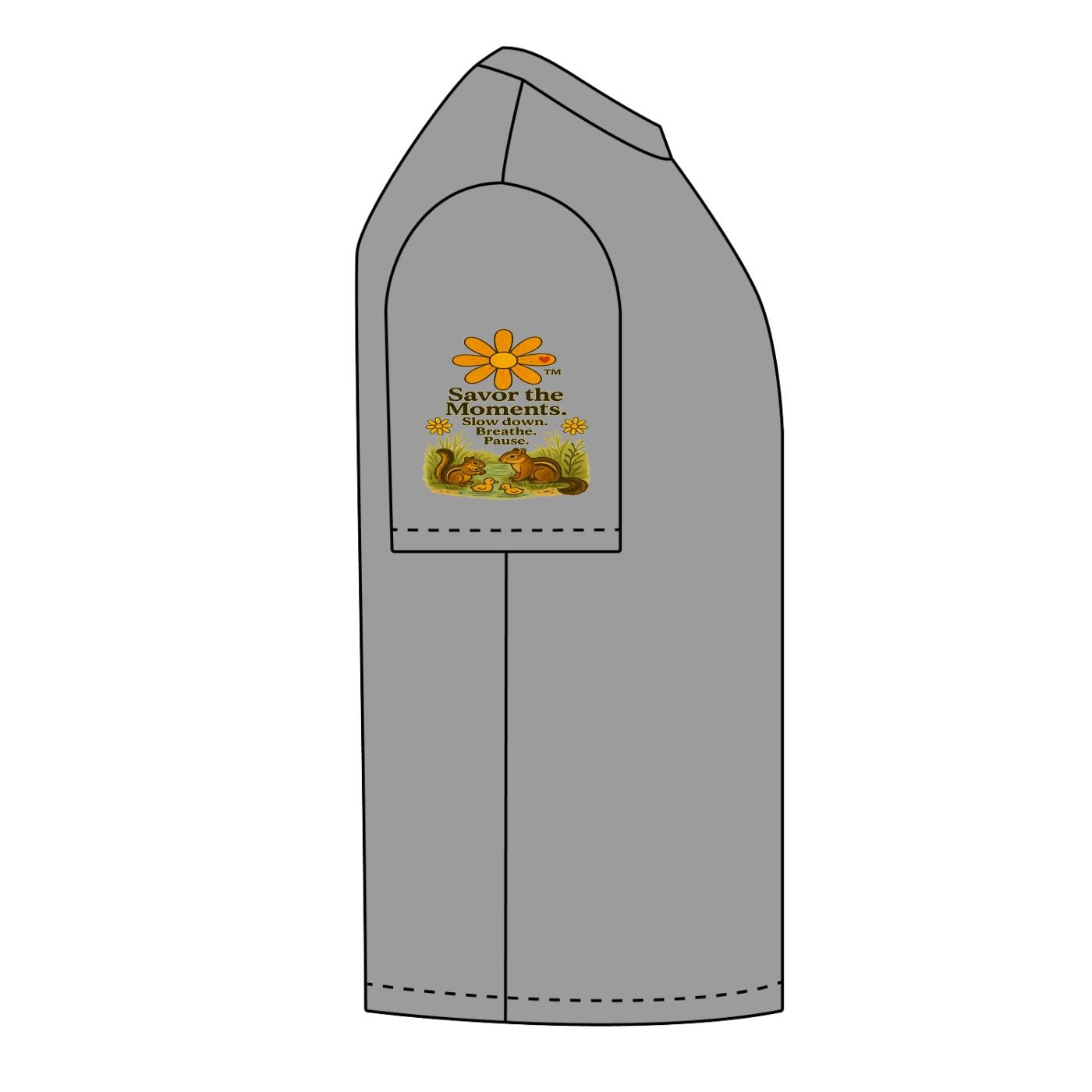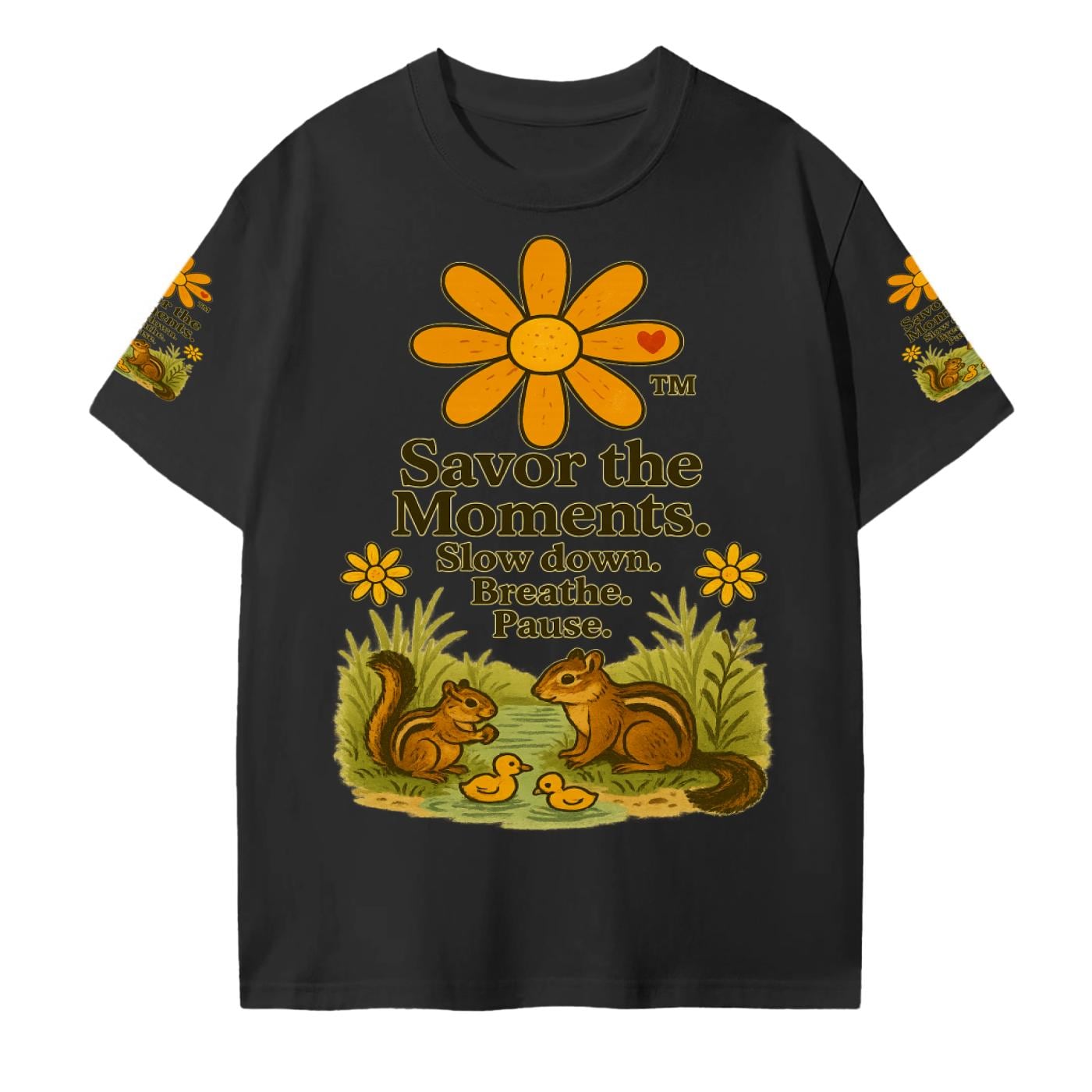 Orange Daisy Women’s Wellness Tee • Slow Down Breathe Pause Quote Shirt • Chipmunks & Ducklings Nature Graphic • Mindful Self‑Care Top. Please note: the sizing for this product is smaller than standard. Please review the Size Guide to ensure the correct size.