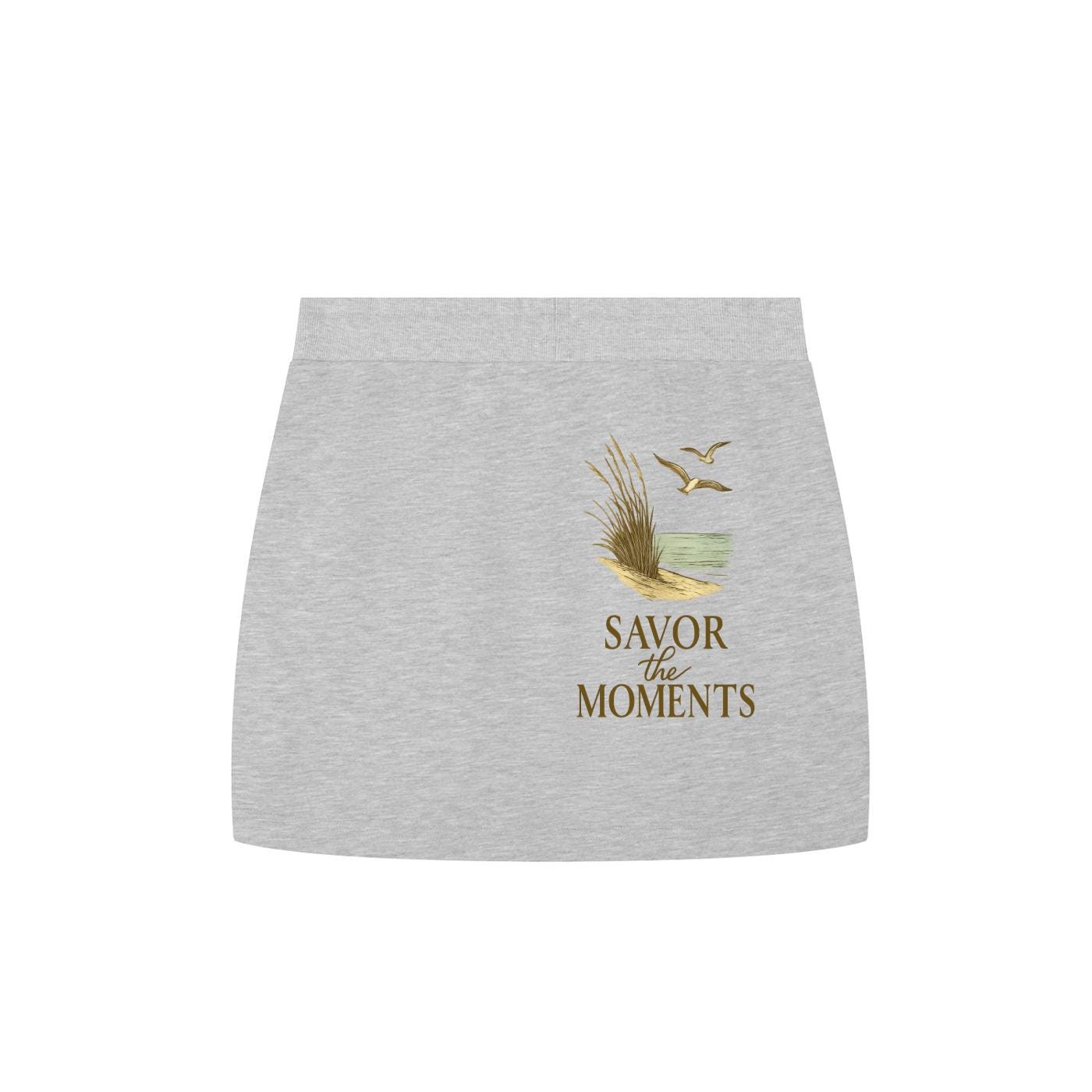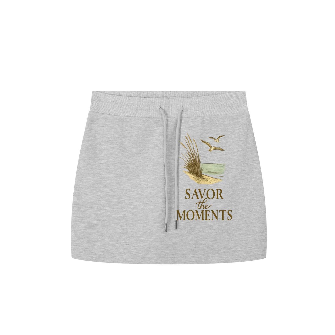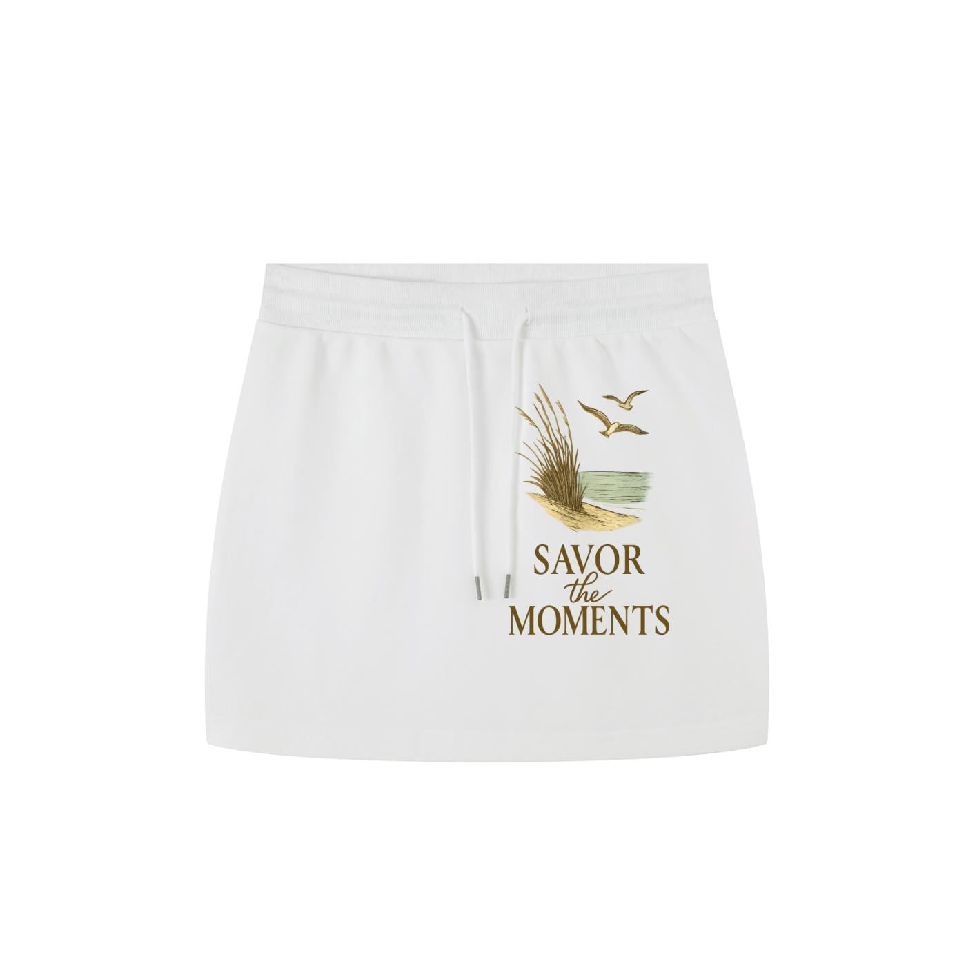 Essential Drawstring Skirt with a beach vibe, inspired by a peaceful coastal scene of ocean waves, seagulls, and warm sand, feel‑good vibe.