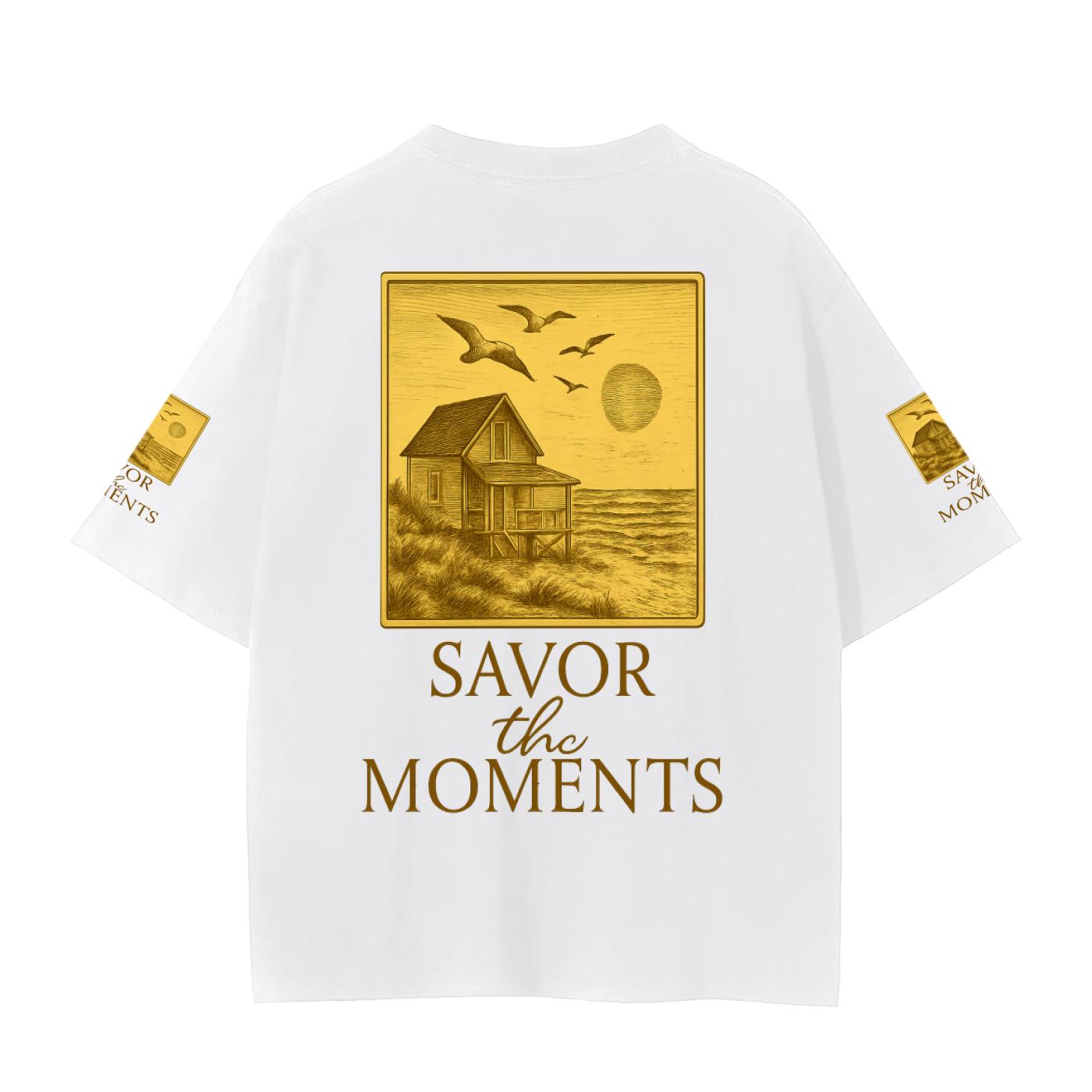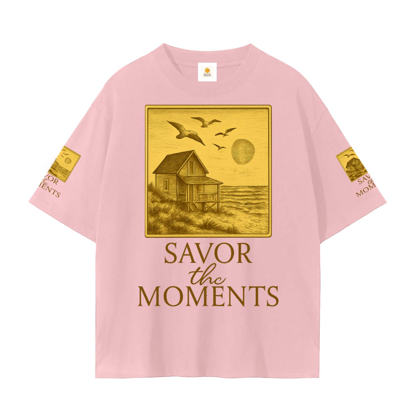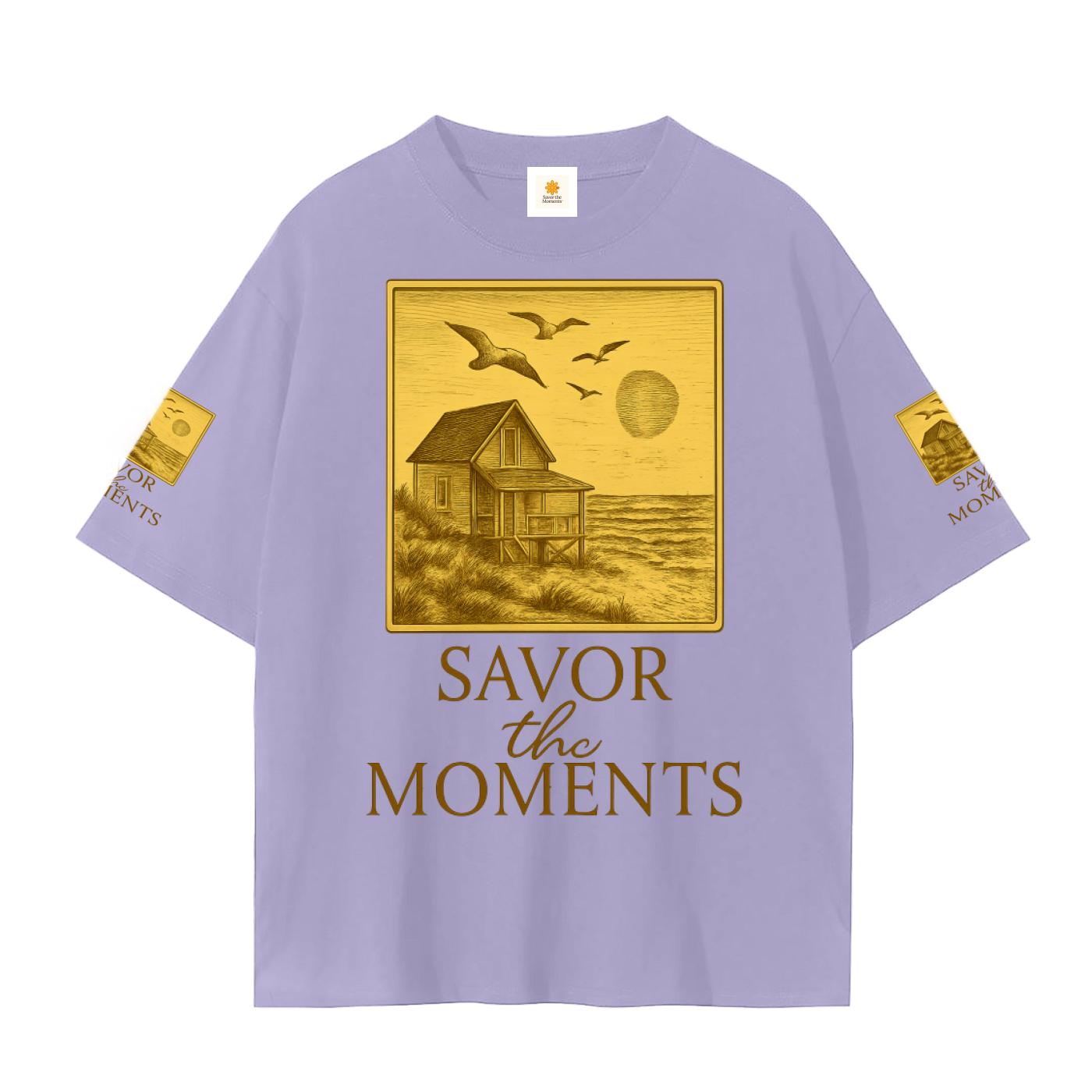 Beach house, sun, ocean, coastal vibe Graphic Tee • Unisex Cotton Wellness Shirt with Savor the Moments™ message, soft daisies, nature vibe.
