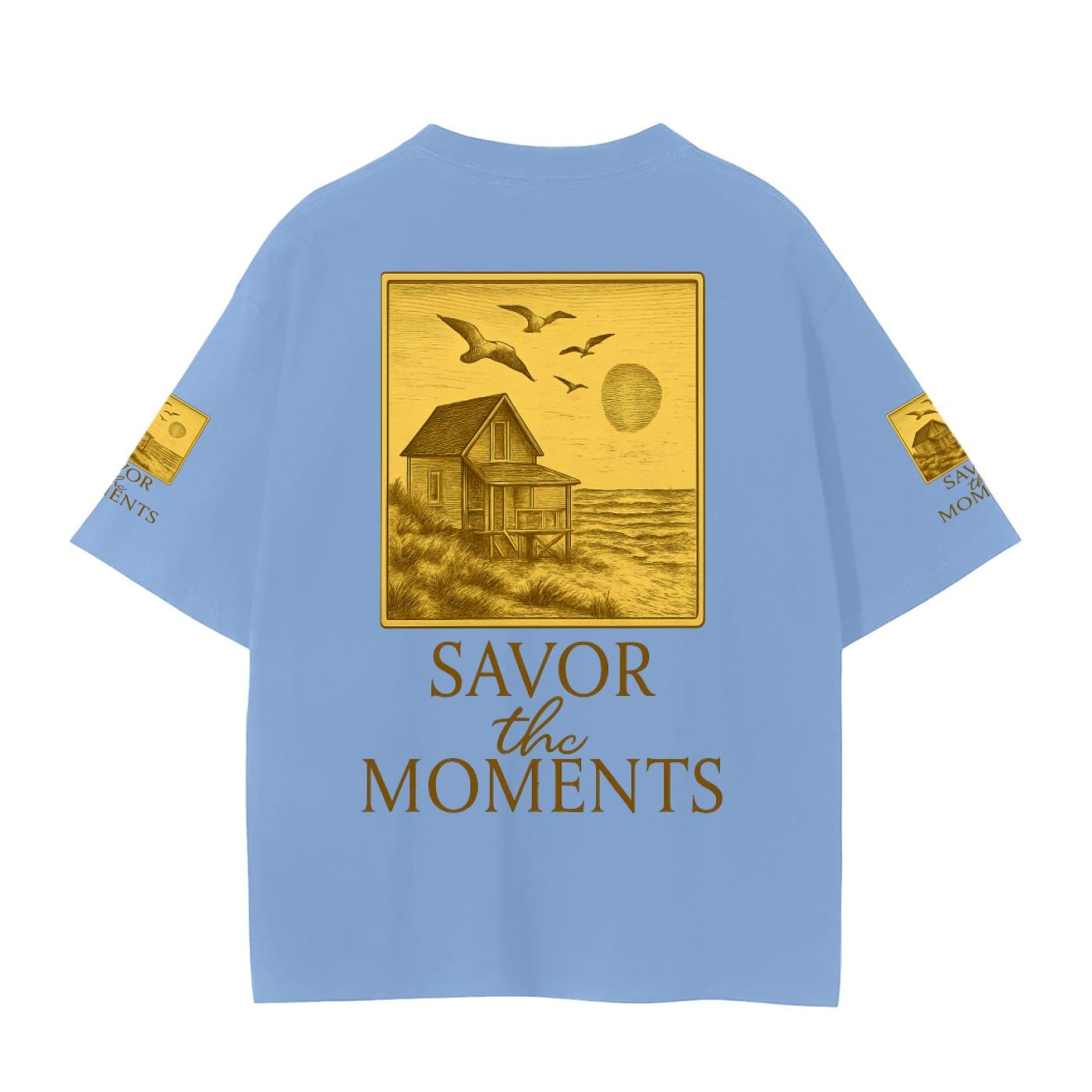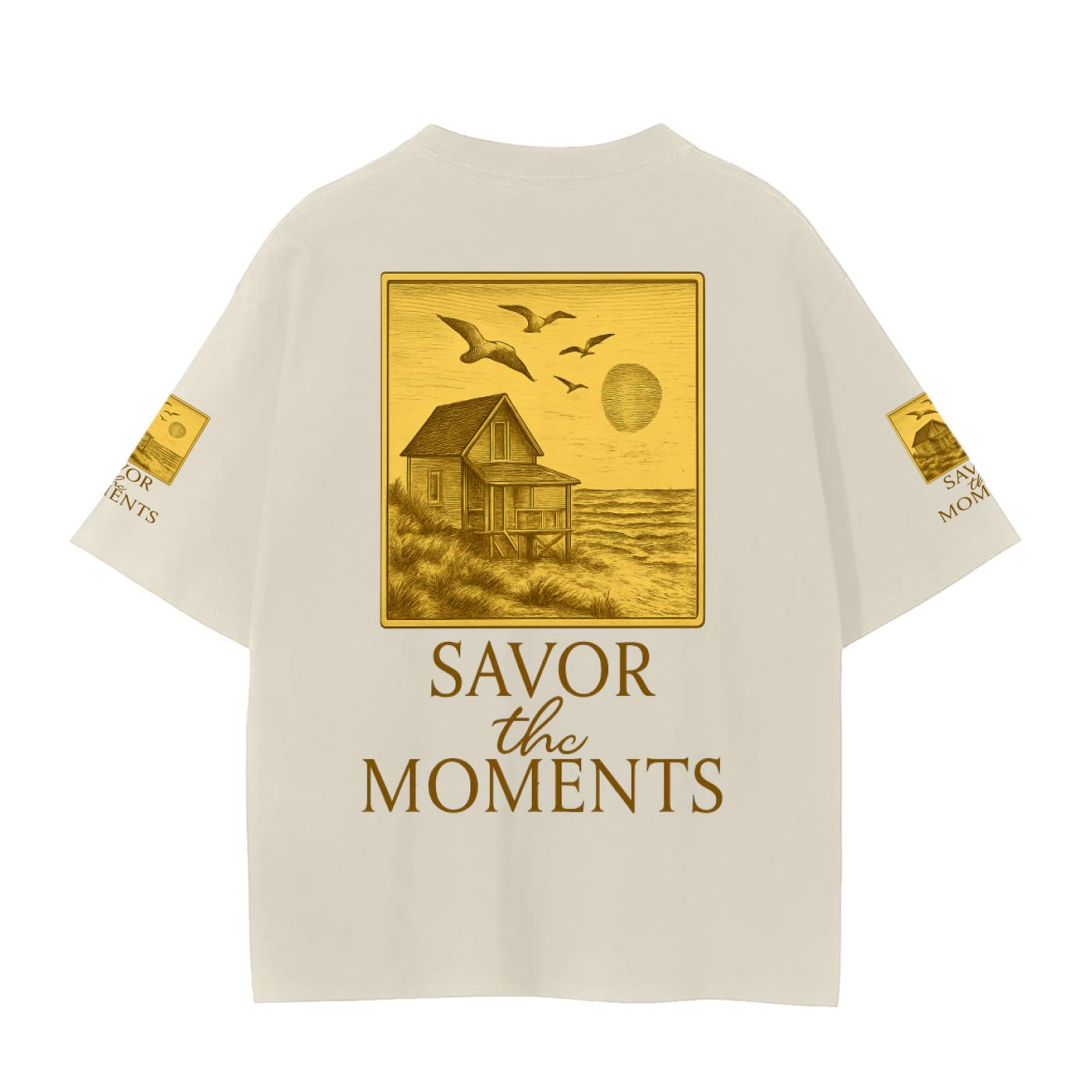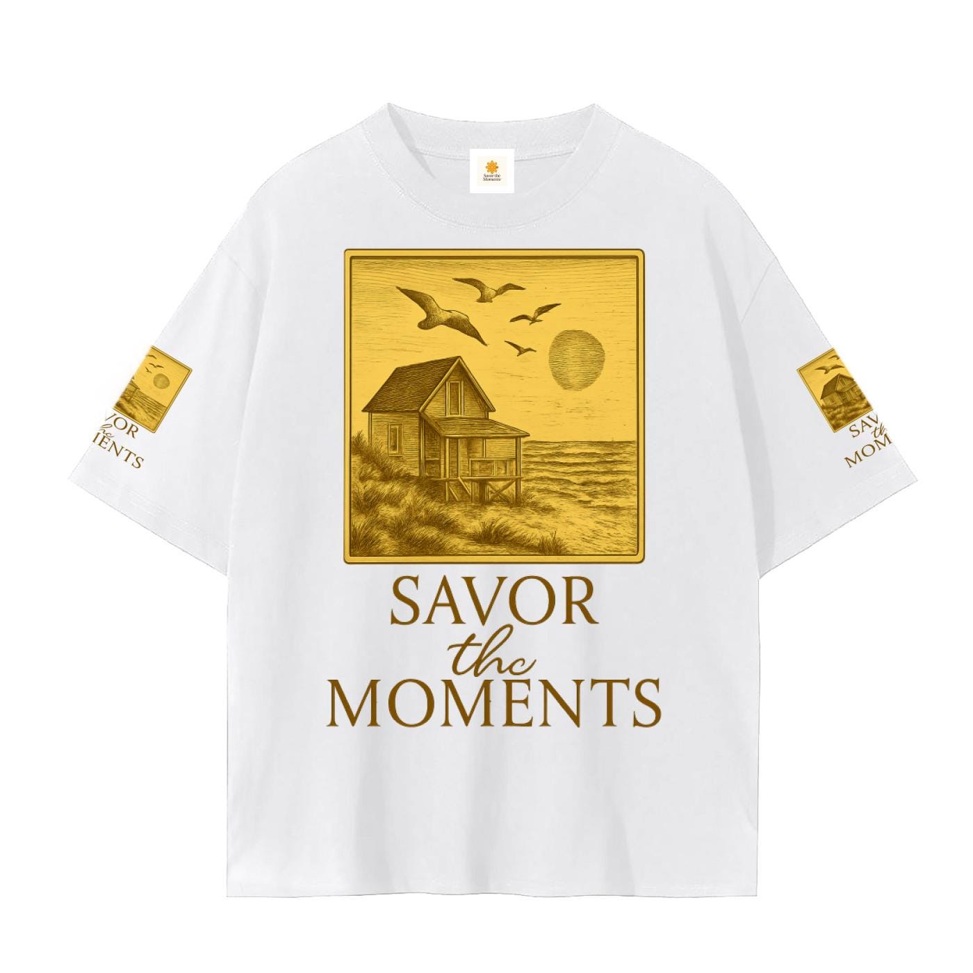 Beach house, sun, ocean, coastal vibe Graphic Tee • Unisex Cotton Wellness Shirt with Savor the Moments™ message, soft daisies, nature vibe.