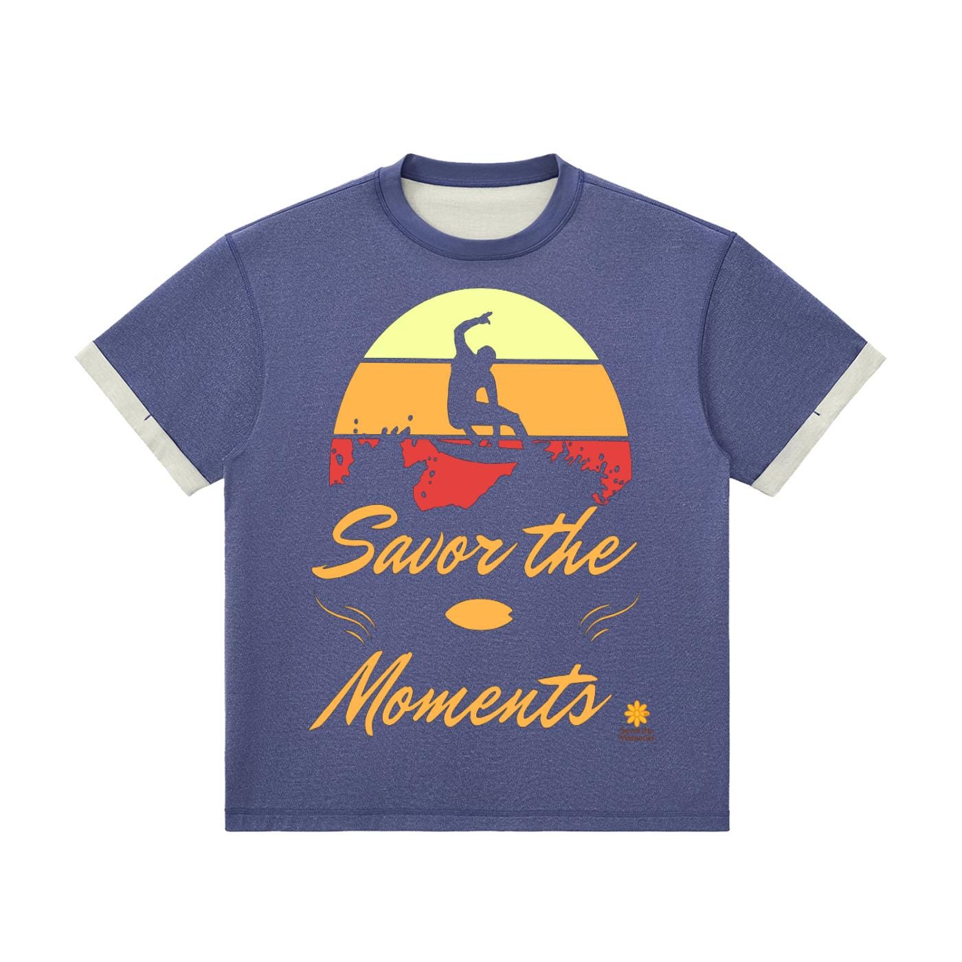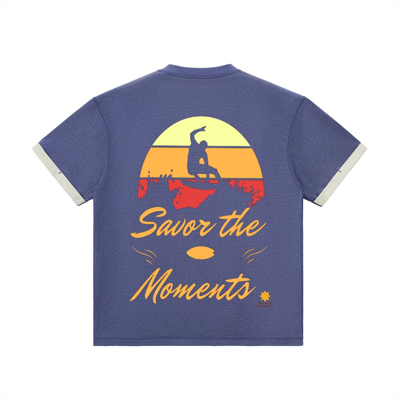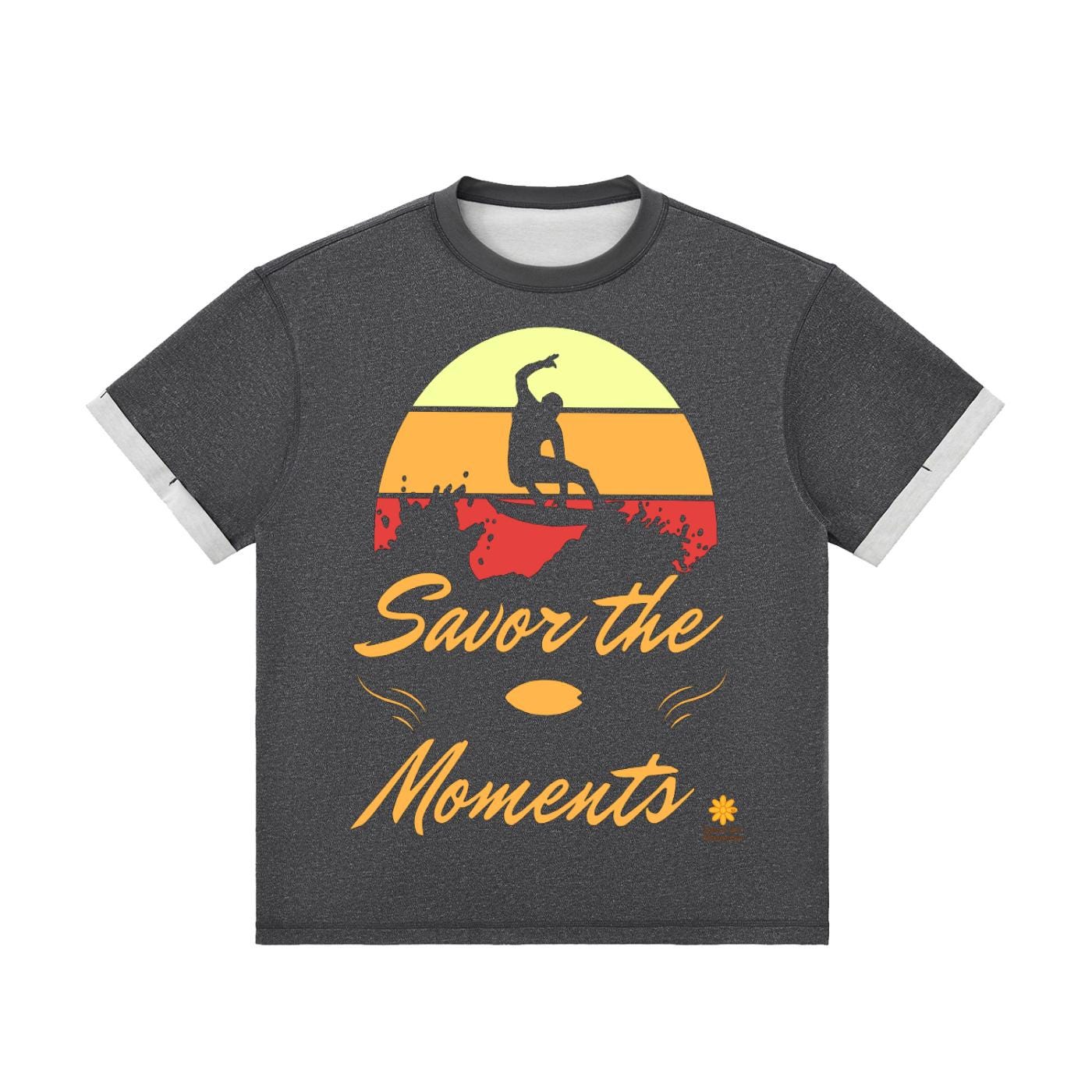 Surf vibe Contrast Cuff Cuffed T‑Shirt with surfboard graphic, ocean waves, and sun‑kissed style, coastal gift for beach lovers.