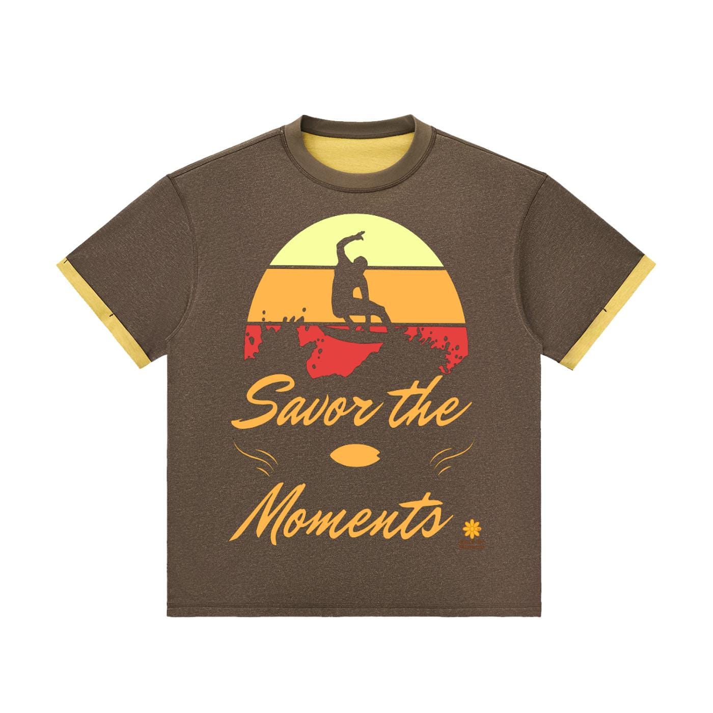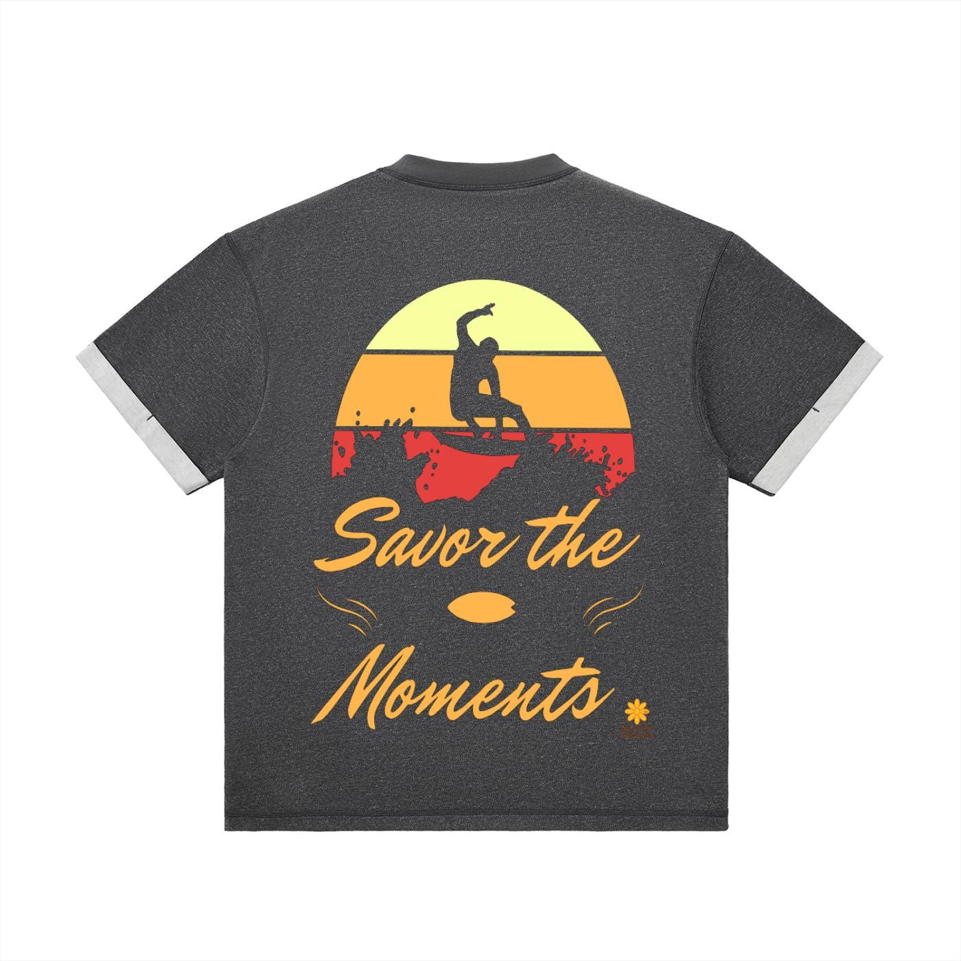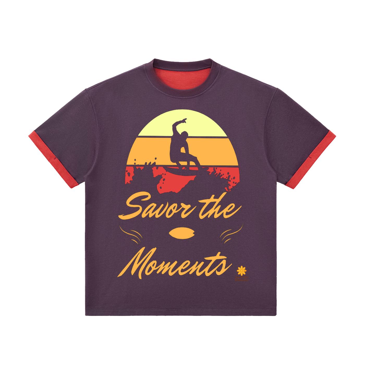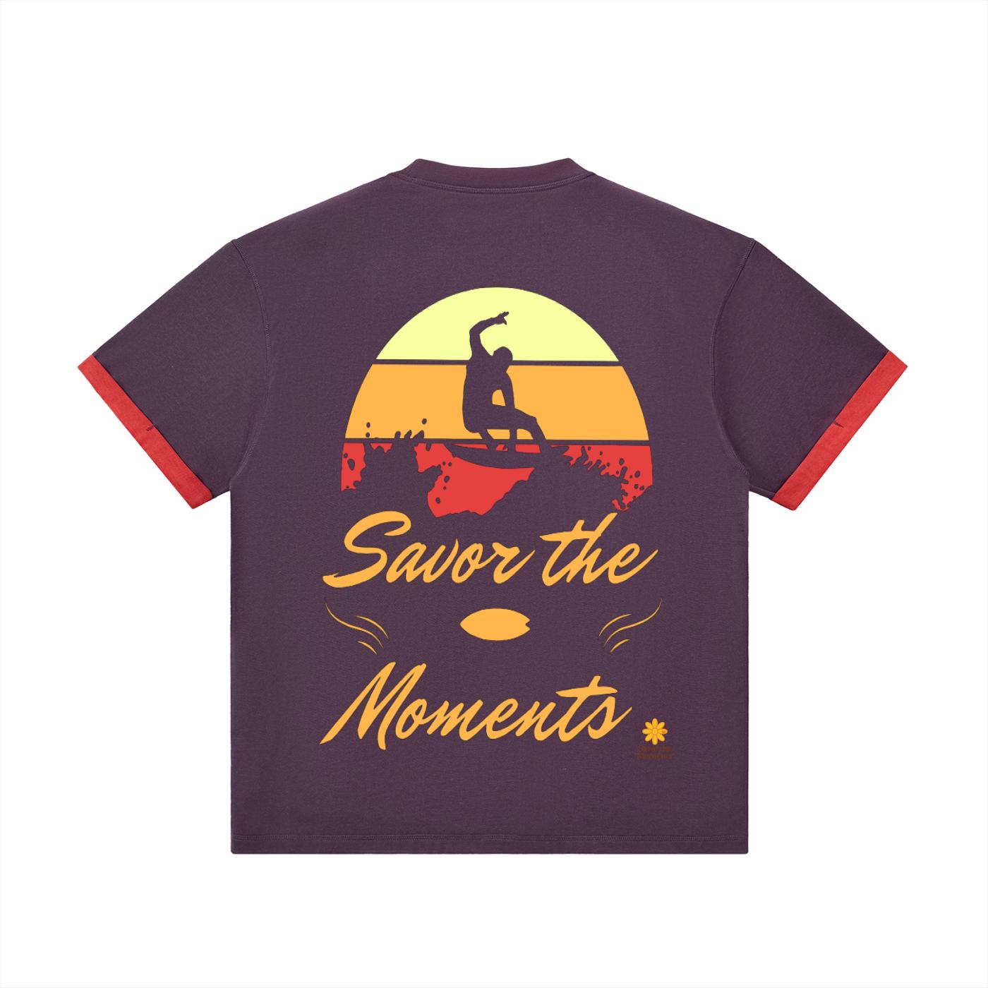 Surf vibe Contrast Cuff Cuffed T‑Shirt with surfboard graphic, ocean waves, and sun‑kissed style, coastal gift for beach lovers.