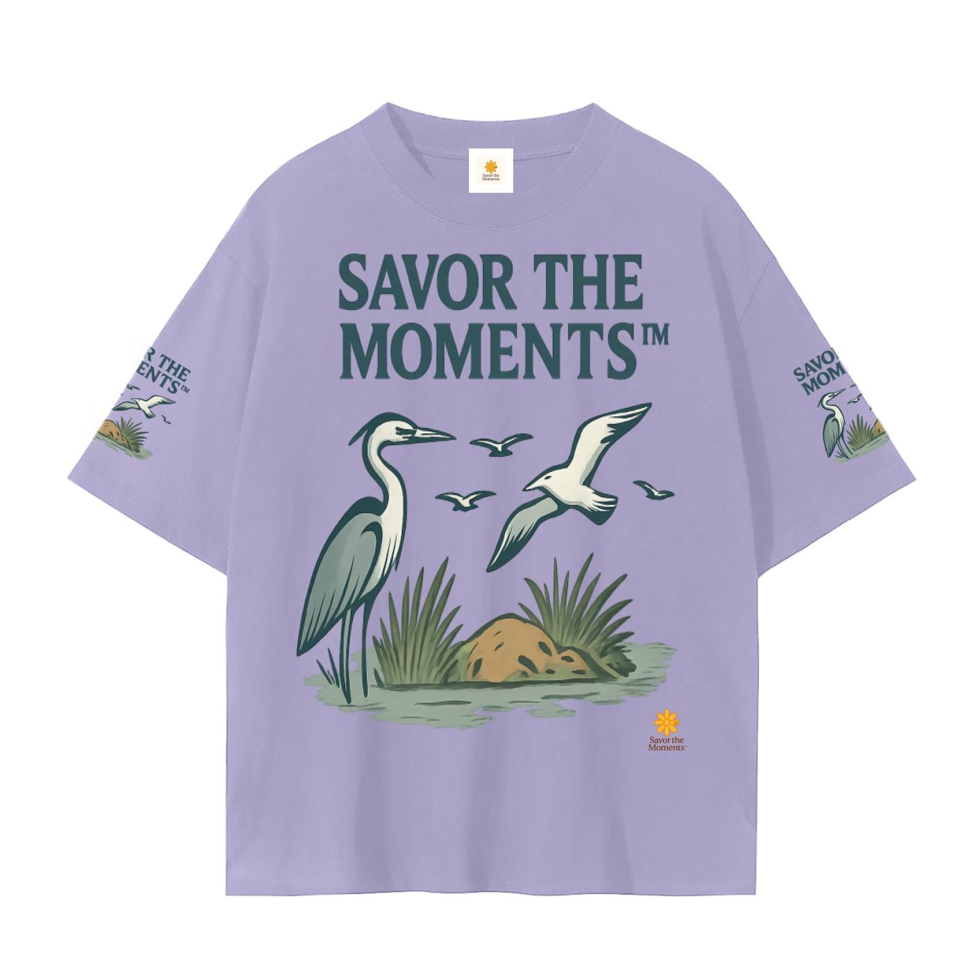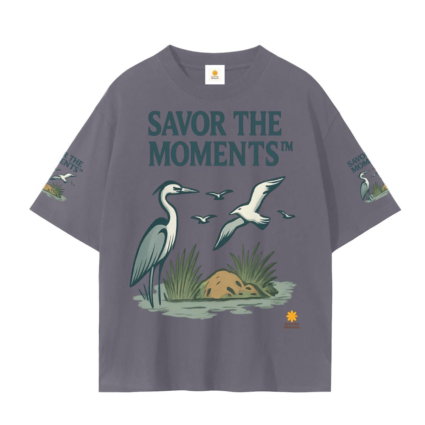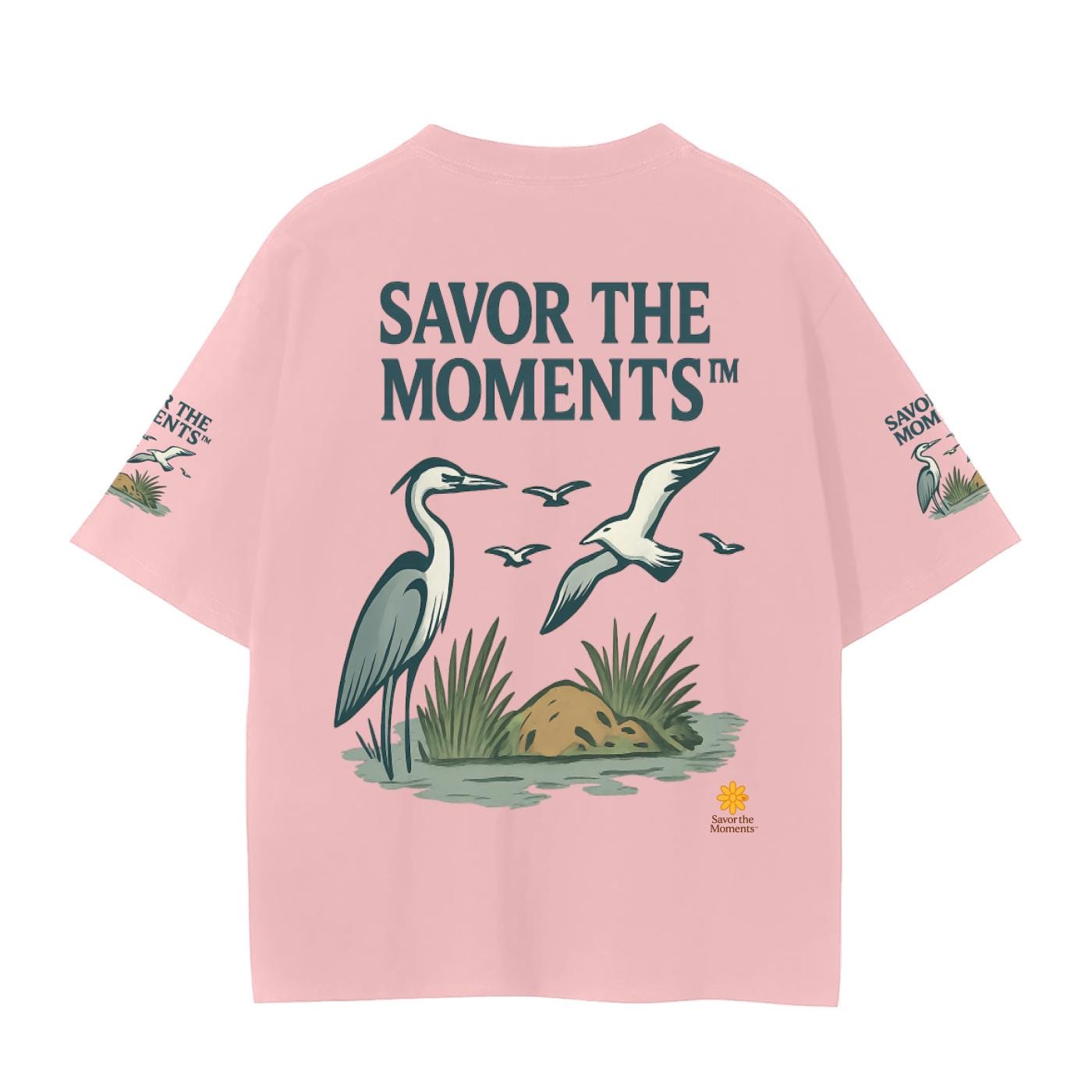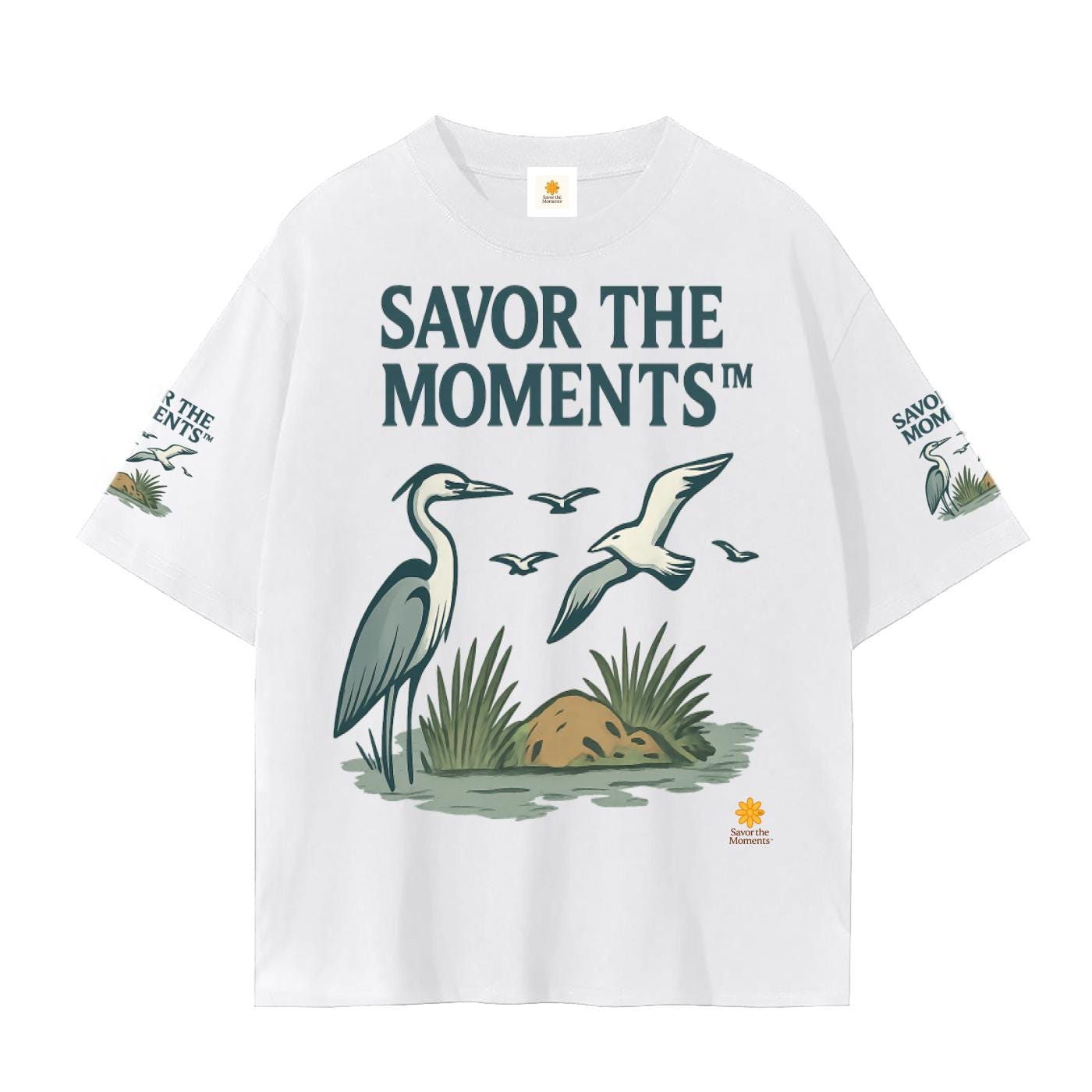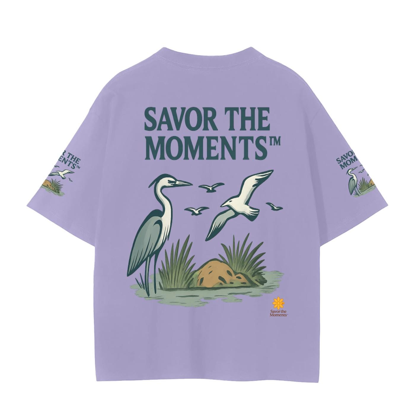 Coastal vibe Unisex Seamless T‑Shirt featuring heron Graphic, sea oats, and marsh birds, relaxed beach‑inspired summer gift for nature lovers.