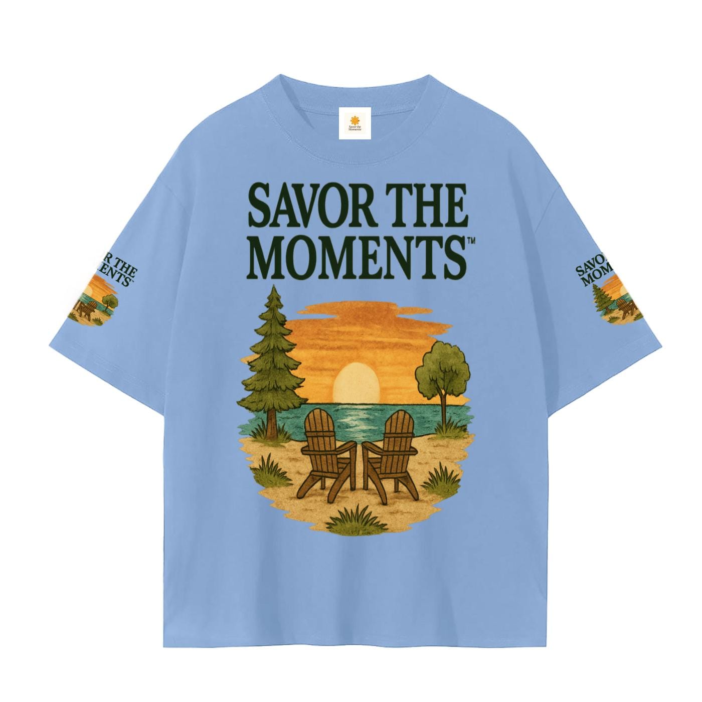Sunset Beach Adirondack Chairs Graphic T-Shirt, Coastal Vibe.