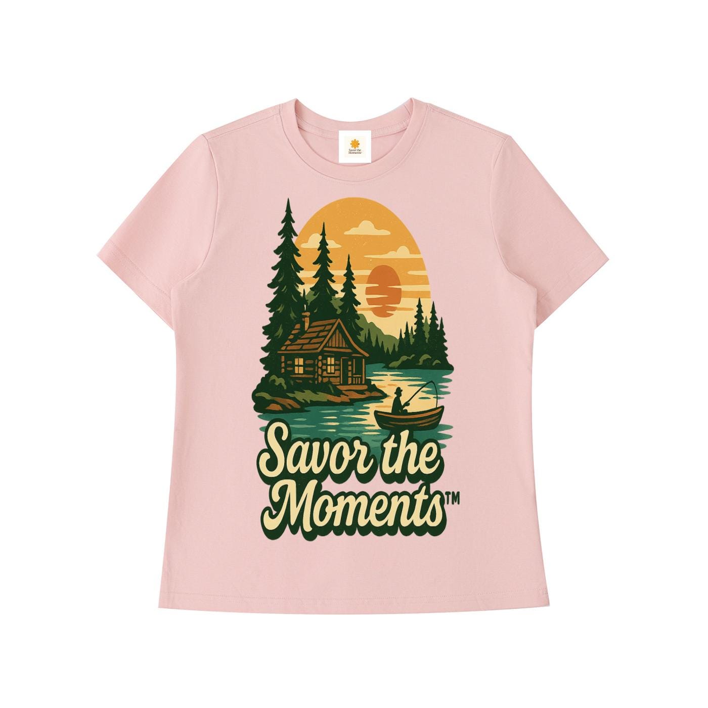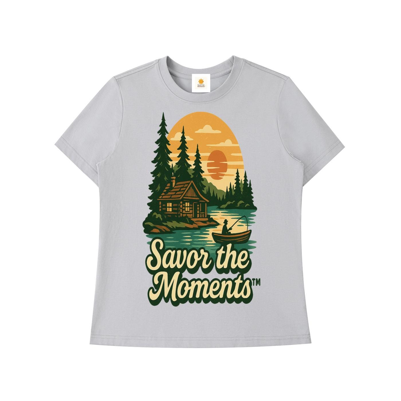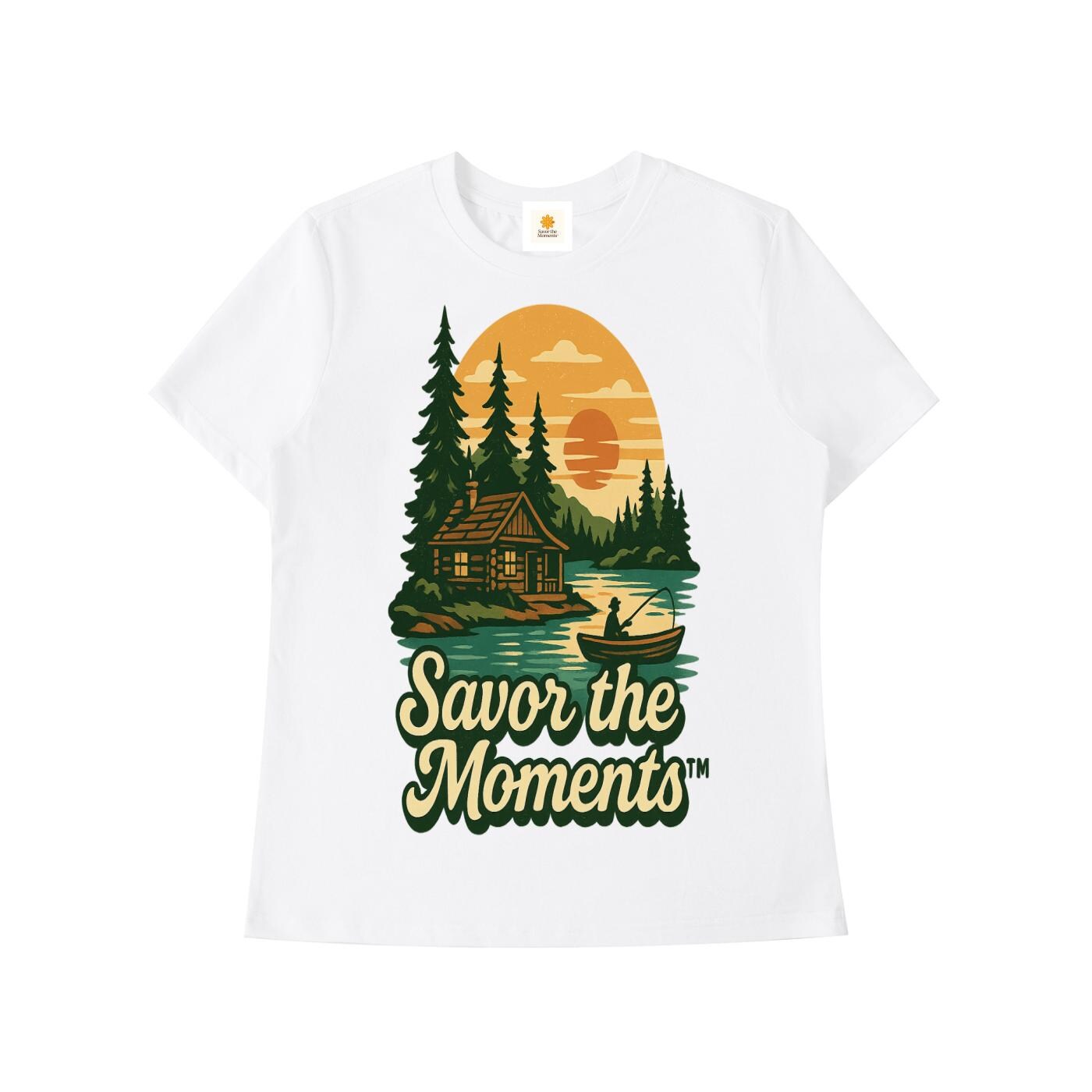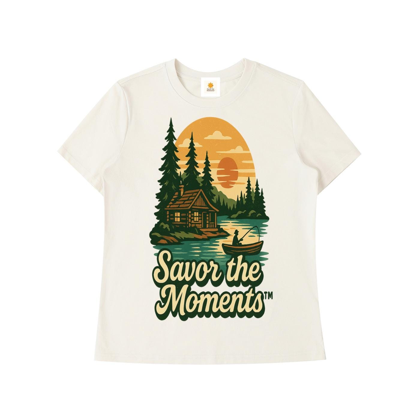 Cabin Lake Sunset Graphic T-Shirt, Rustic Outdoor Tee