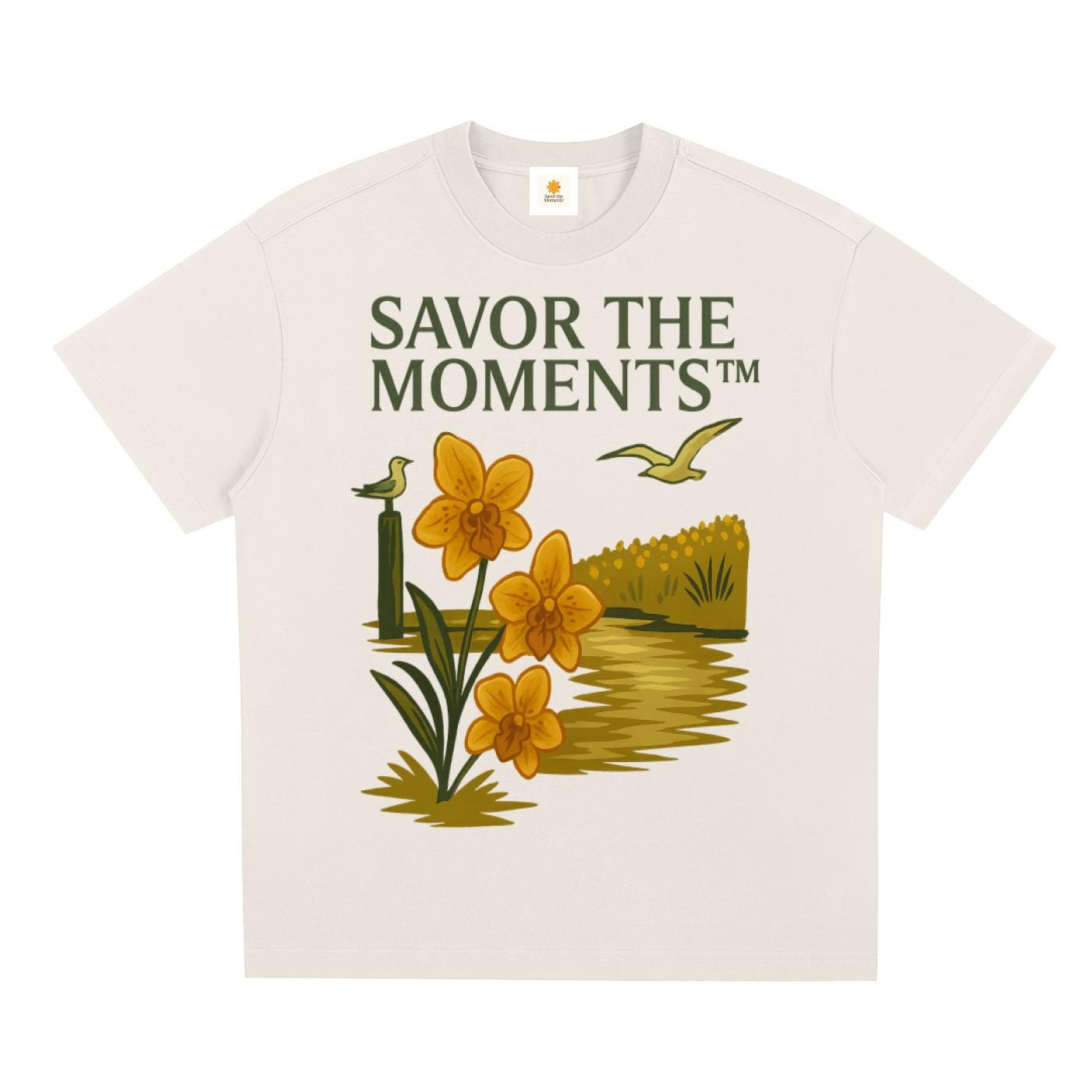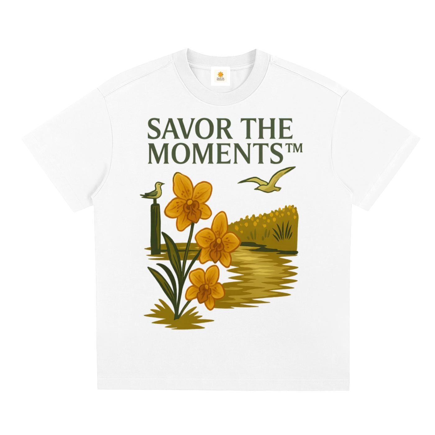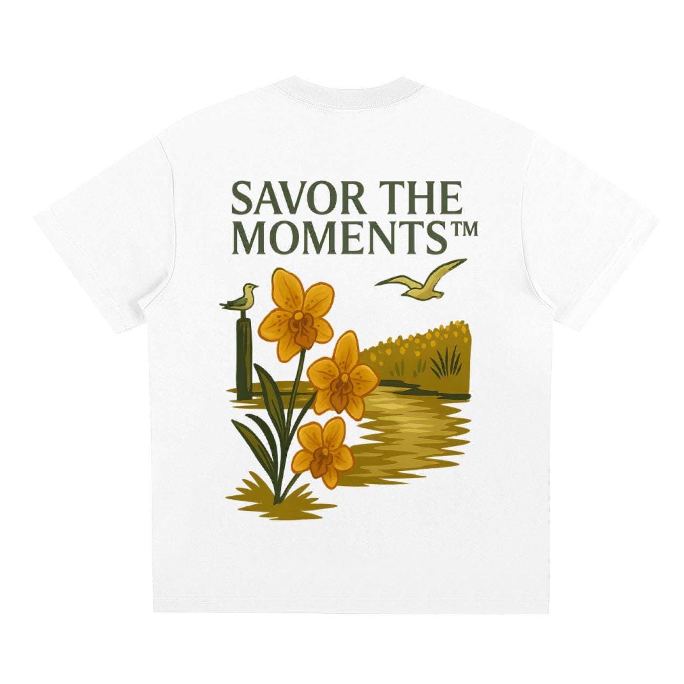 Coastal Sorona Quick‑Dry Cooling Tee featuring seagulls, marsh blooms, and canal way charm, oceanview lovers seeking a cool summer gift.