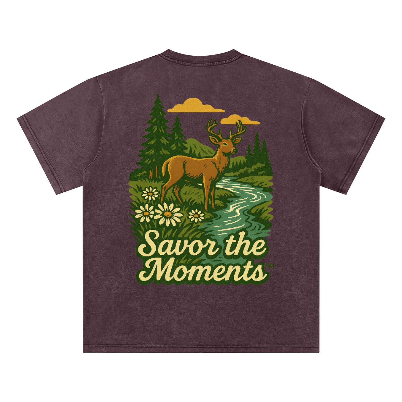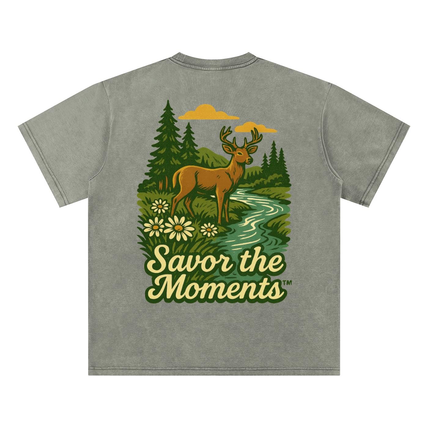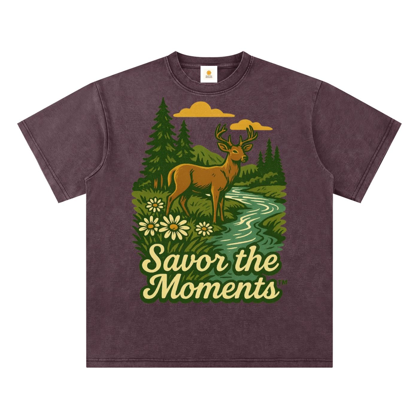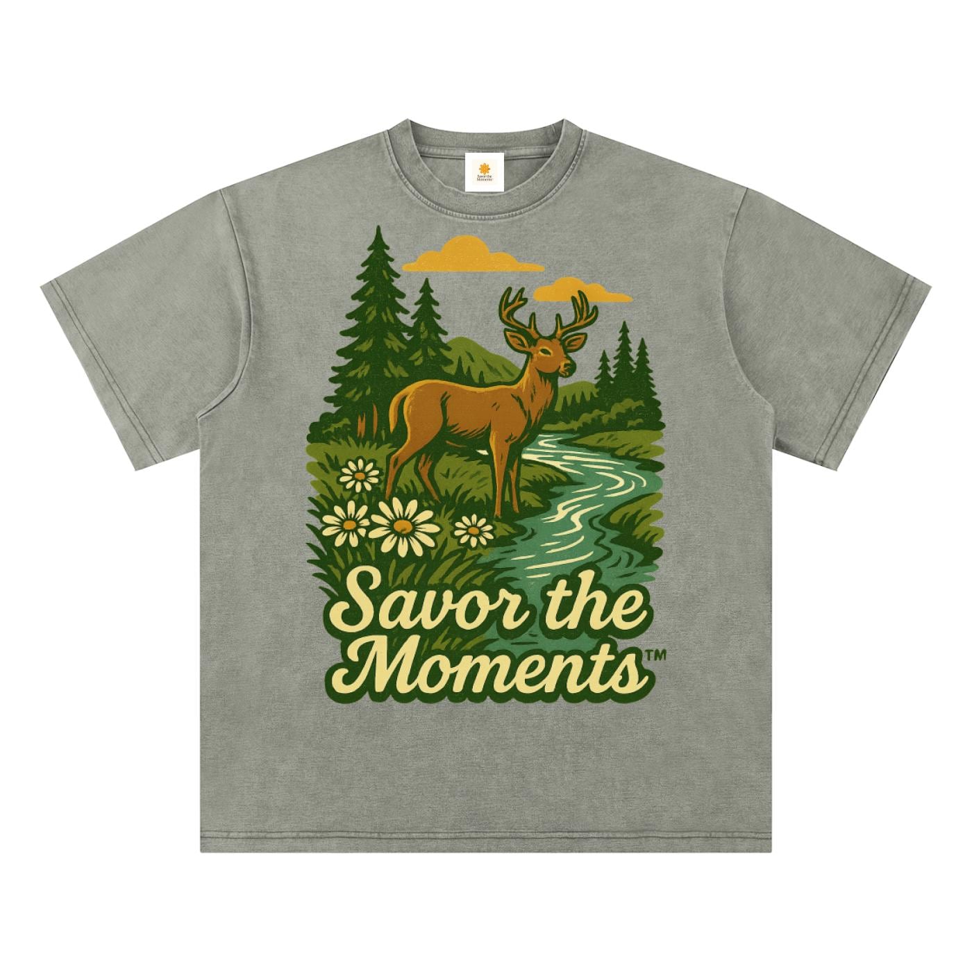 Deer vibe Bamboo Slub Snow Washed T‑Shirt stream, wildlife details, crafted, nature lovers, soft comfort, outdoor beauty.