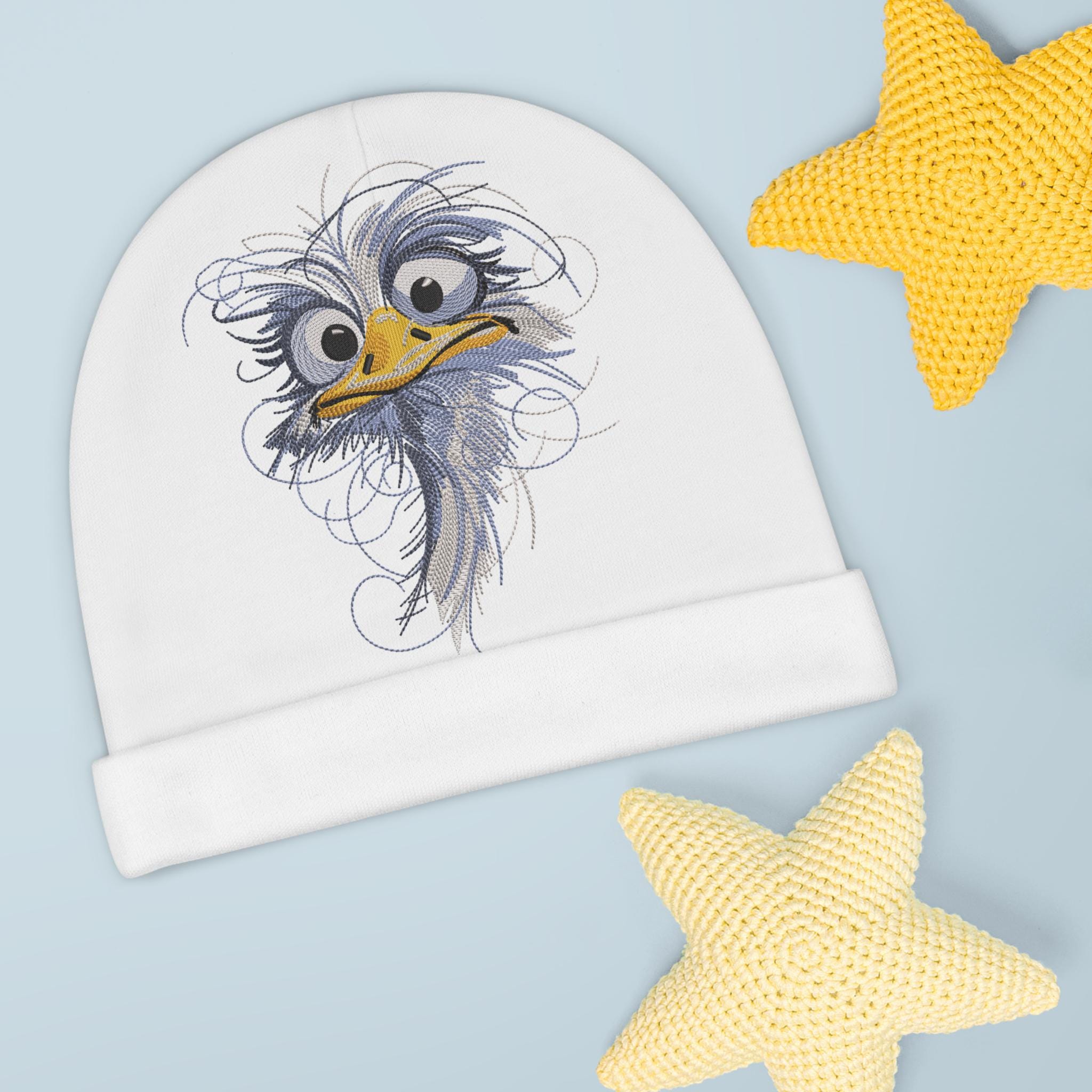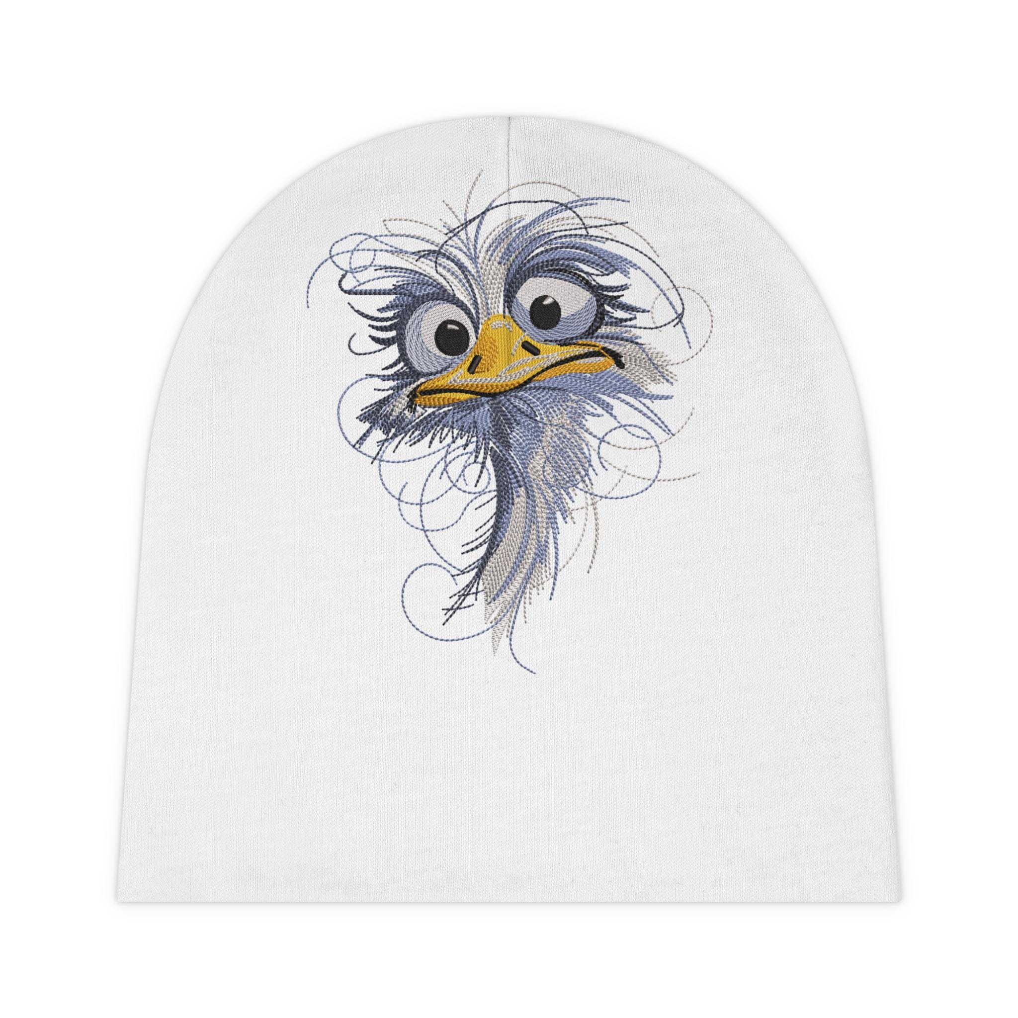 Ostrich Face Baby Beanie • Playful Bird Illustration • Soft Knit Infant Hat • Nursery Gift.