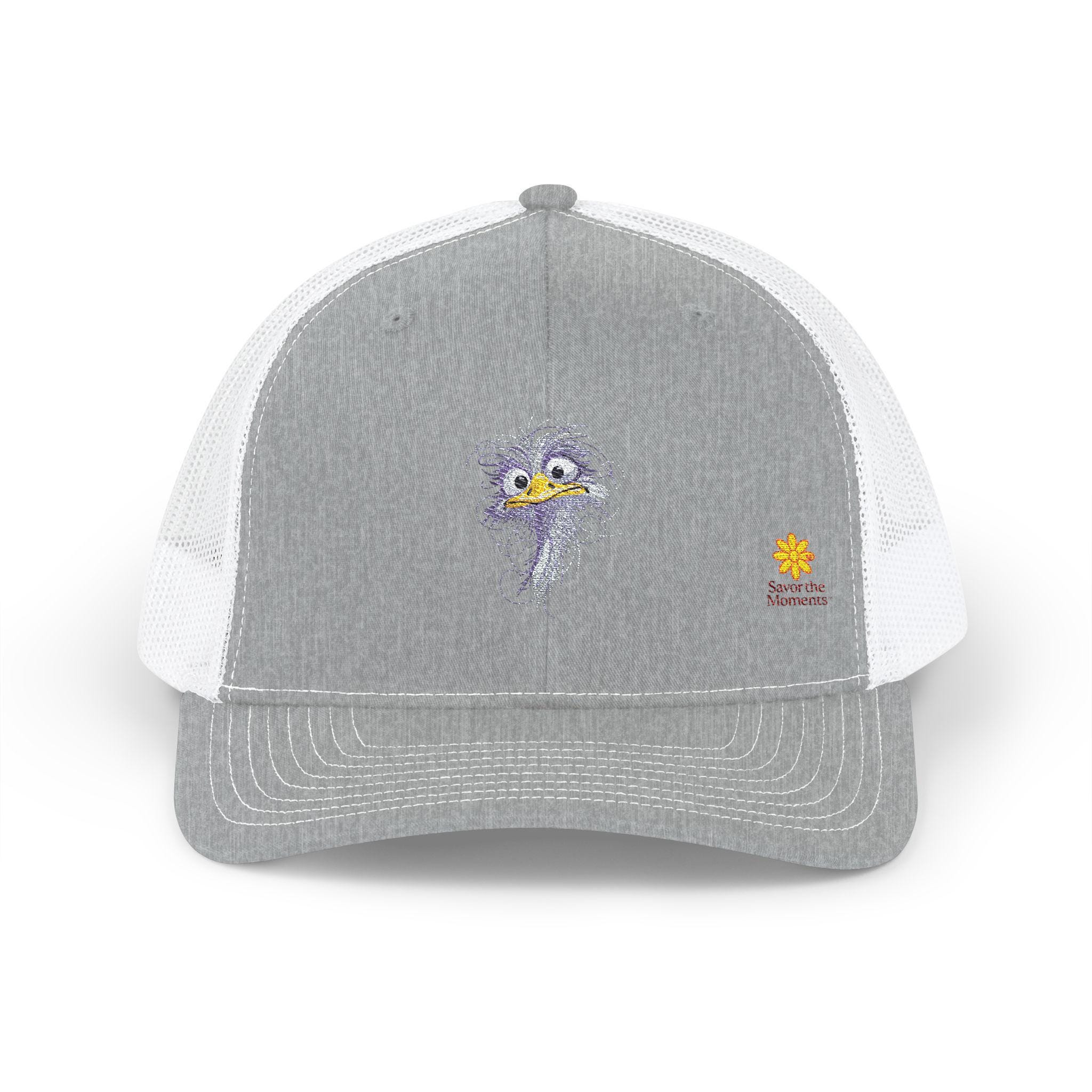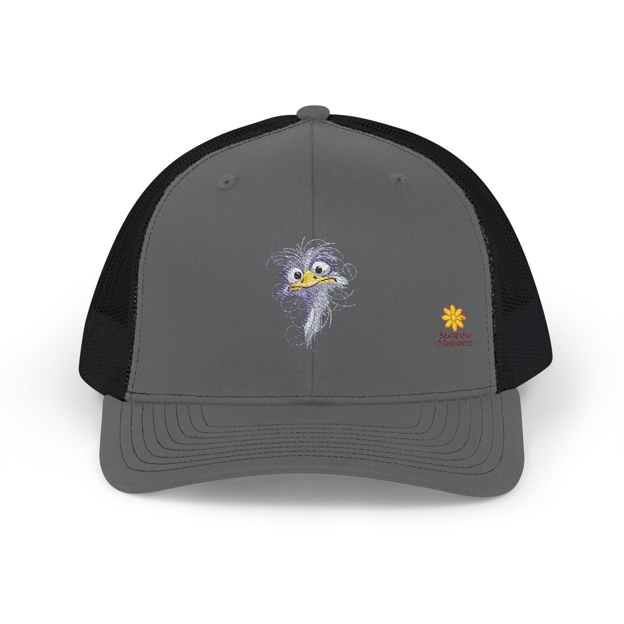 Cosmic Ostrich Embroidered Snapback Trucker Cap | Space Galaxy Ostrich.