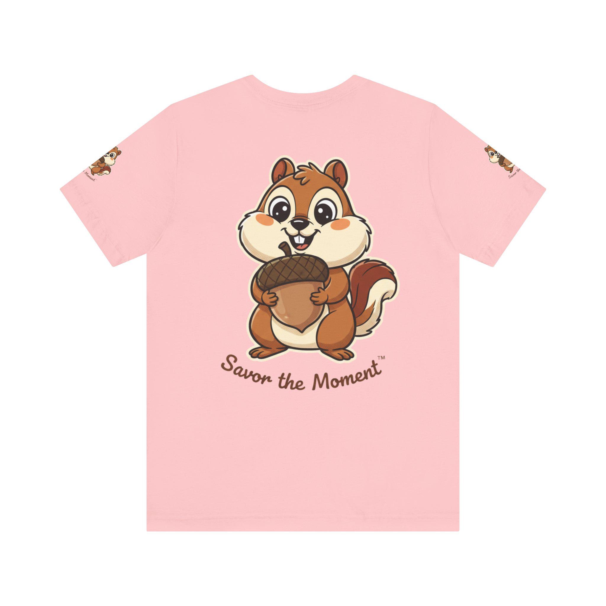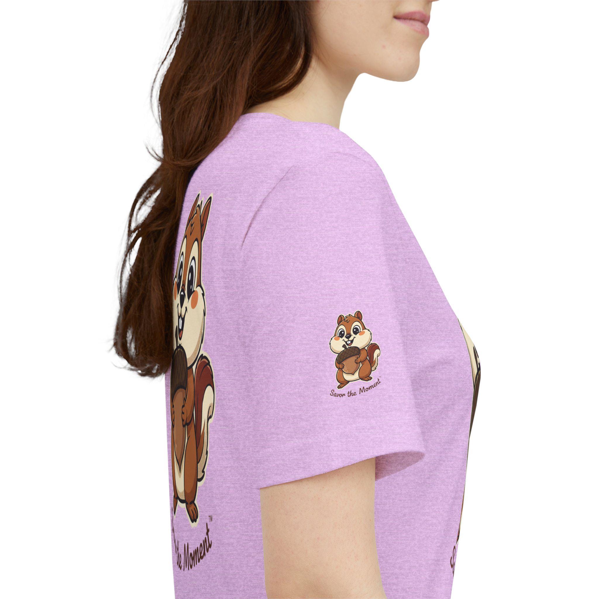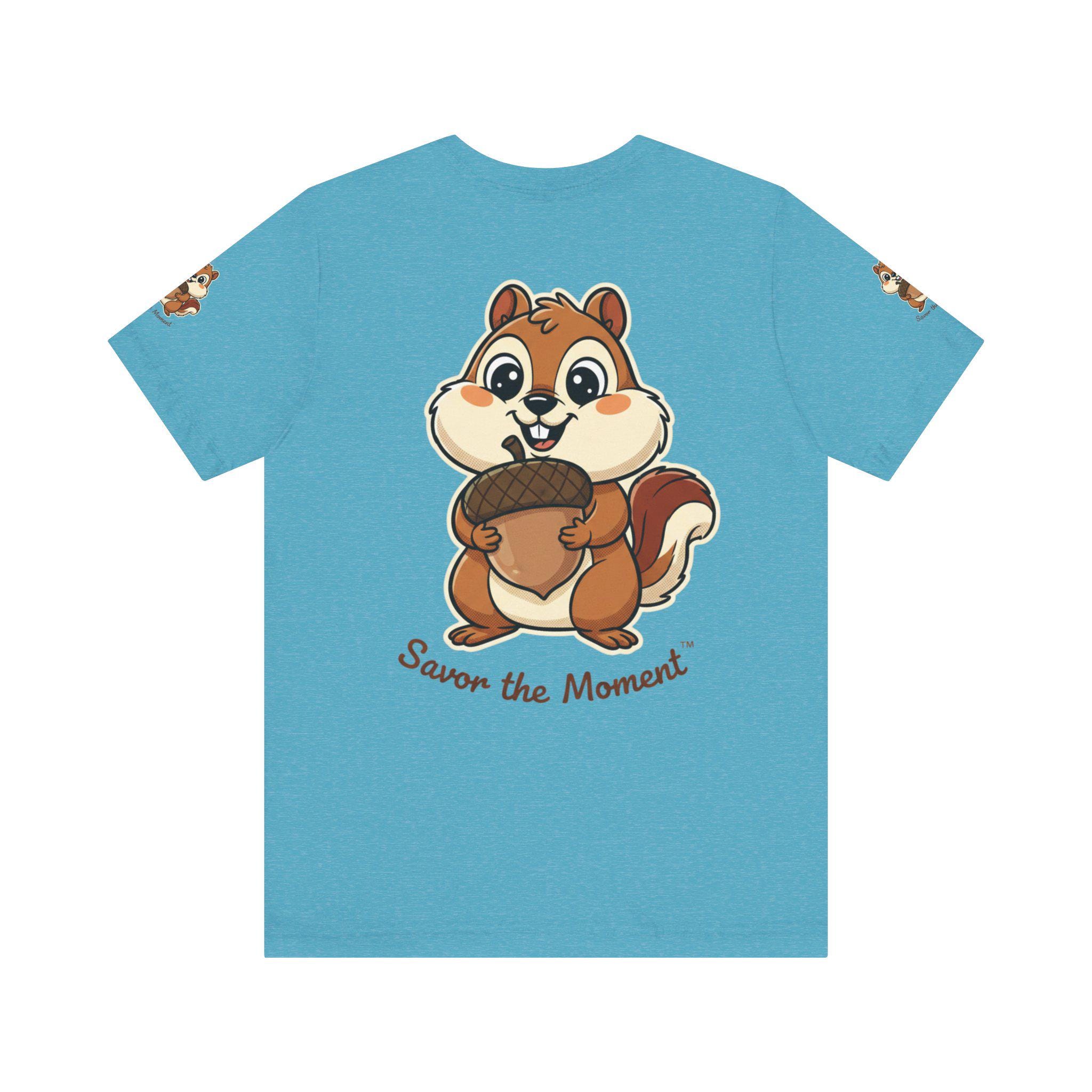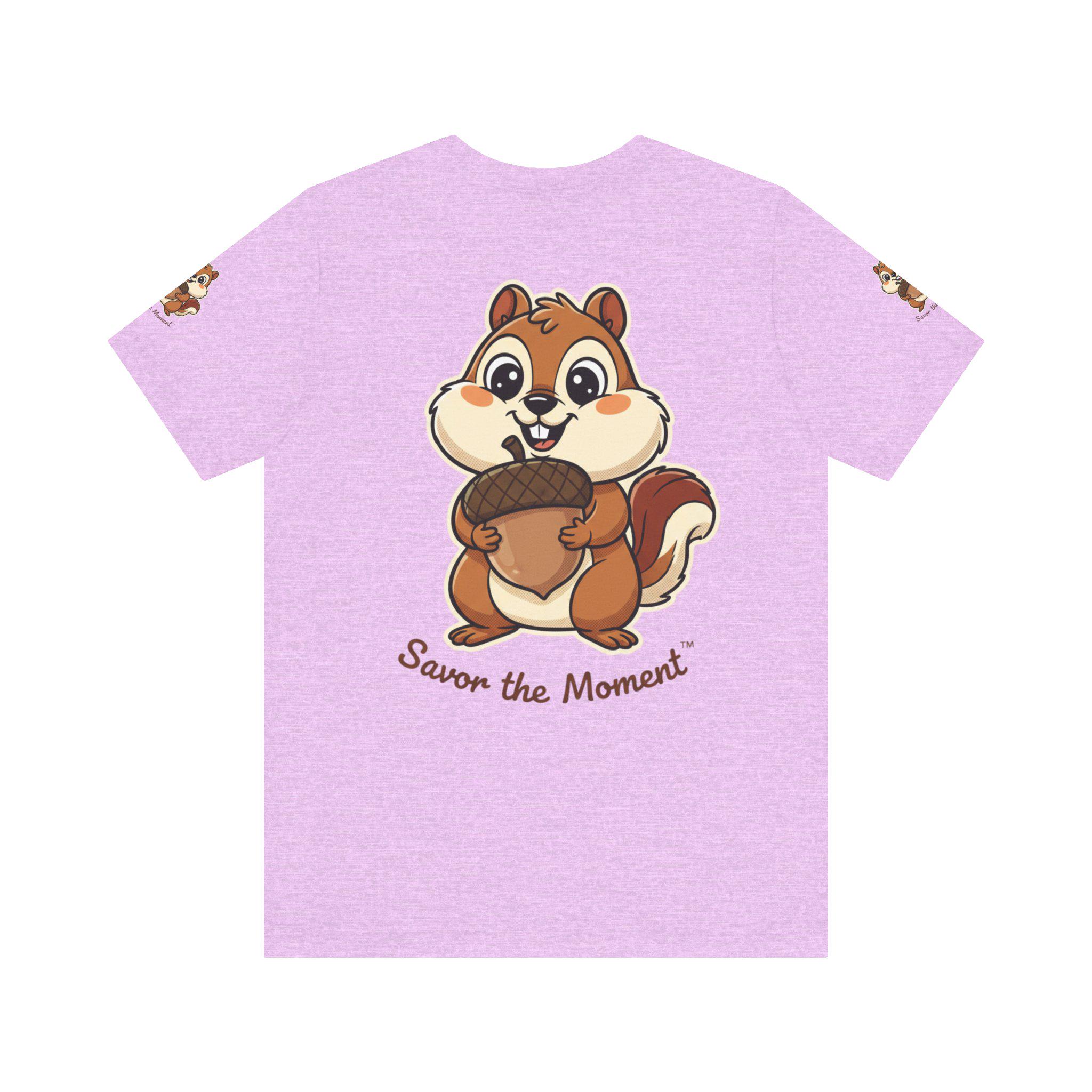 A soft, breathable tee printed with an affectionate squirrel clutching an oversized acorn and the hand-lettered phrase “Savor the Moment.” Light and easy to wear, it brings a playful, slow-living vibe to everyday outfits. Slip it on for morning coffee, park strolls, or cozy hangouts — the illustration sparks, smiles and reminds the wearer to notice small joys. The crew neck and retail fit keep the silhouette neat for layering under jackets or wearing solo. Thoughtful production details — tear-away label, side seams, shoulder tape, and responsibly sourced Airlume combed cotton — make this shirt comfortable and long-lasting, keeps the artwork crisp and true to color.