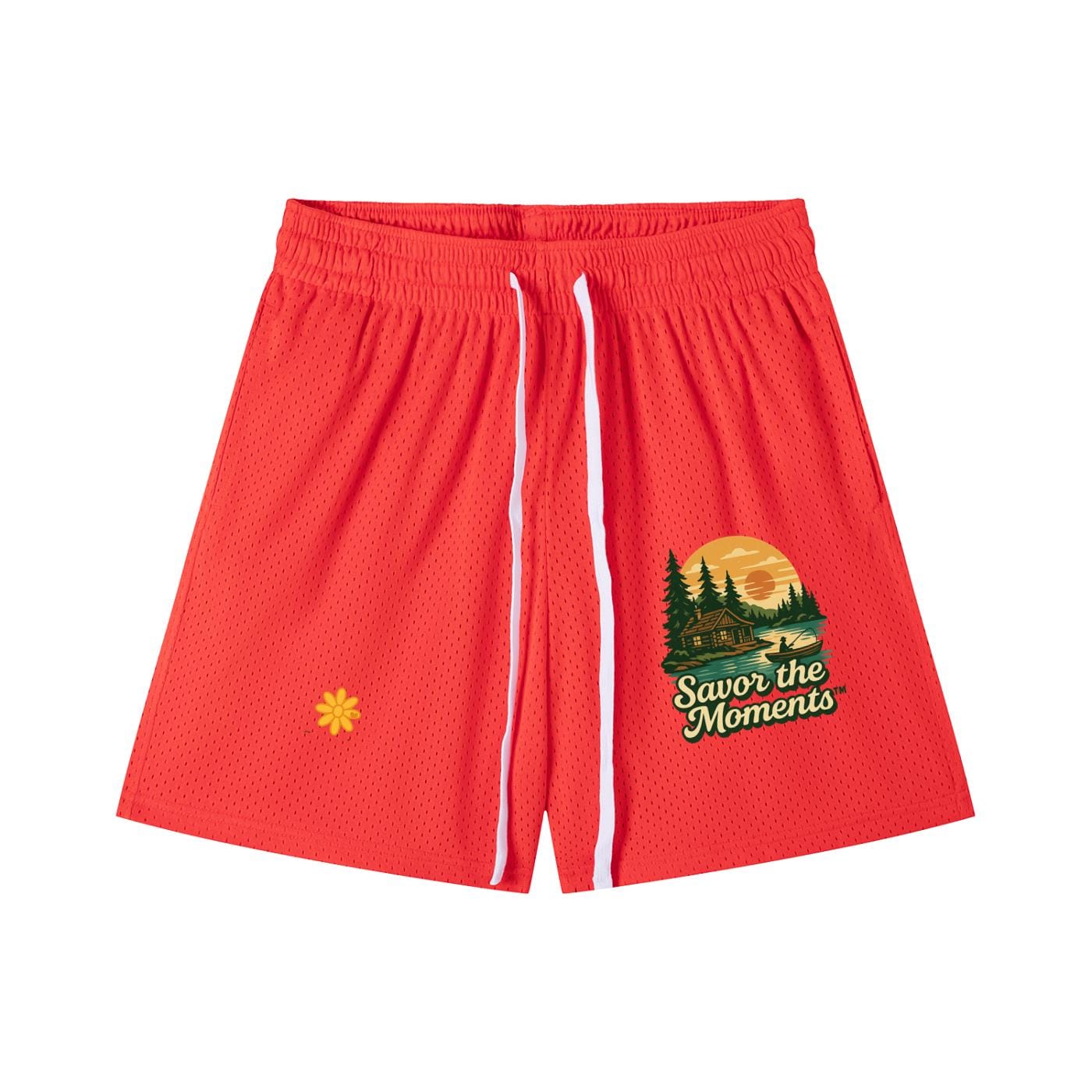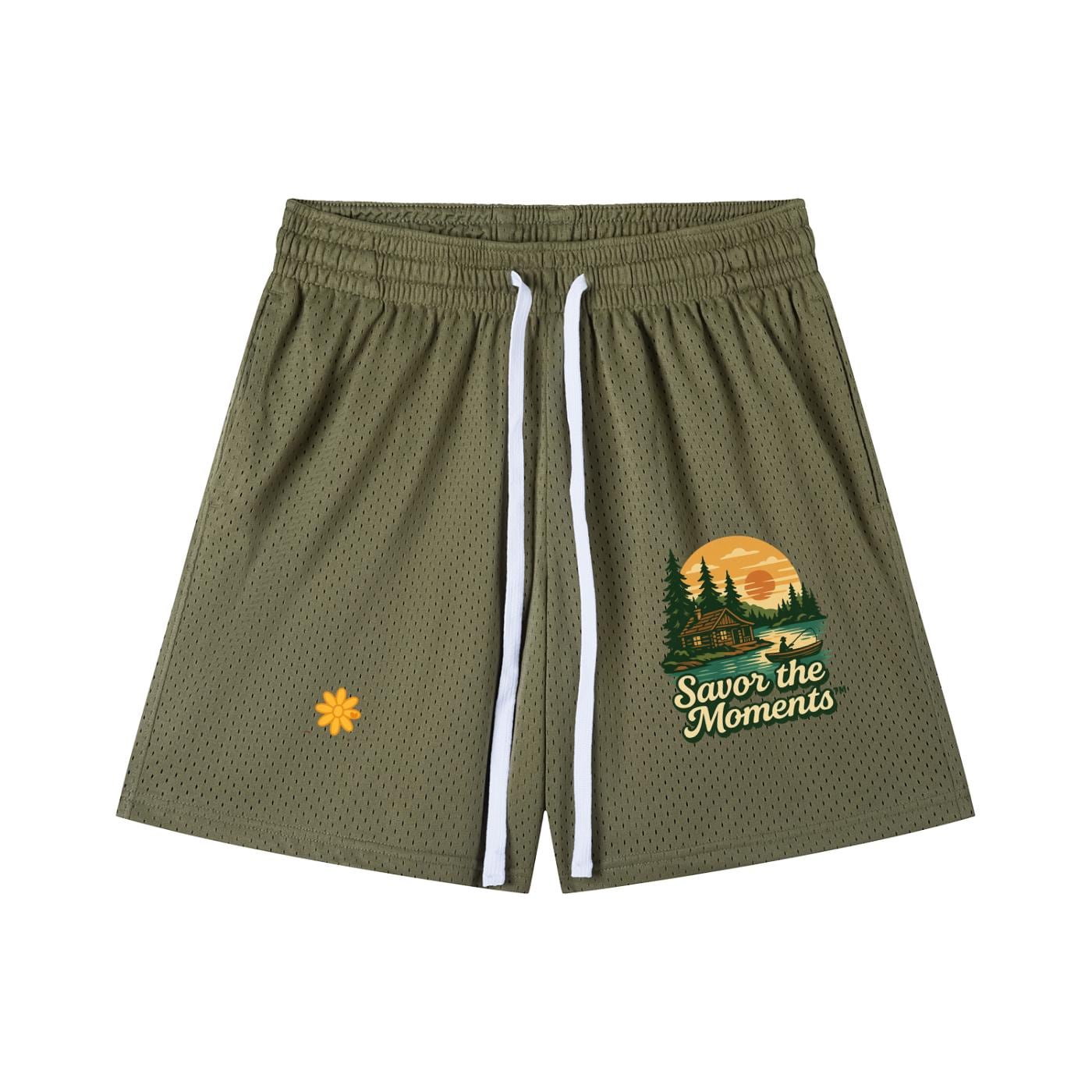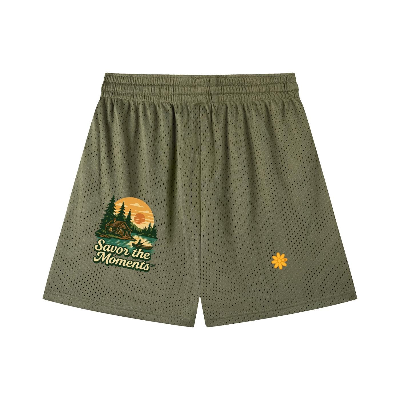 Deer, Mountain Vibe, Cabin, fishing, Lake, Sunset, Mesh Drawstring Shorts.