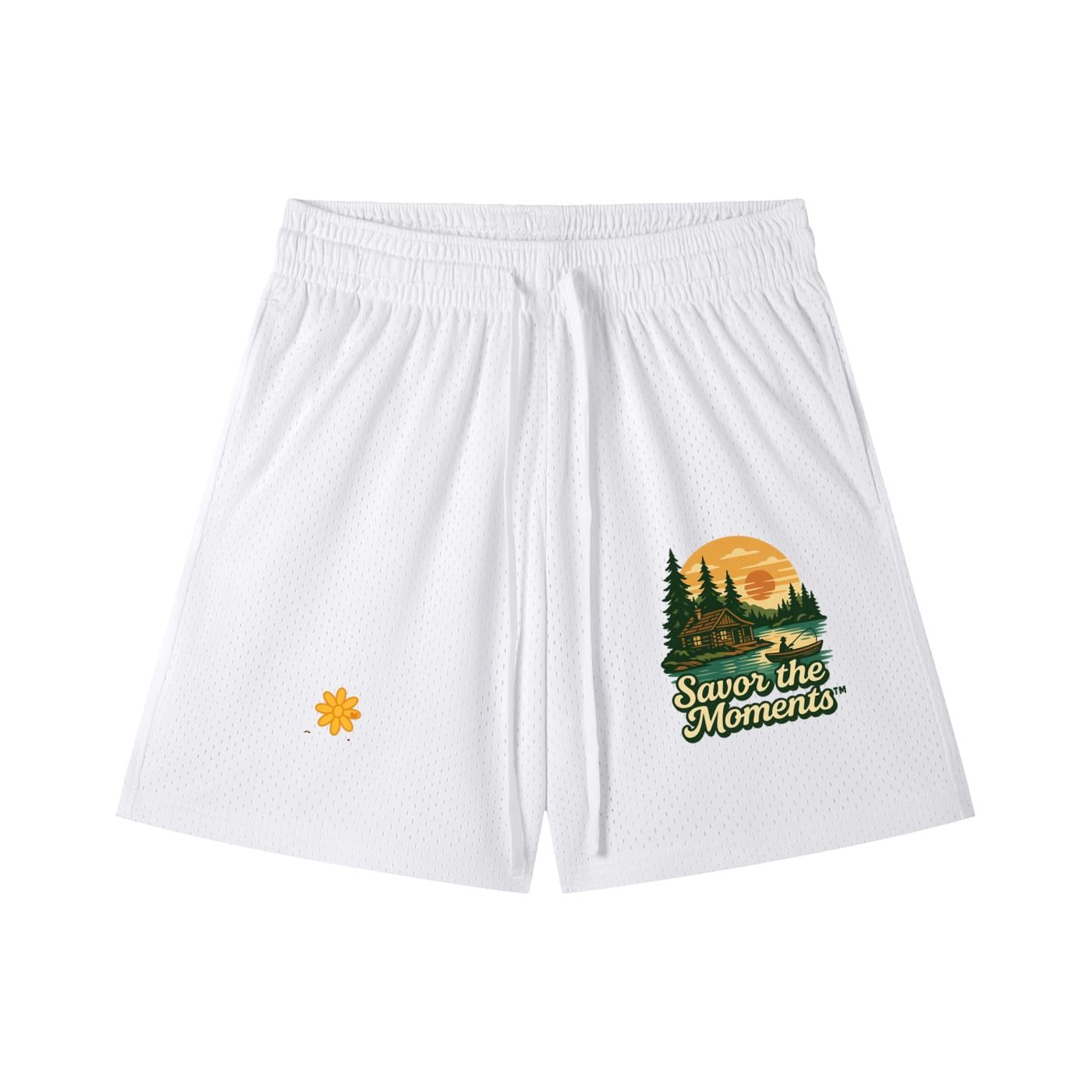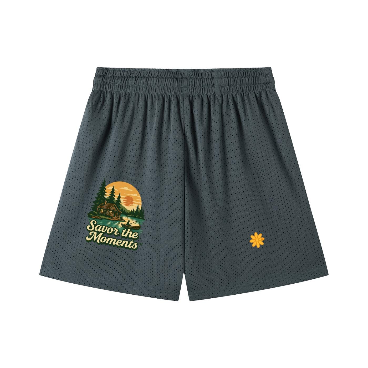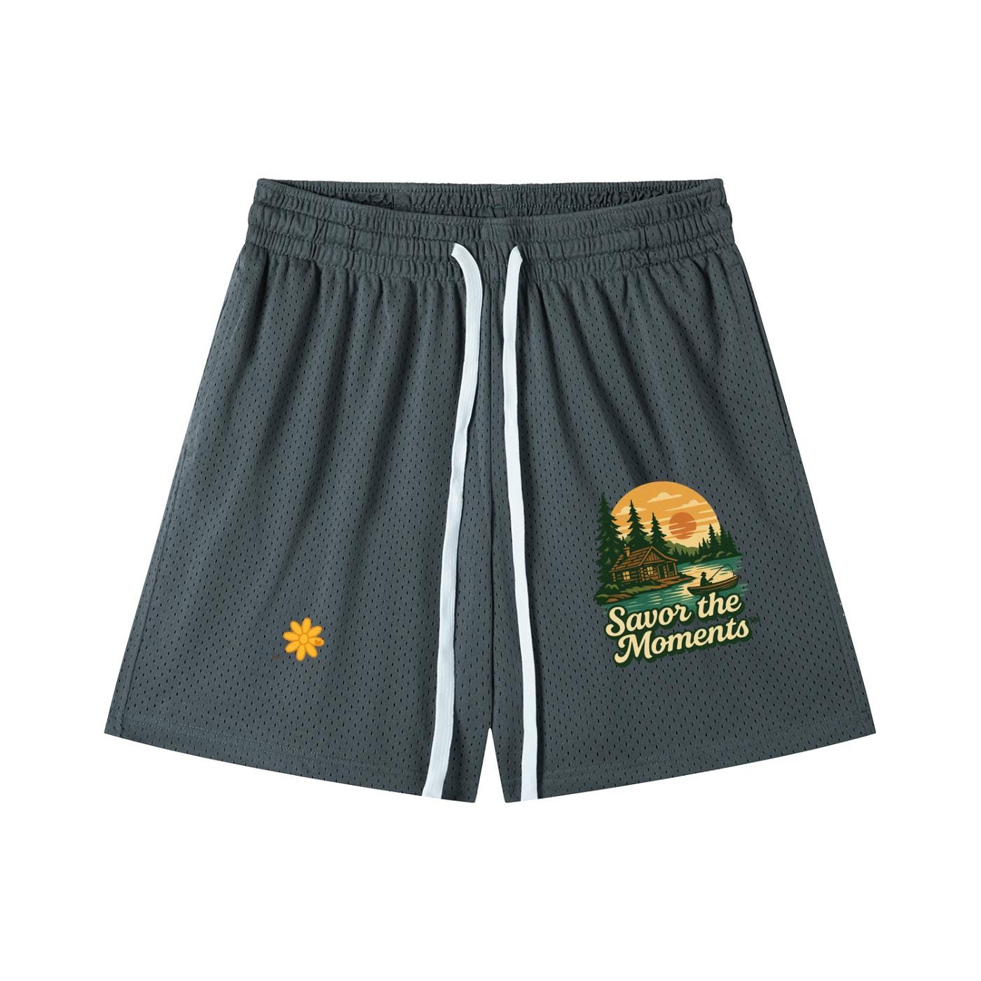 Deer, Mountain Vibe, Cabin, fishing, Lake, Sunset, Mesh Drawstring Shorts.