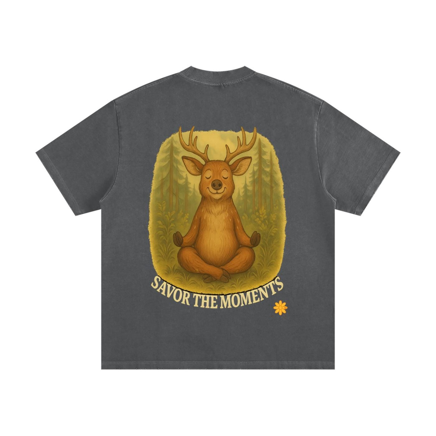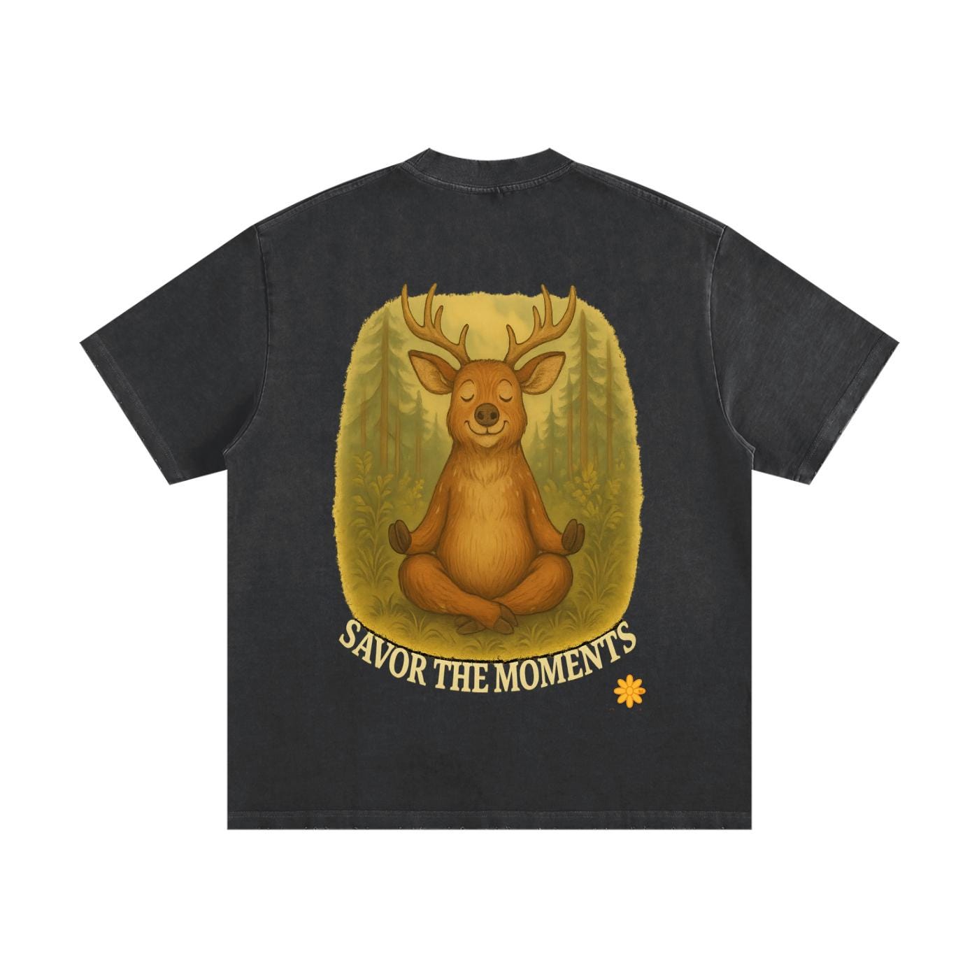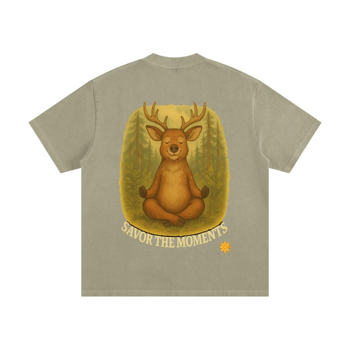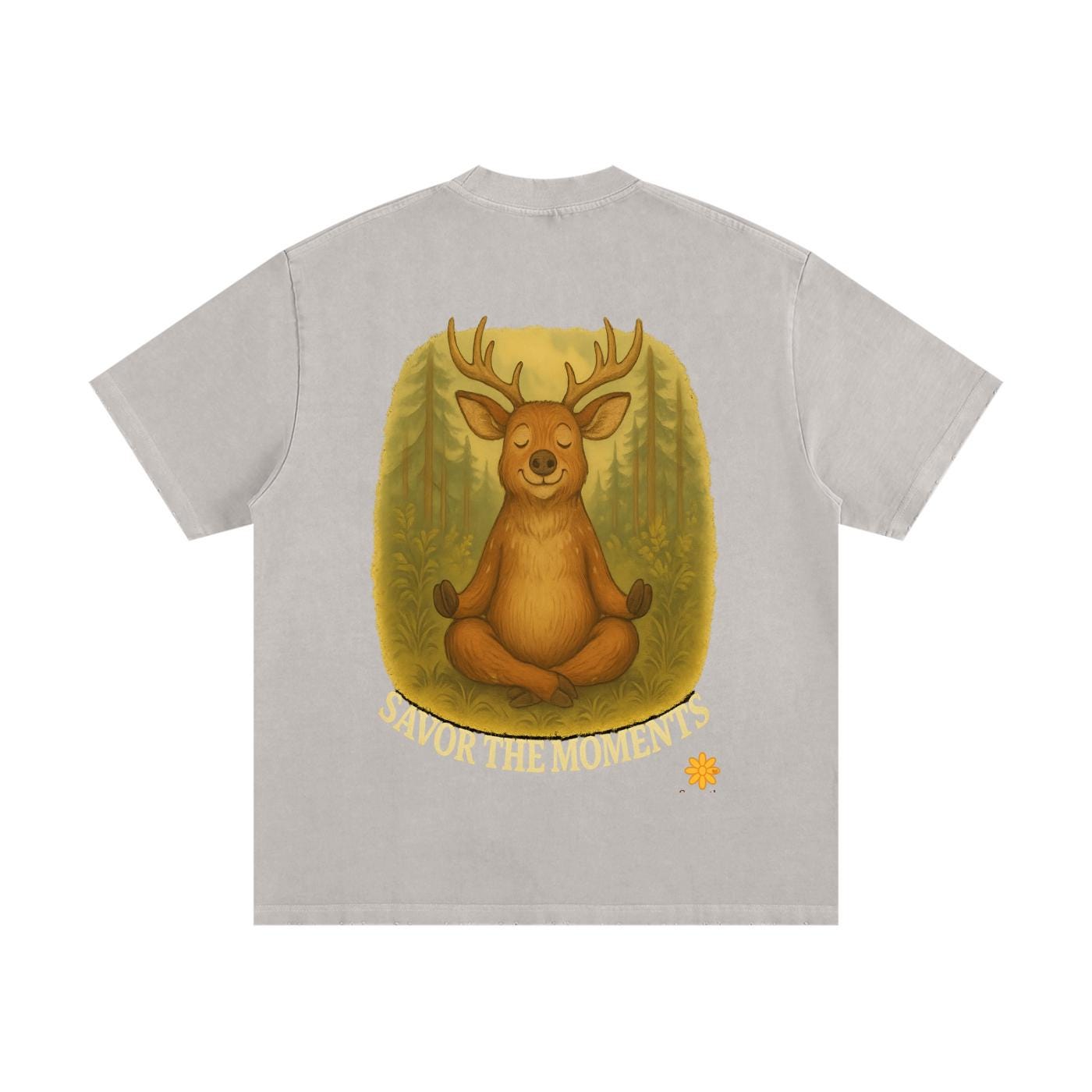 Goofy Zen Deer, Heavyweight Vintage Washed Frayed T-Shirt, Funny Woodland Creature.