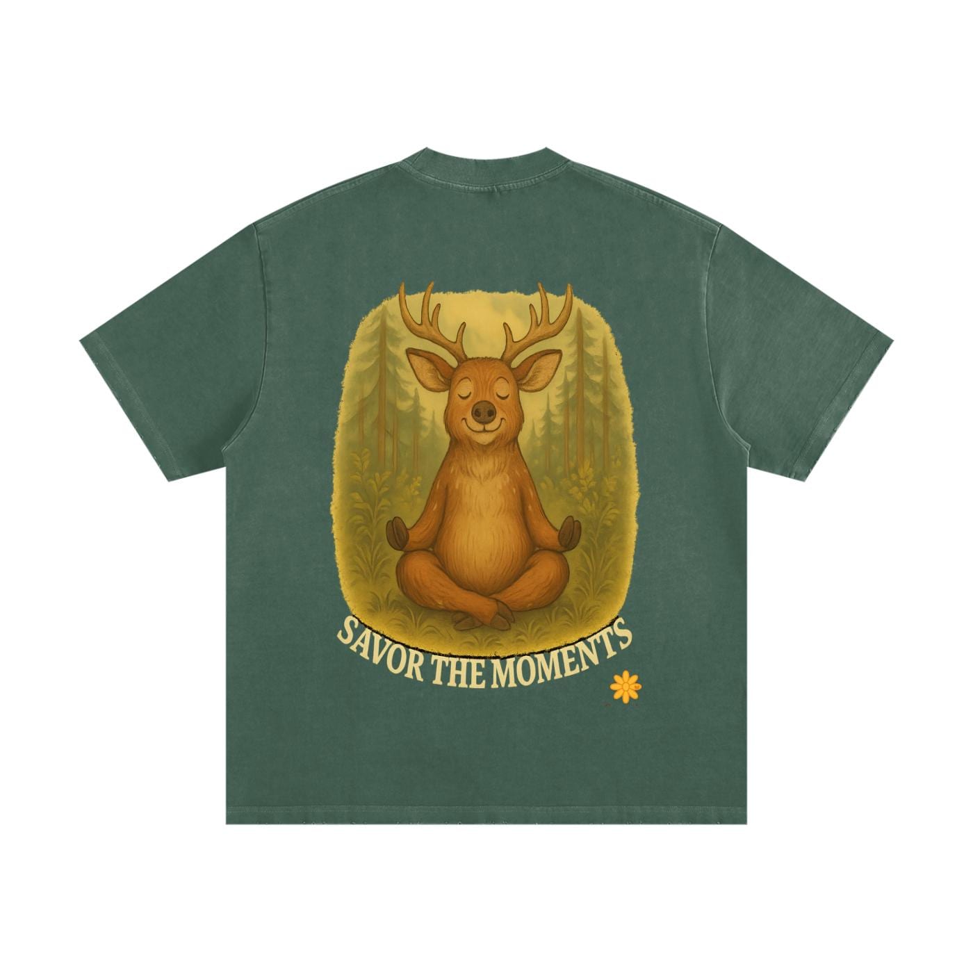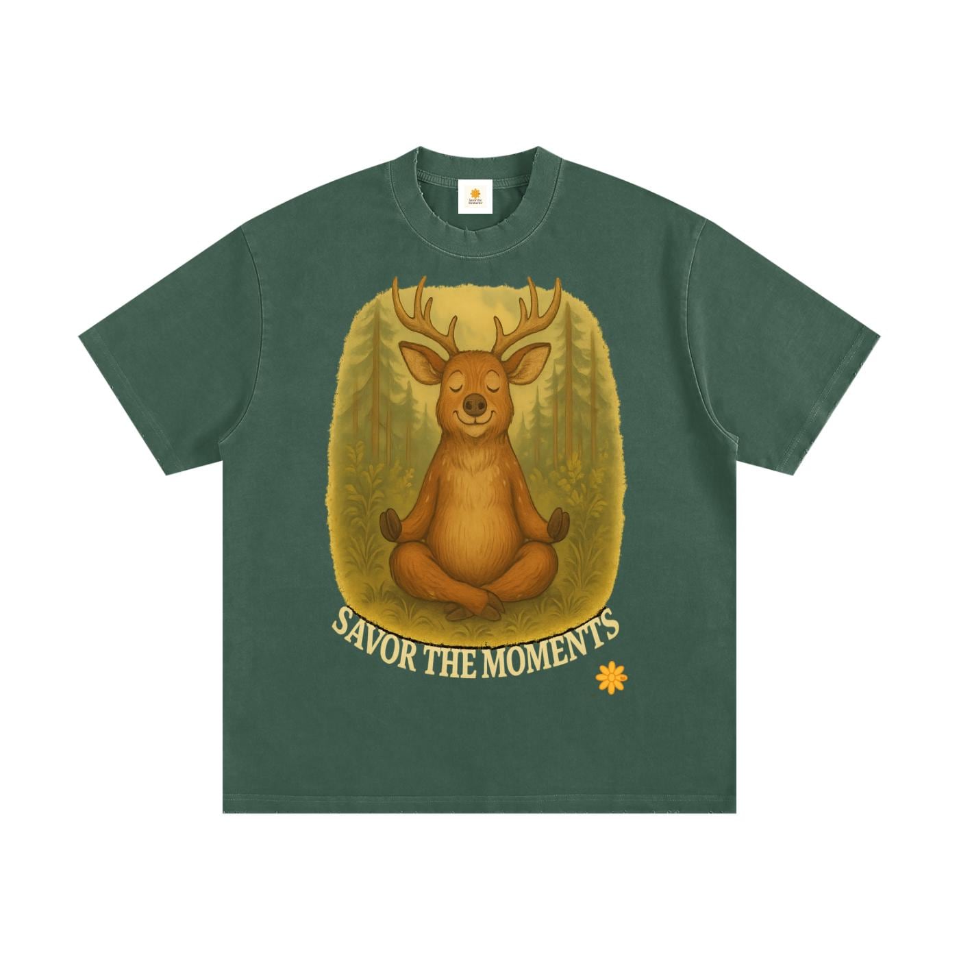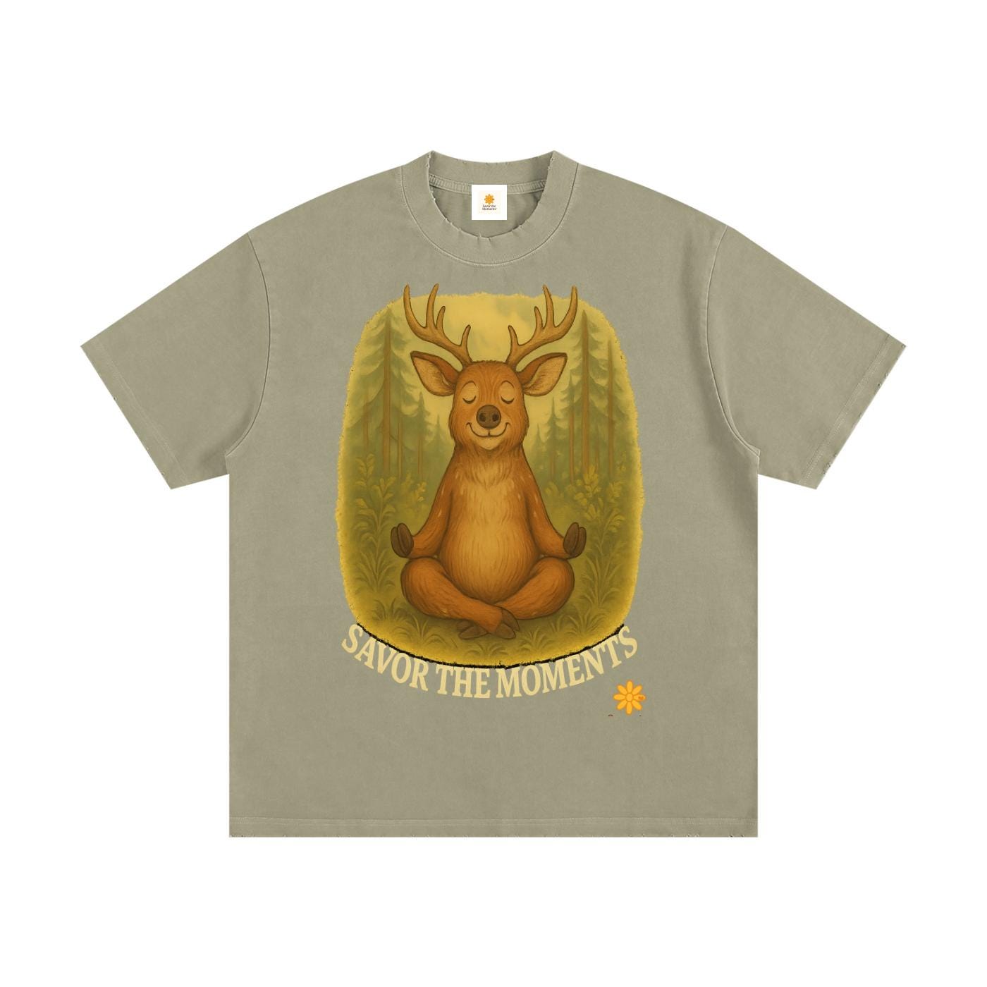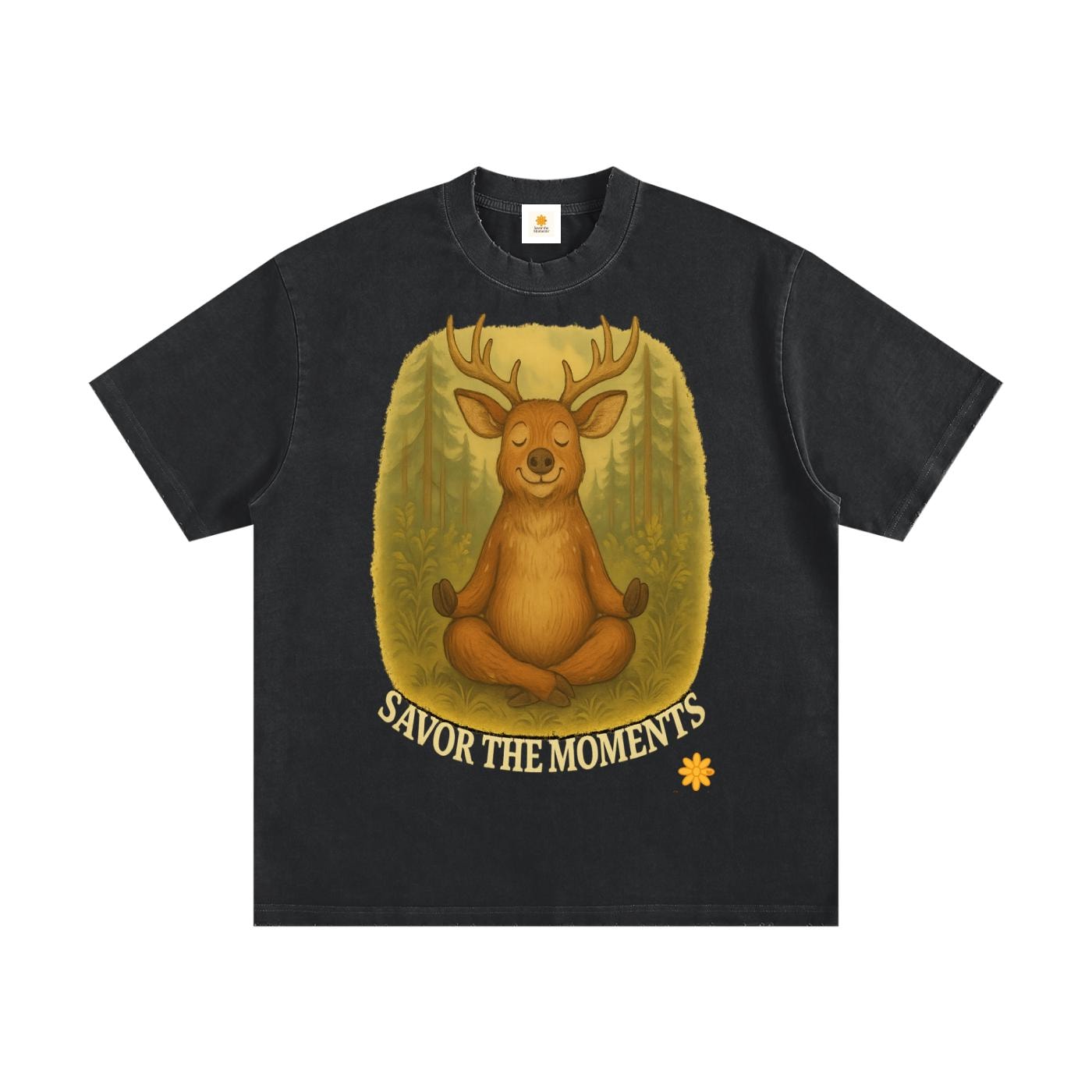 Goofy Zen Deer, Heavyweight Vintage Washed Frayed T-Shirt, Funny Woodland Creature.