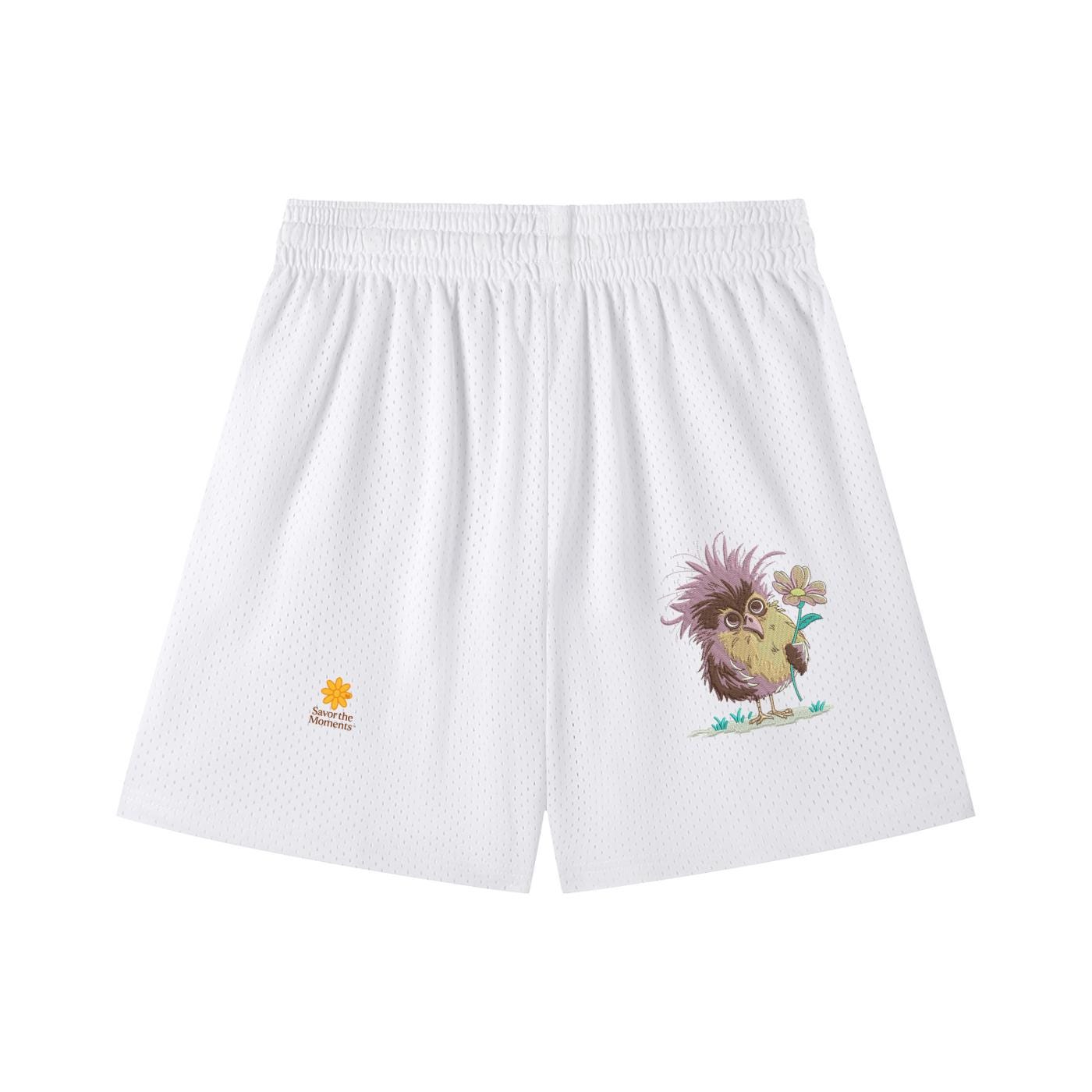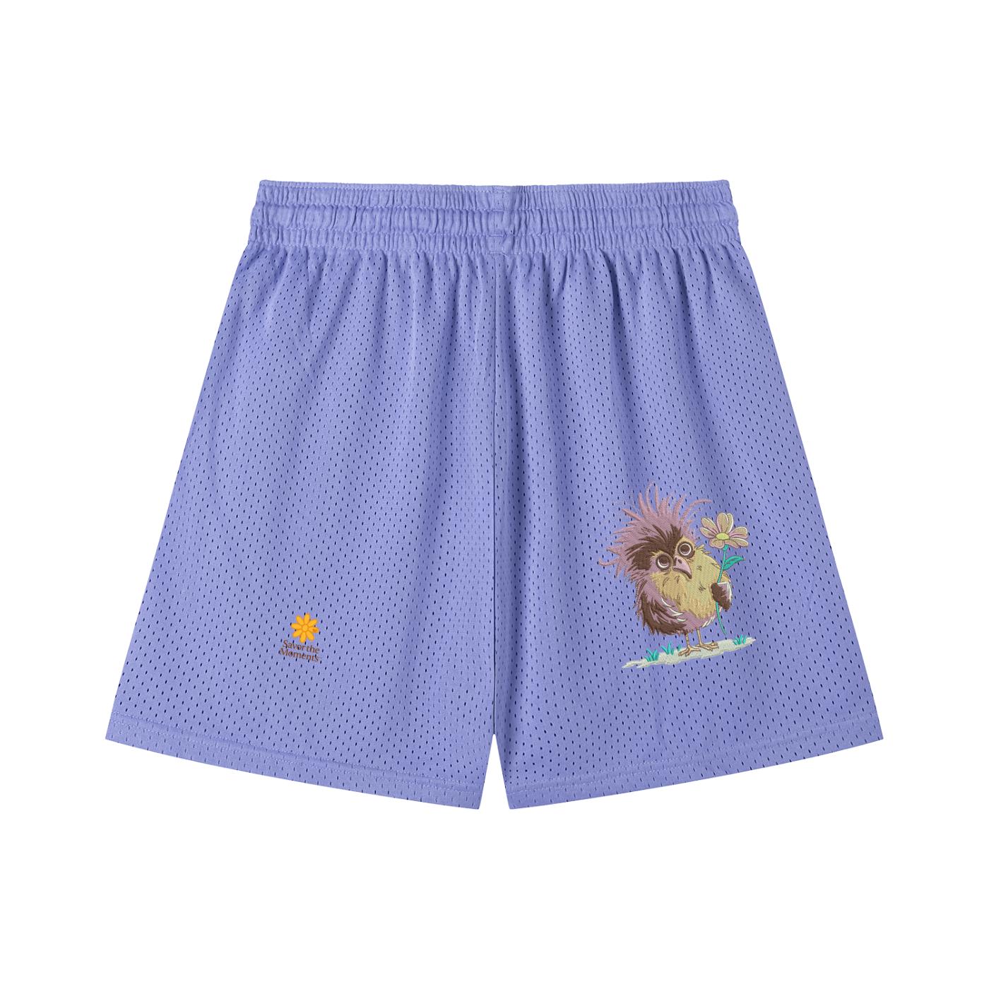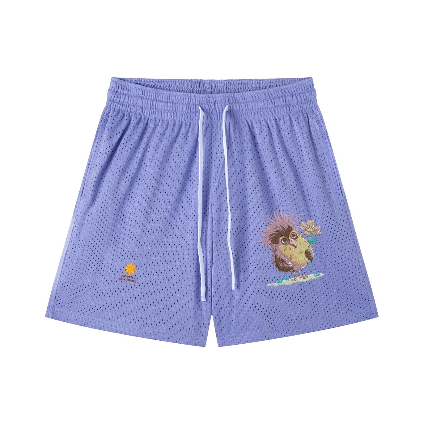 Goofy Bird, Silly Animal, Purple Bird, Mesh Drawstring Shorts, Savor the Moments