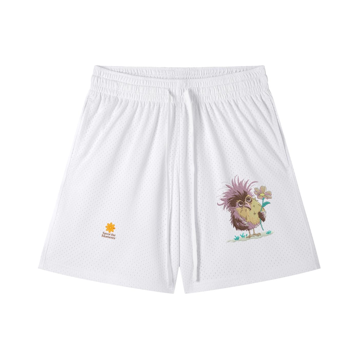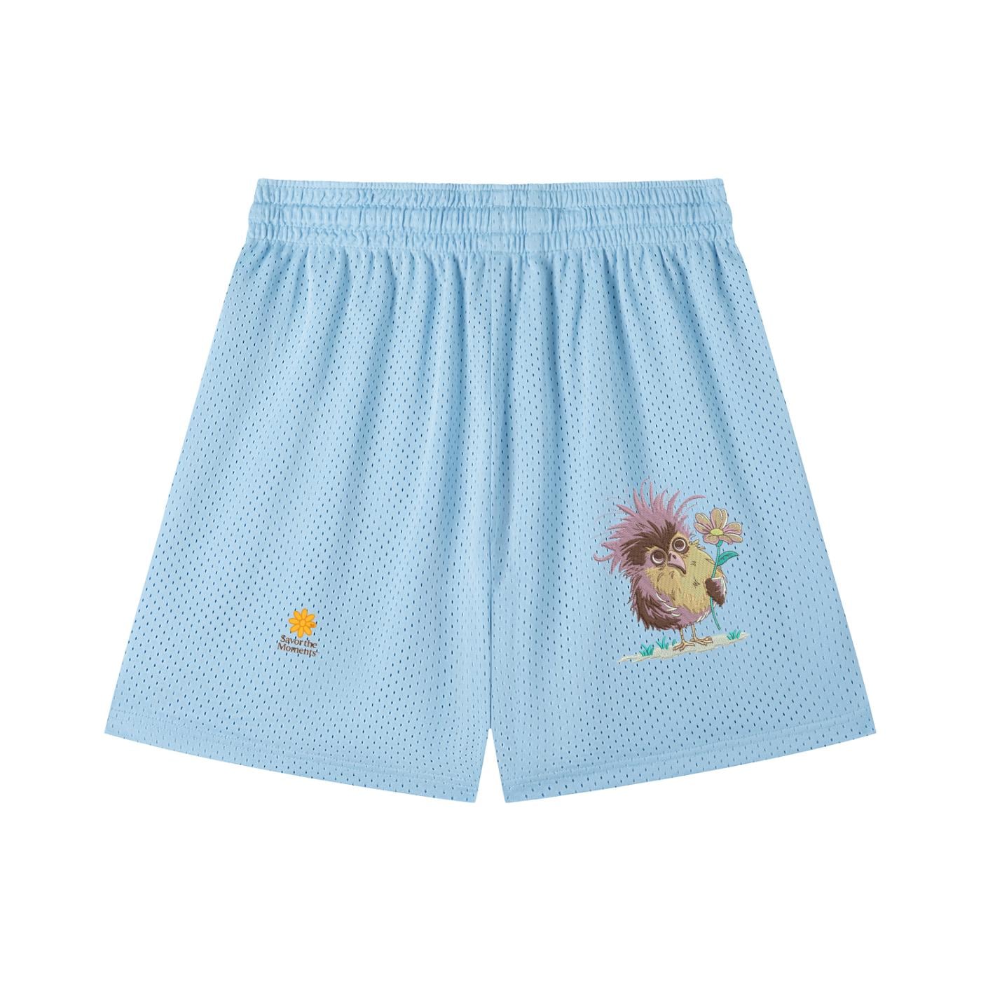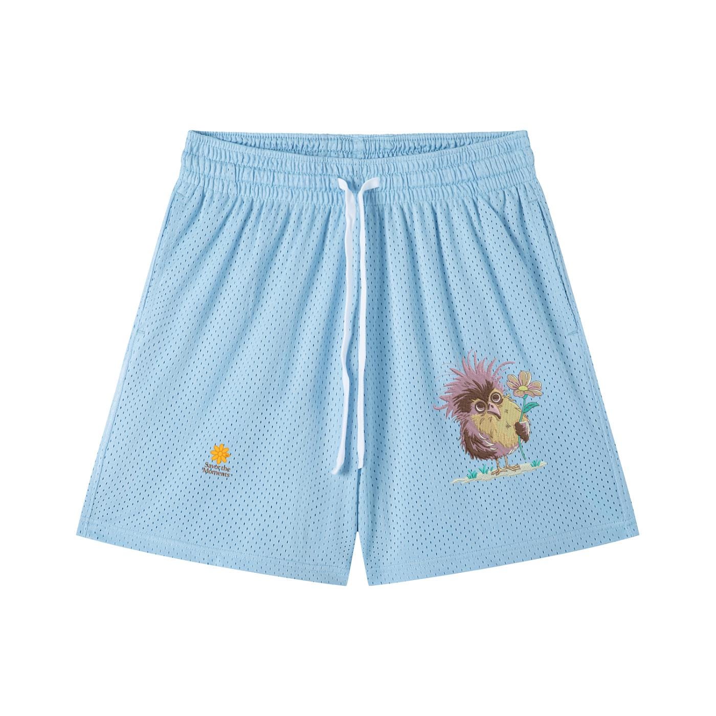 Goofy Bird, Silly Animal, Purple Bird, Mesh Drawstring Shorts, Savor the Moments