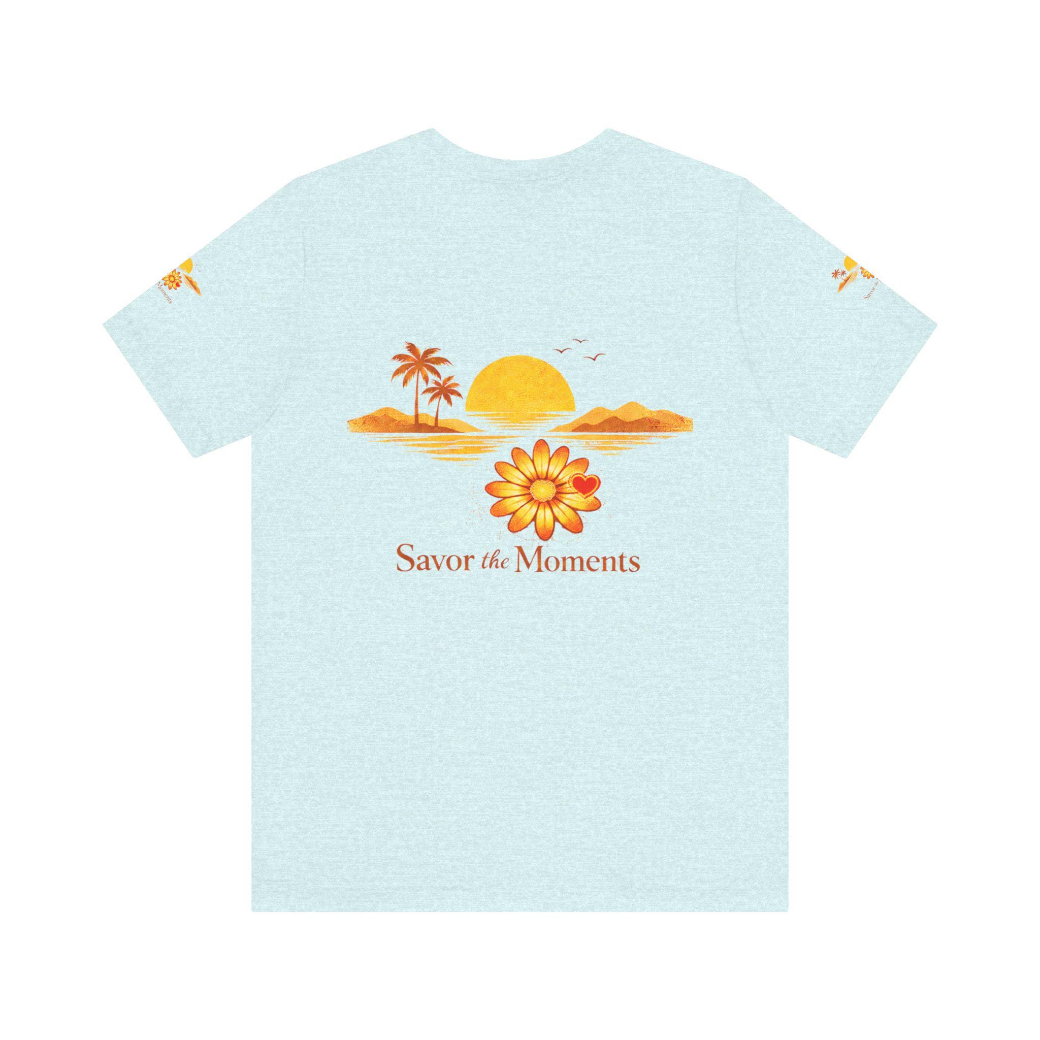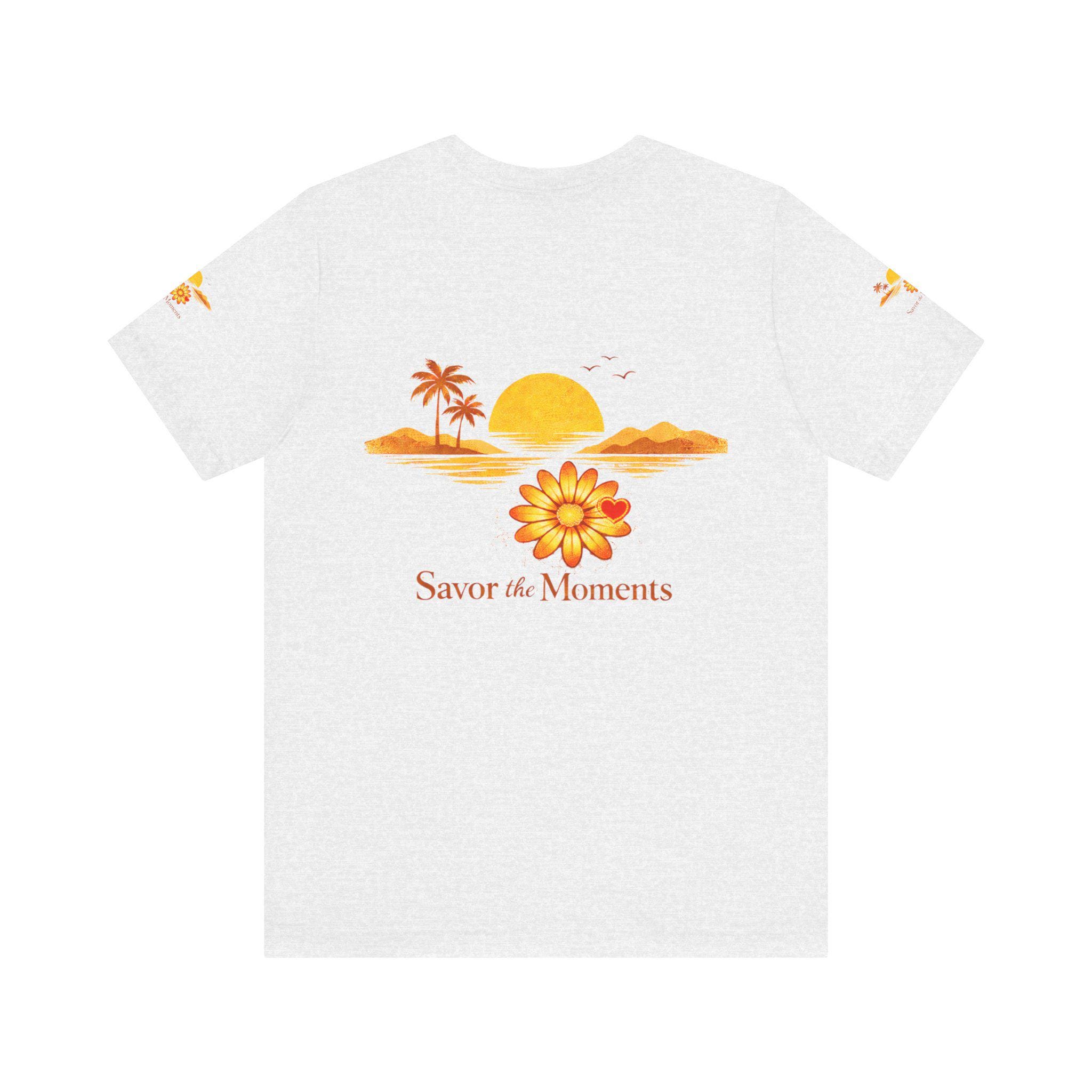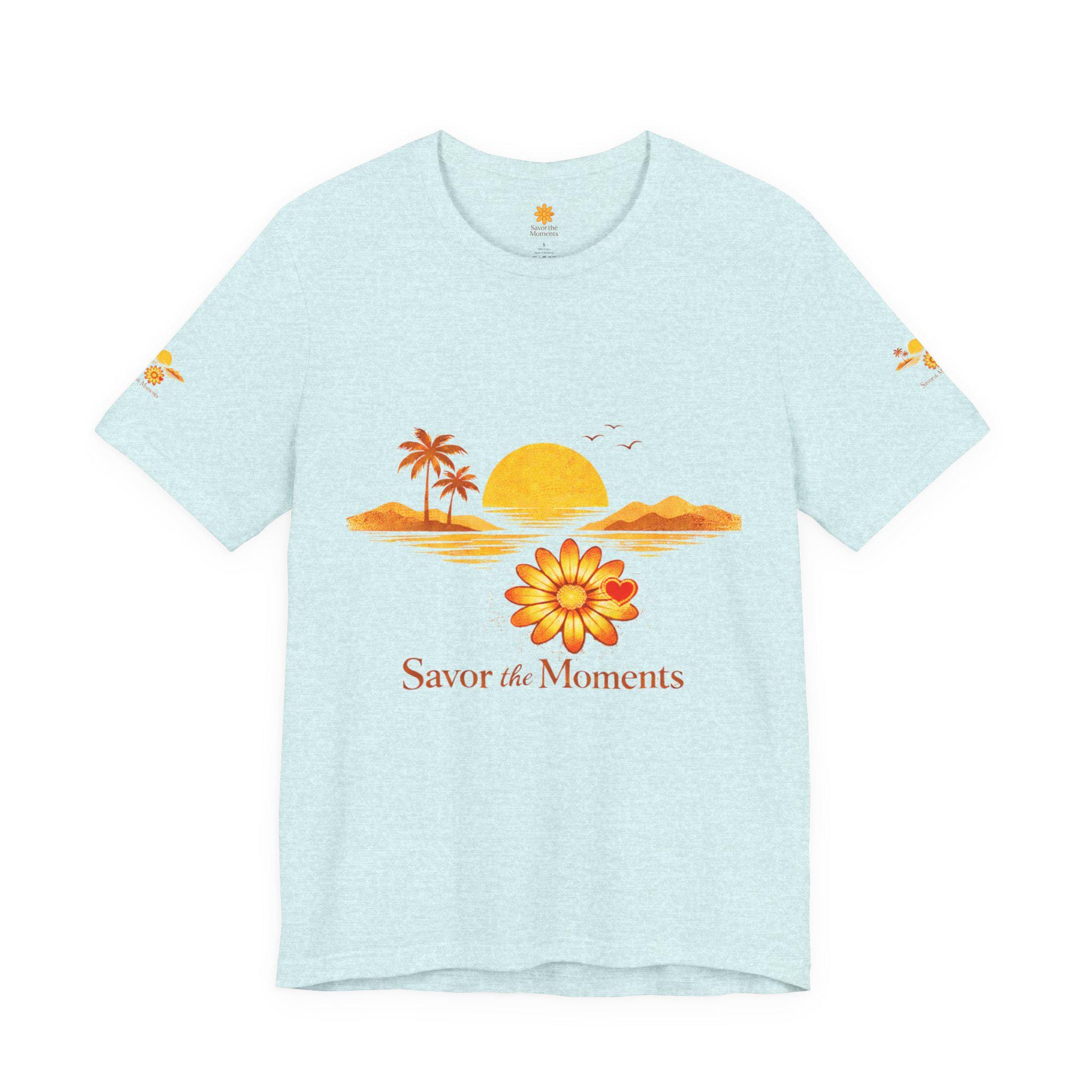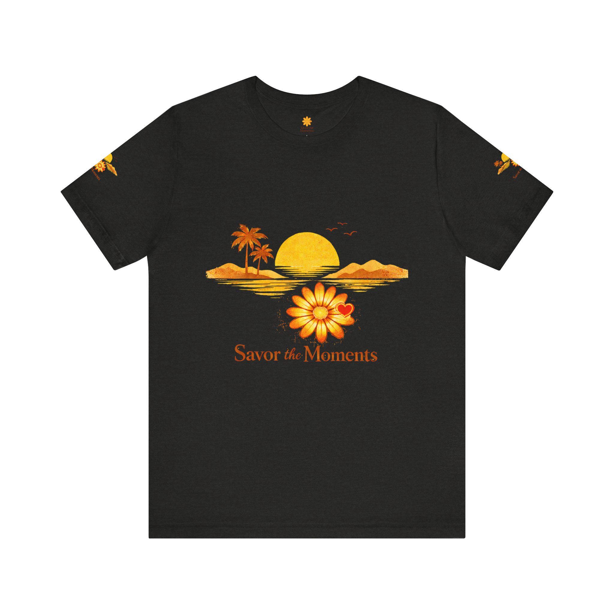 Breathe in the slow warmth of a late afternoon on the coast. This lightweight jersey tee captures a mellow sunset—golden sun, palm silhouettes, and a simple floral accent—paired with the gentle reminder: Savor the Moments. It sits neatly at the crew neck and falls with a relaxed retail fit, layering easily under jackets or worn solo while wandering boardwalks, picnicking by the water, or lounging at home. Thoughtful details like side seams, ribbed knit collar, and shoulder tape keep the shape soft but structured. Made from breathable Airlume combed and ring-spun cotton with a tear-away label for extra comfort, it’s crafted in ethically audited facilities. Reach-certified and adult-sized, the shirt’s warm palette and calm vibe invite slow afternoons and easy conversations.