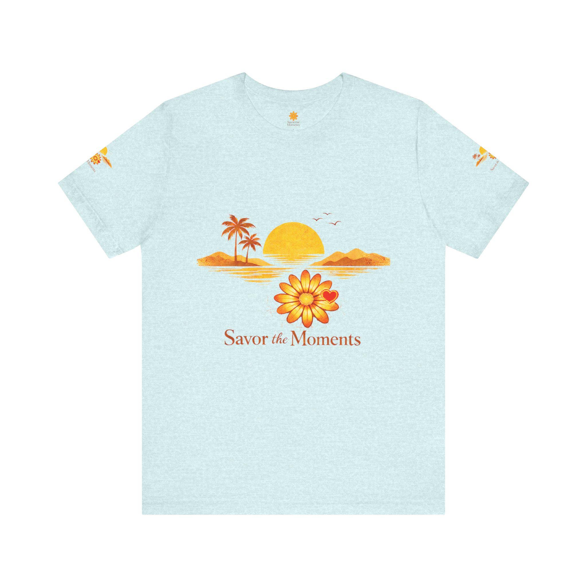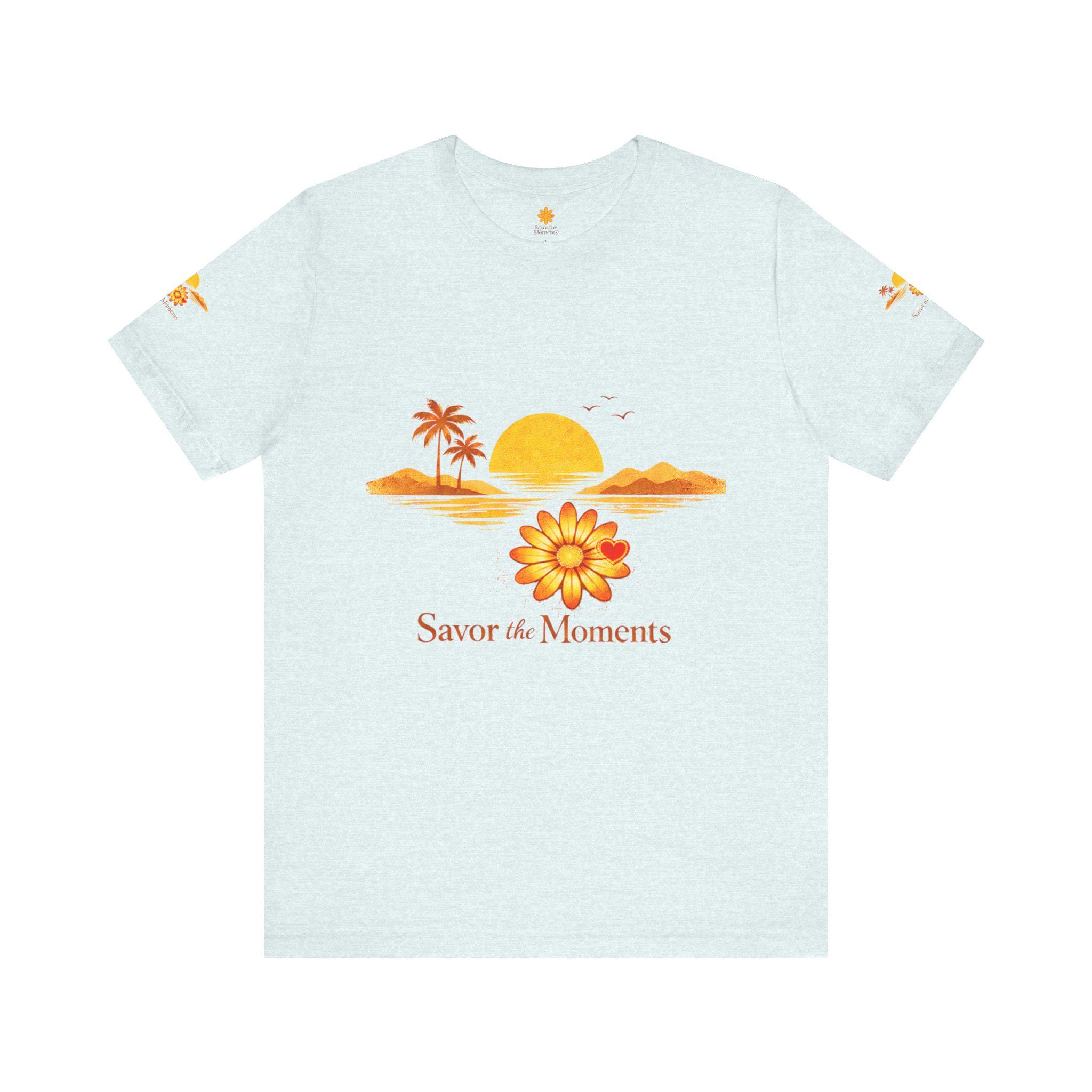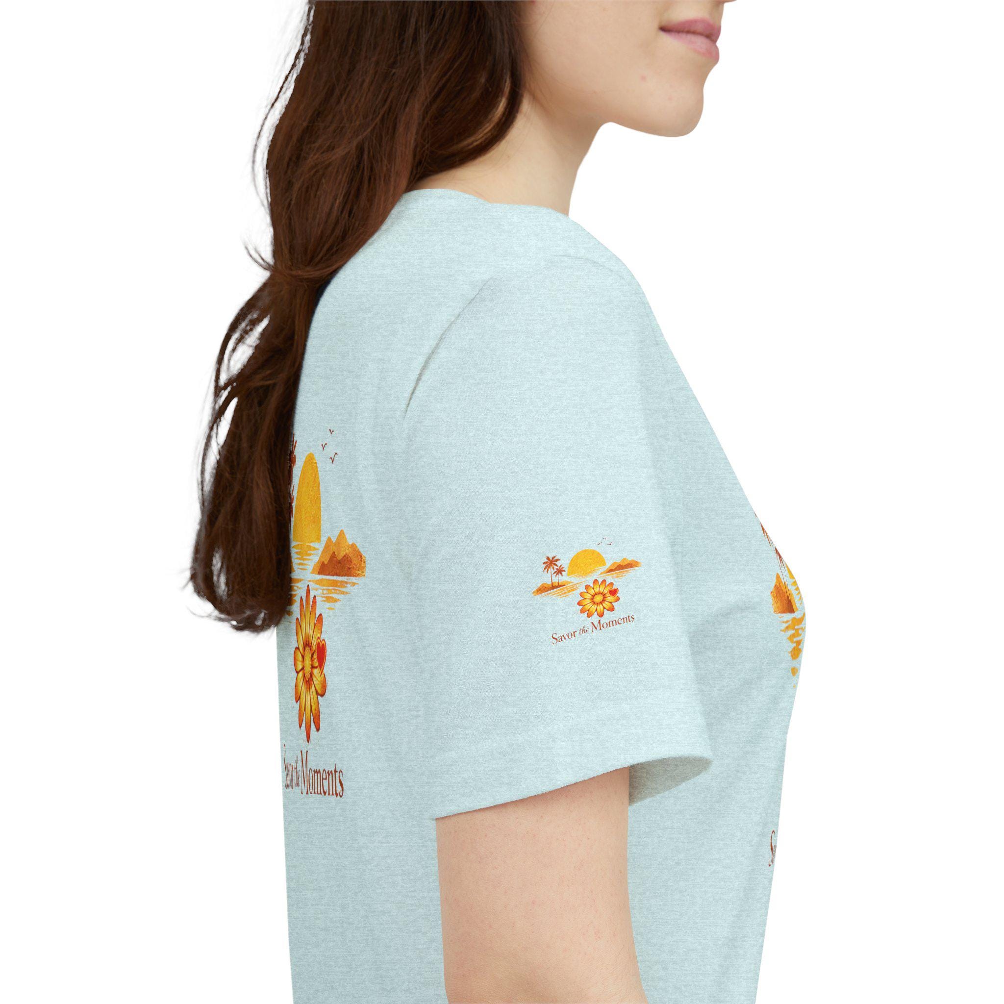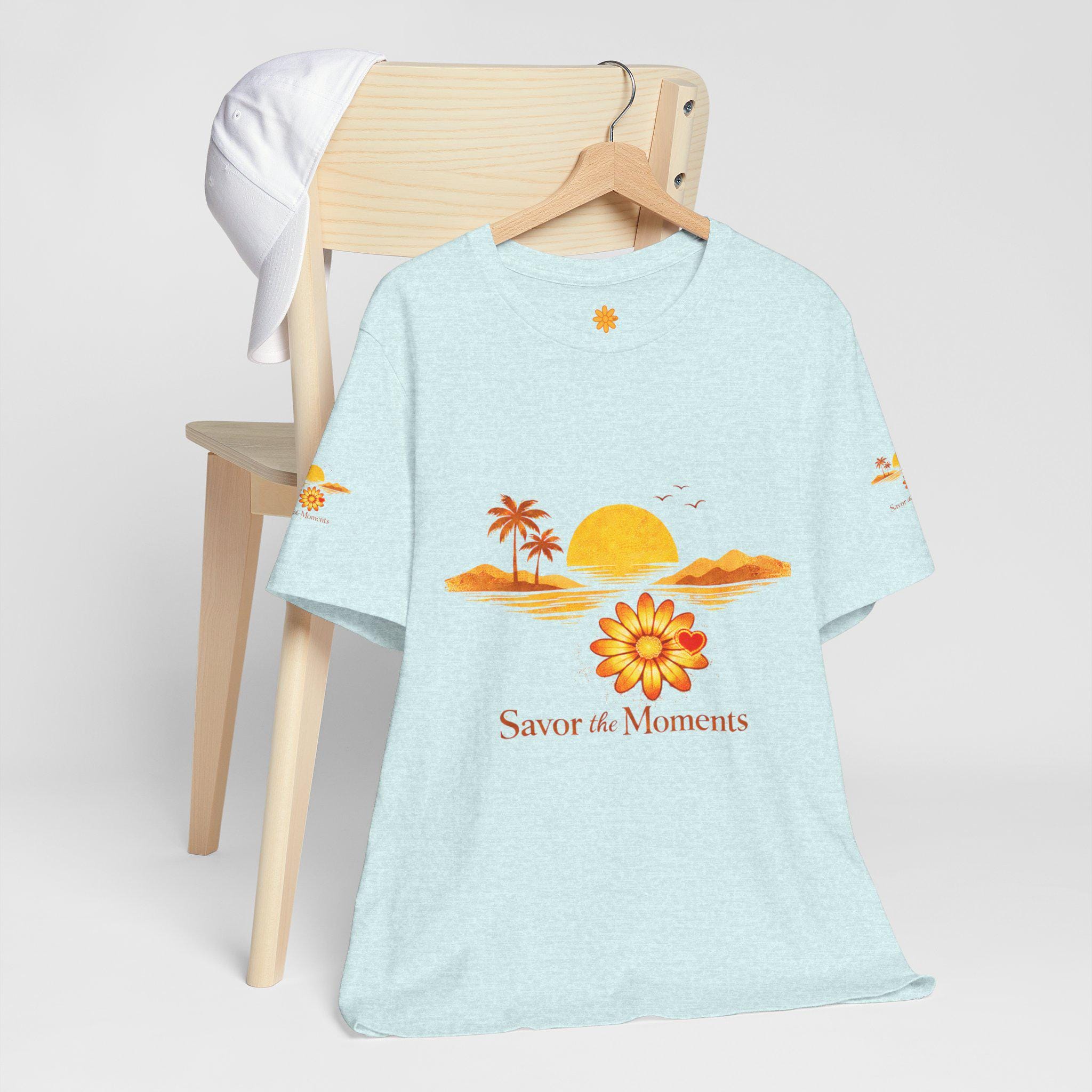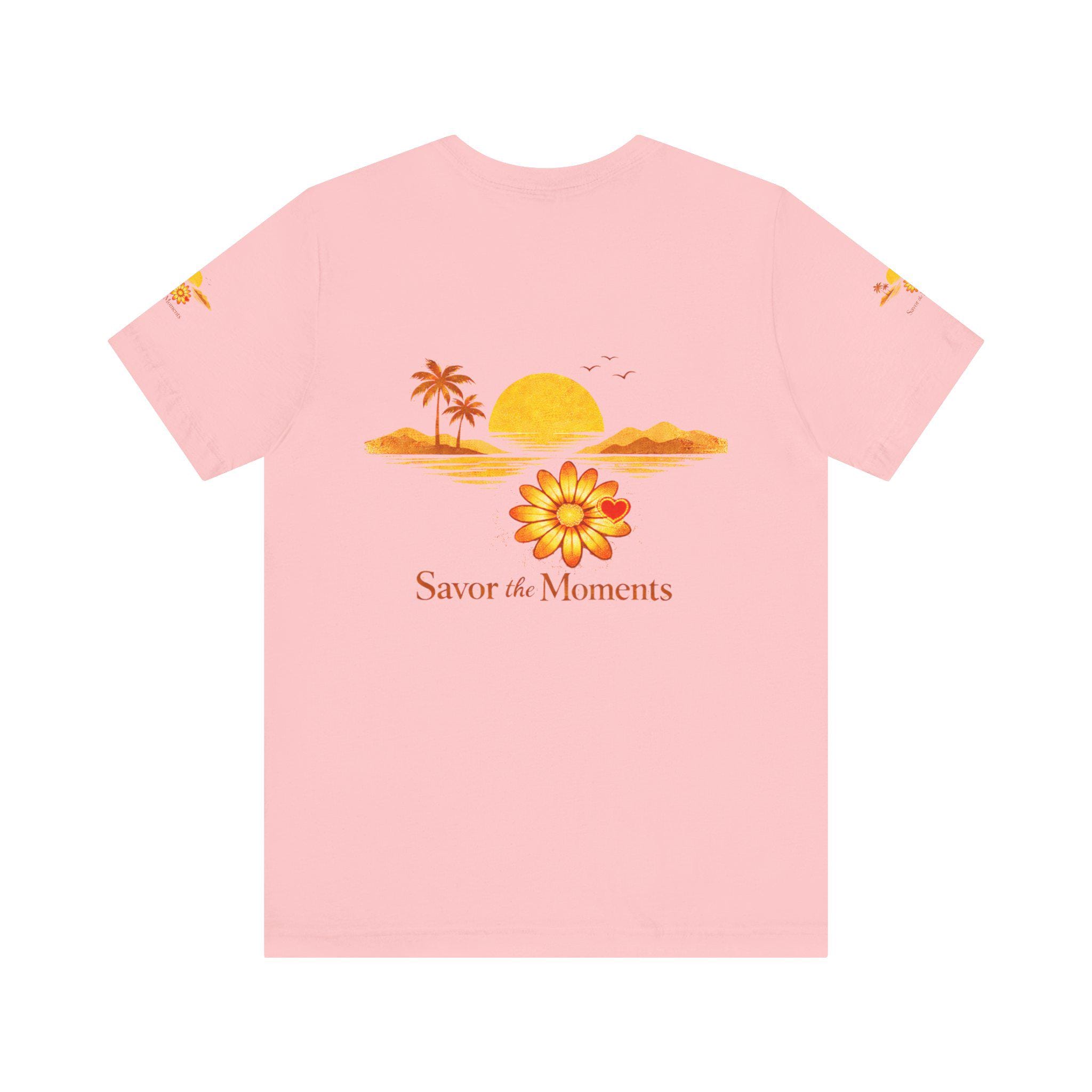 Breathe in the slow warmth of a late afternoon on the coast. This lightweight jersey tee captures a mellow sunset—golden sun, palm silhouettes, and a simple floral accent—paired with the gentle reminder: Savor the Moments. It sits neatly at the crew neck and falls with a relaxed retail fit, layering easily under jackets or worn solo while wandering boardwalks, picnicking by the water, or lounging at home. Thoughtful details like side seams, ribbed knit collar, and shoulder tape keep the shape soft but structured. Made from breathable Airlume combed and ring-spun cotton with a tear-away label for extra comfort, it’s crafted in ethically audited facilities. Reach-certified and adult-sized, the shirt’s warm palette and calm vibe invite slow afternoons and easy conversations.