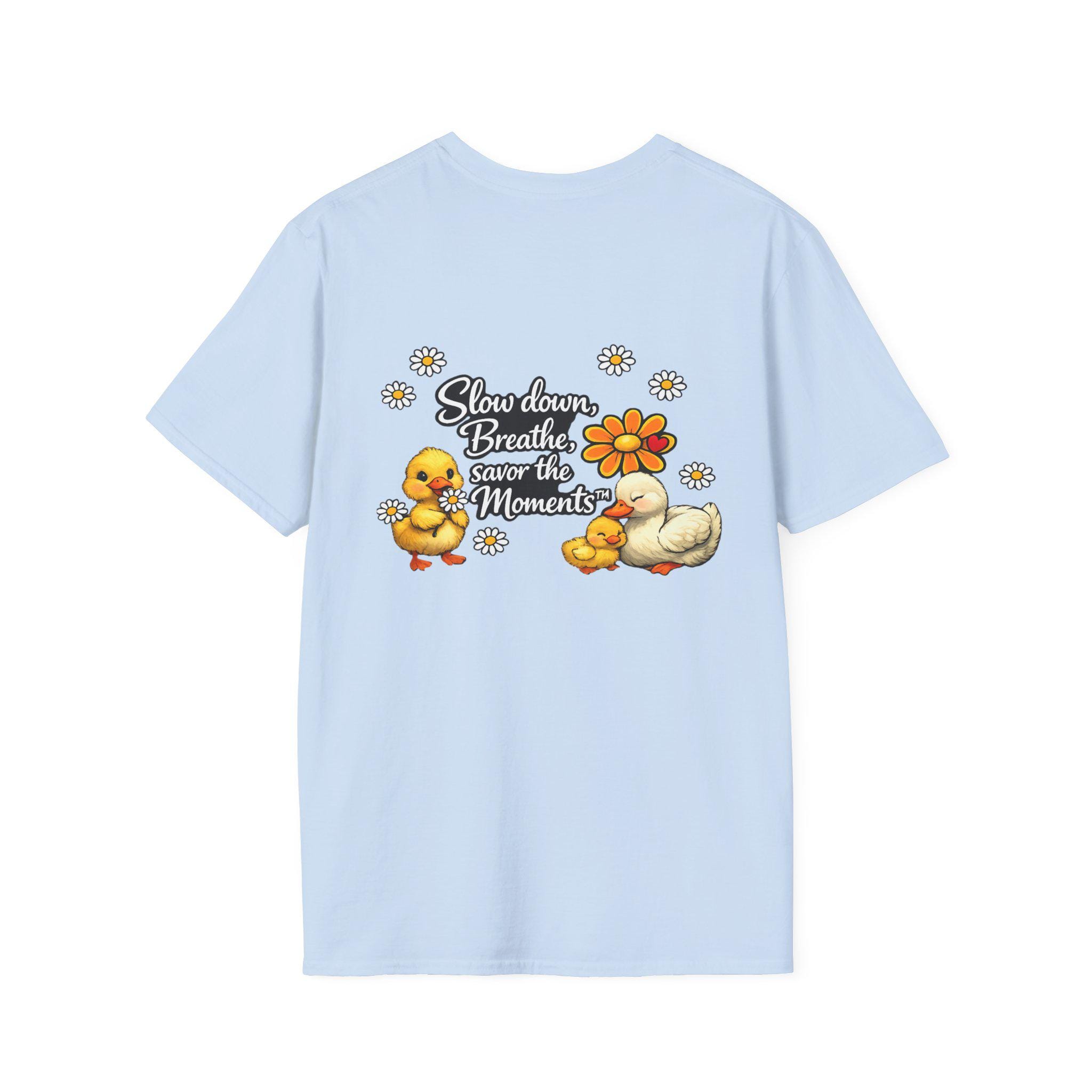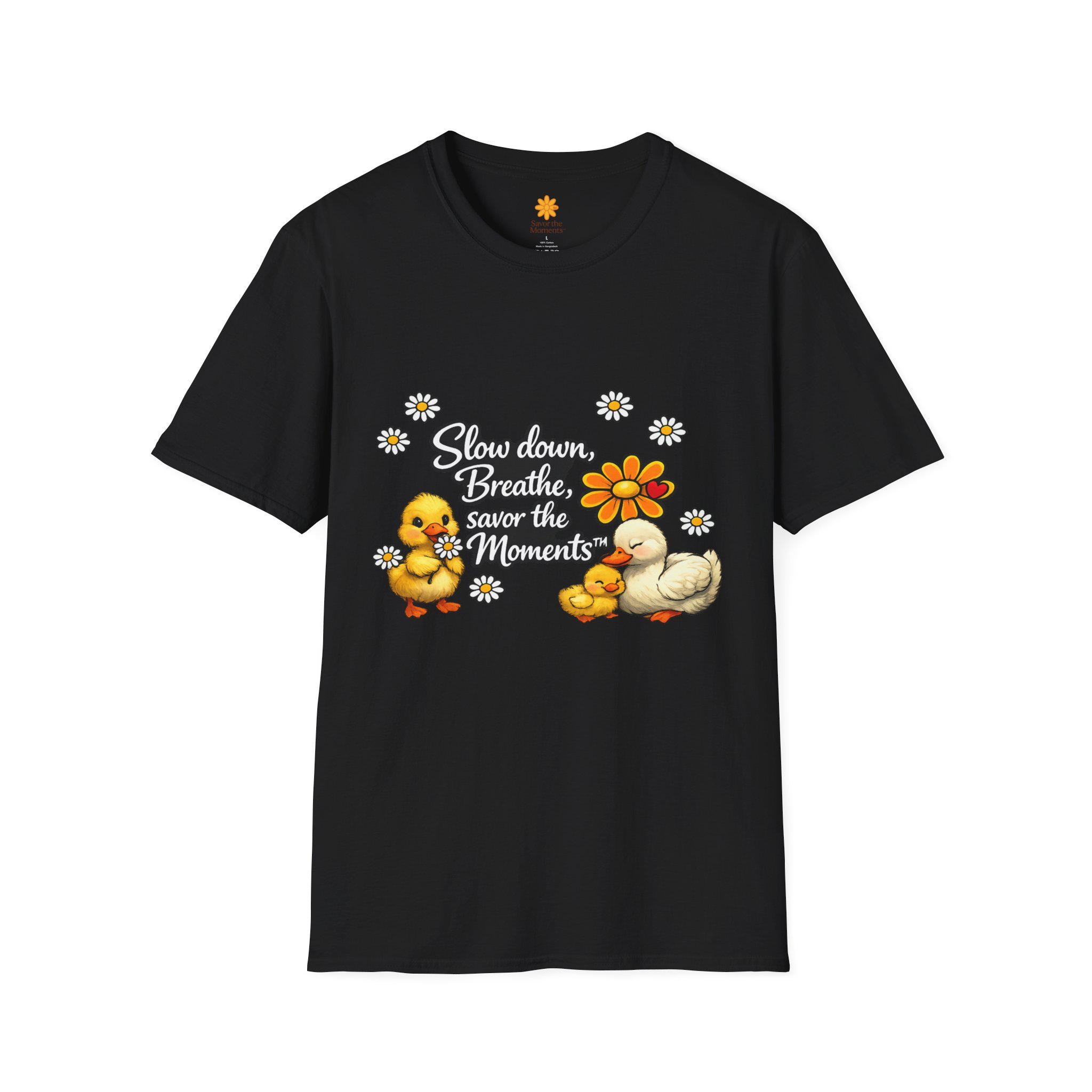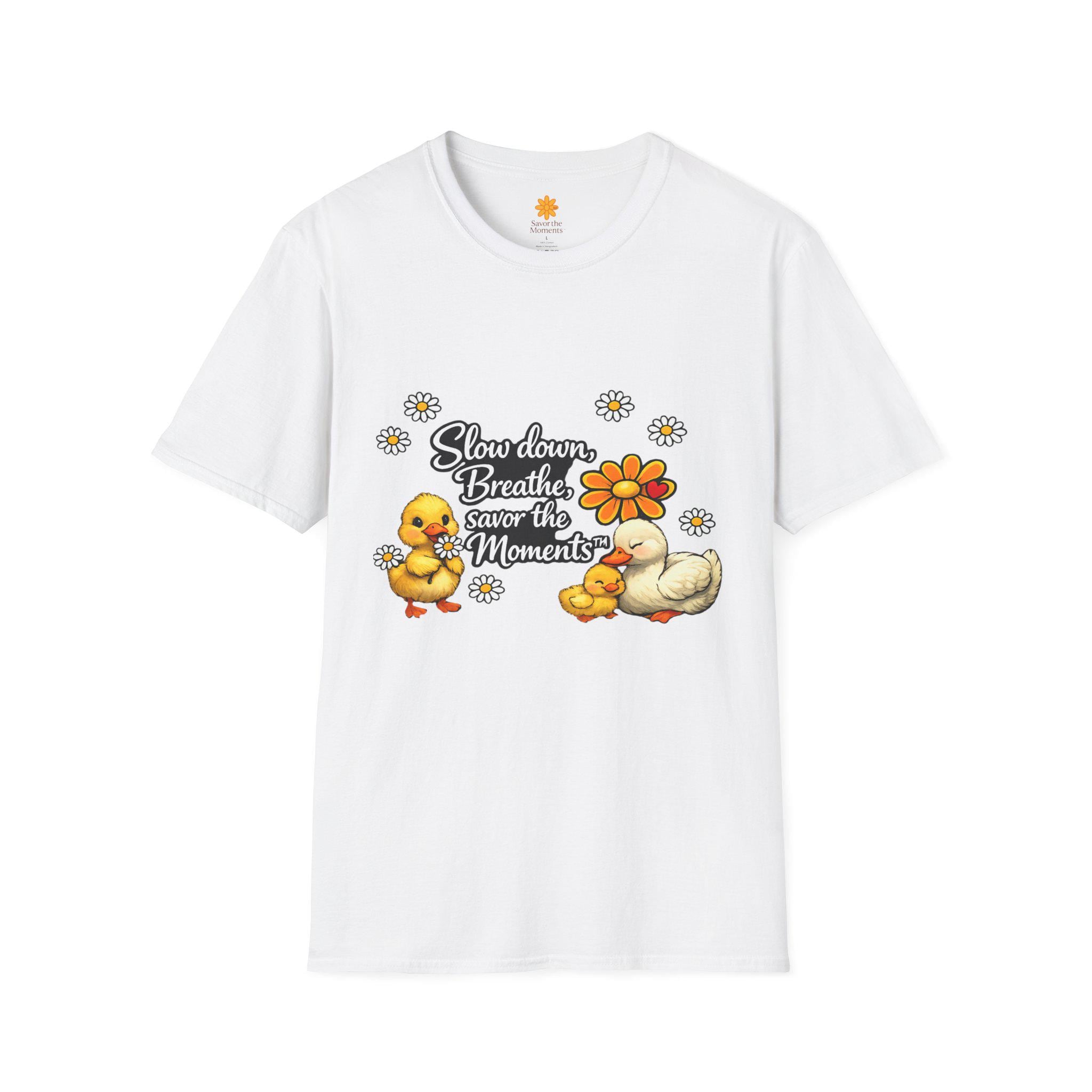 Duck & Daisies, Slow Down Breathe Savor the Moments Duck Family T-Shirt | Daisy Floral Design.