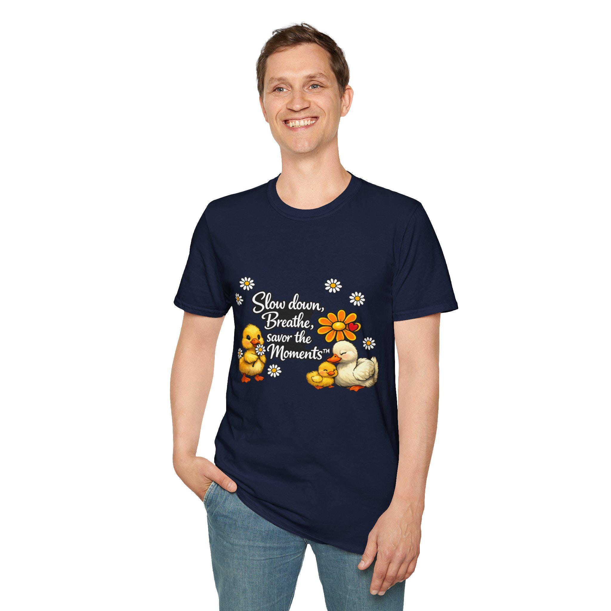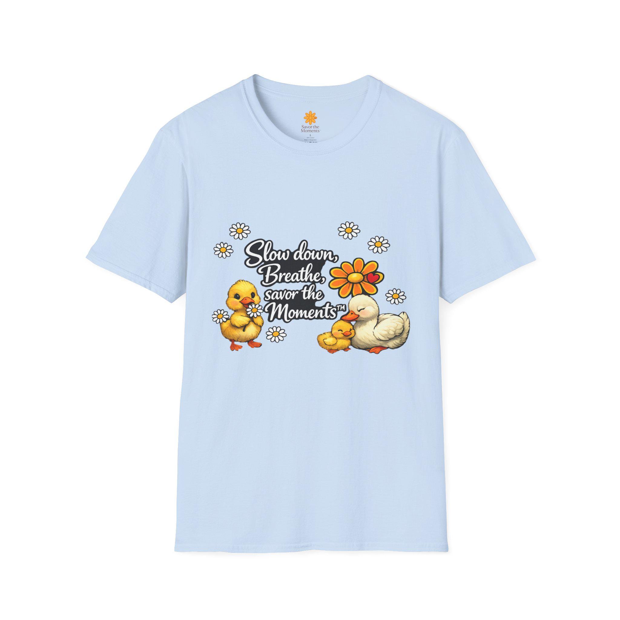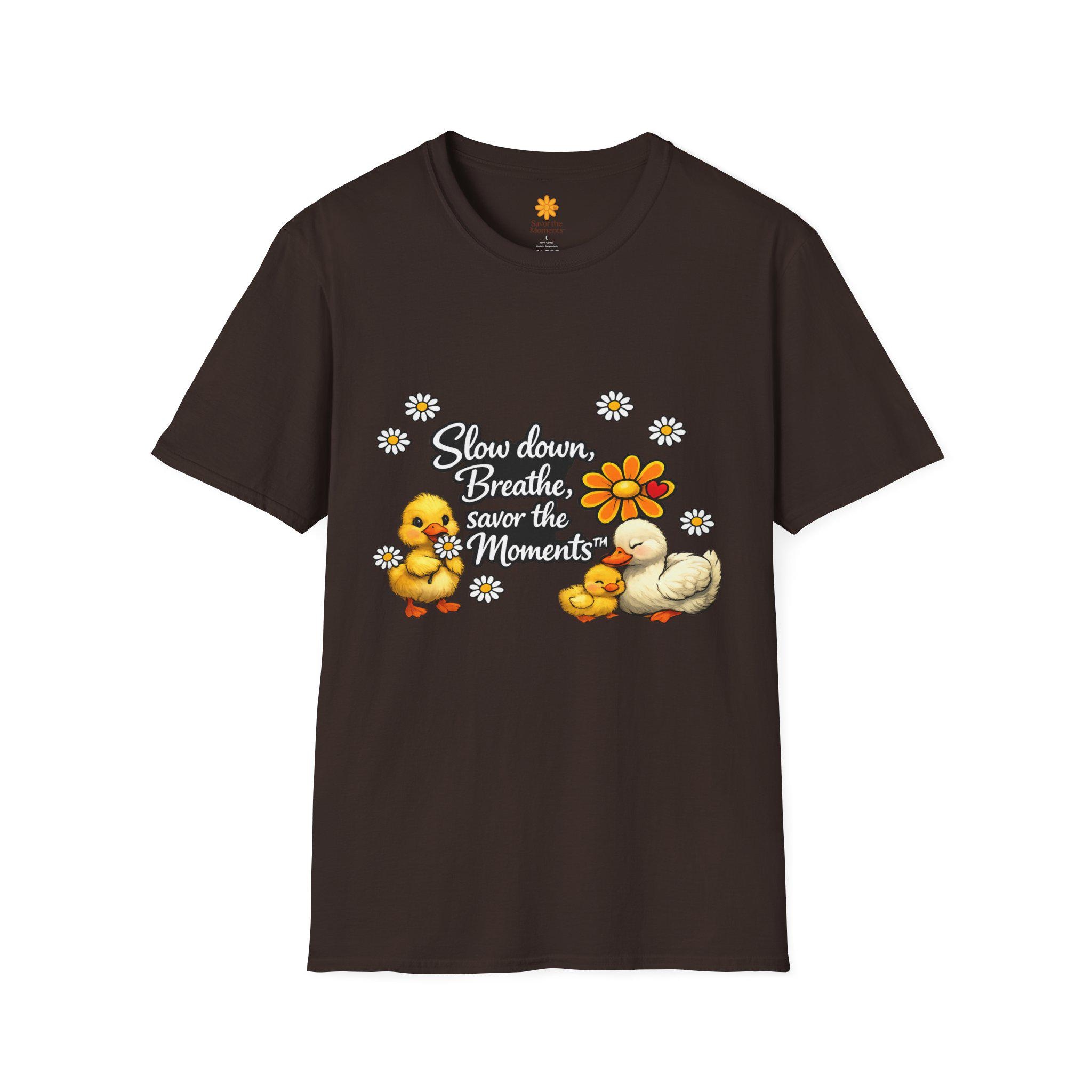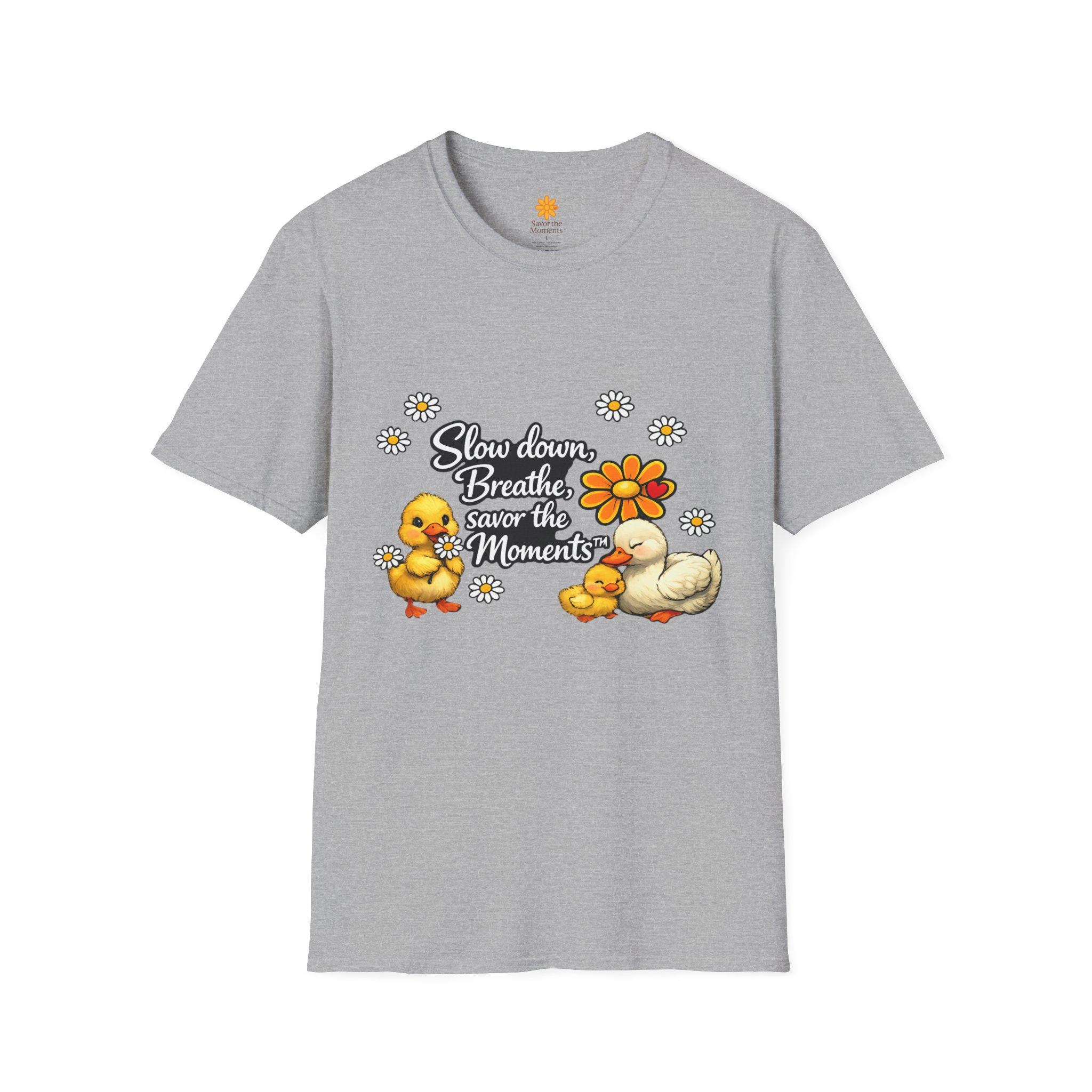 Duck & Daisies, Slow Down Breathe Savor the Moments Duck Family T-Shirt | Daisy Floral Design.