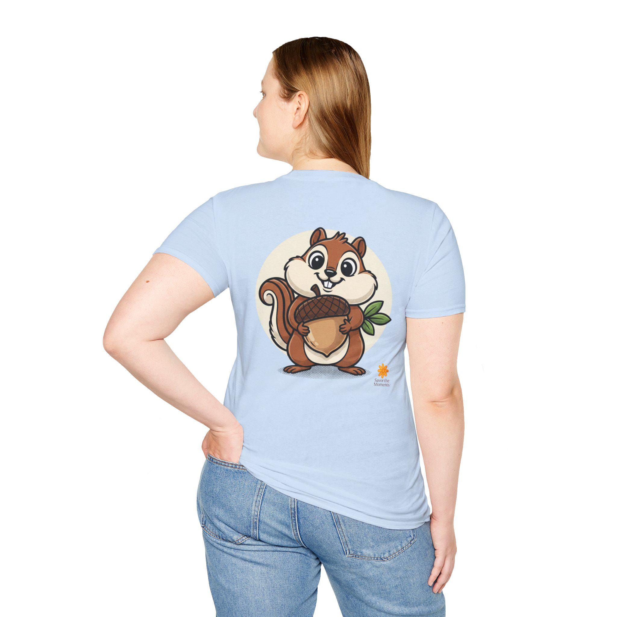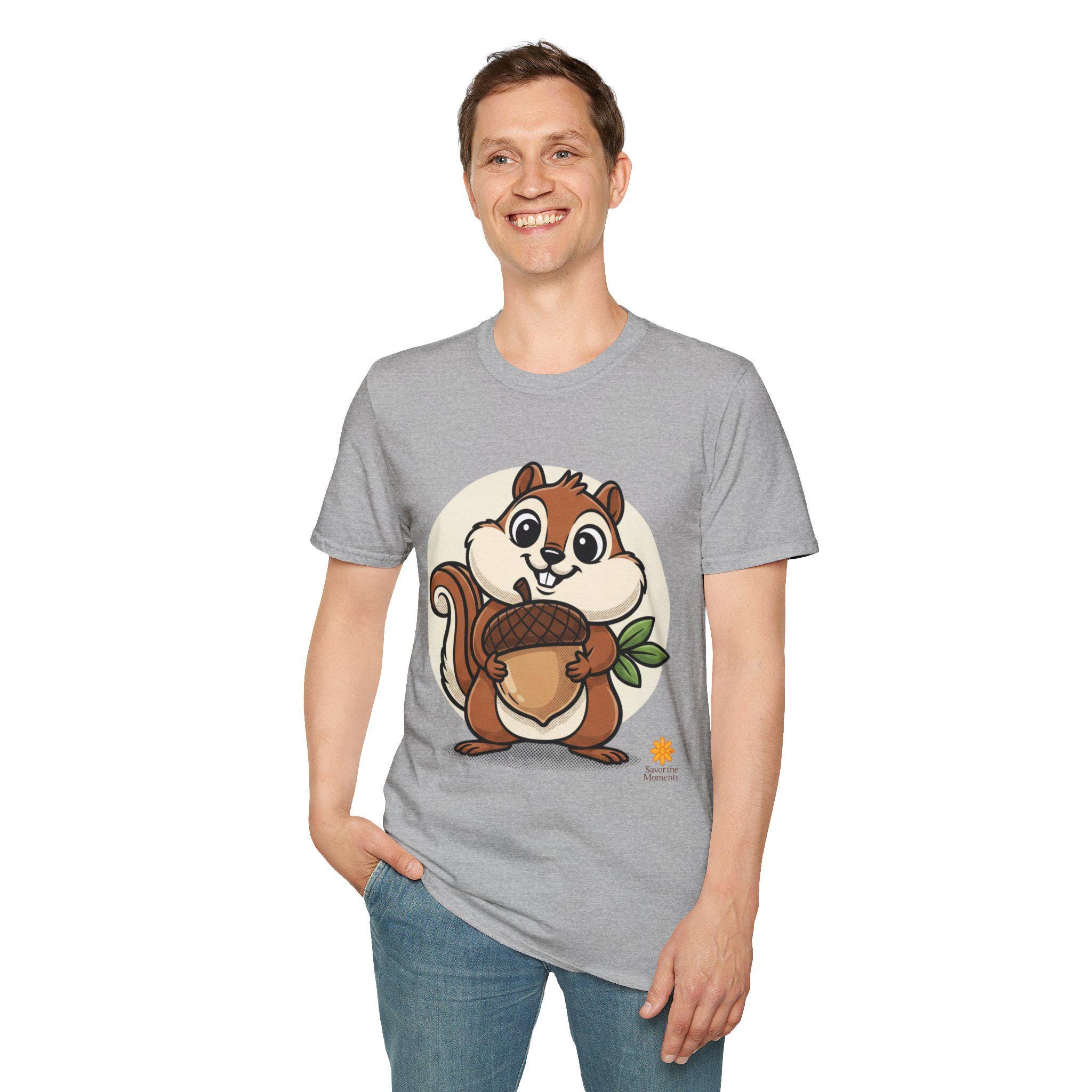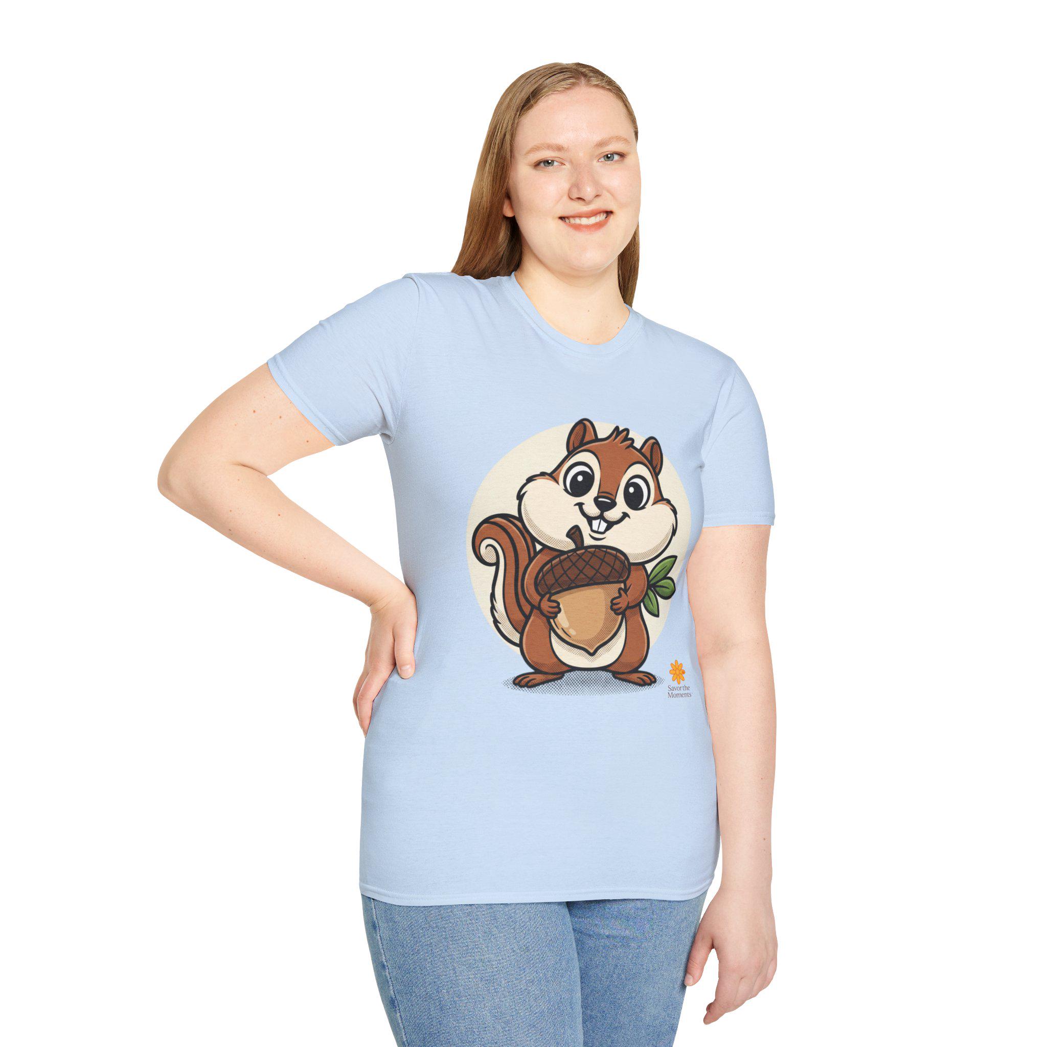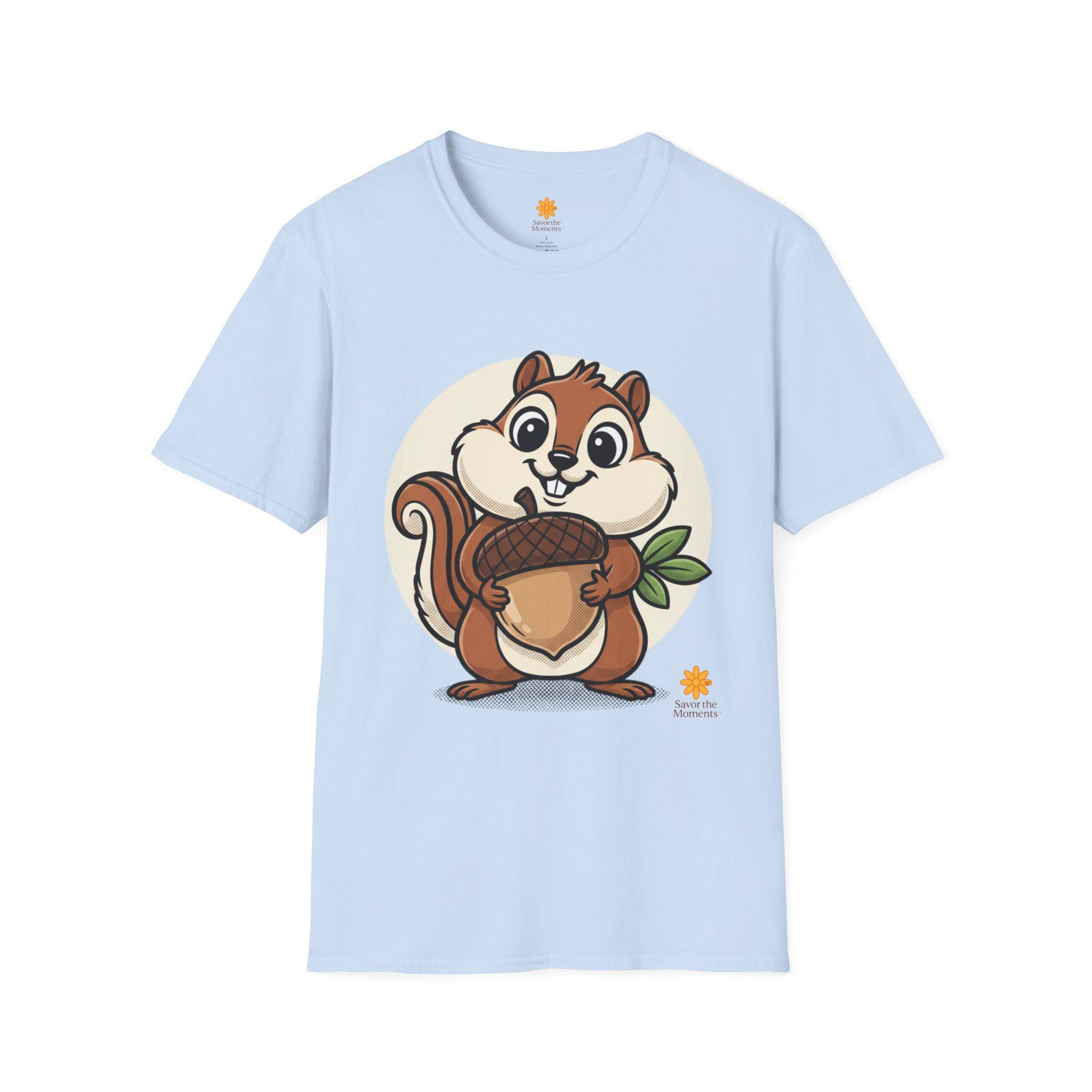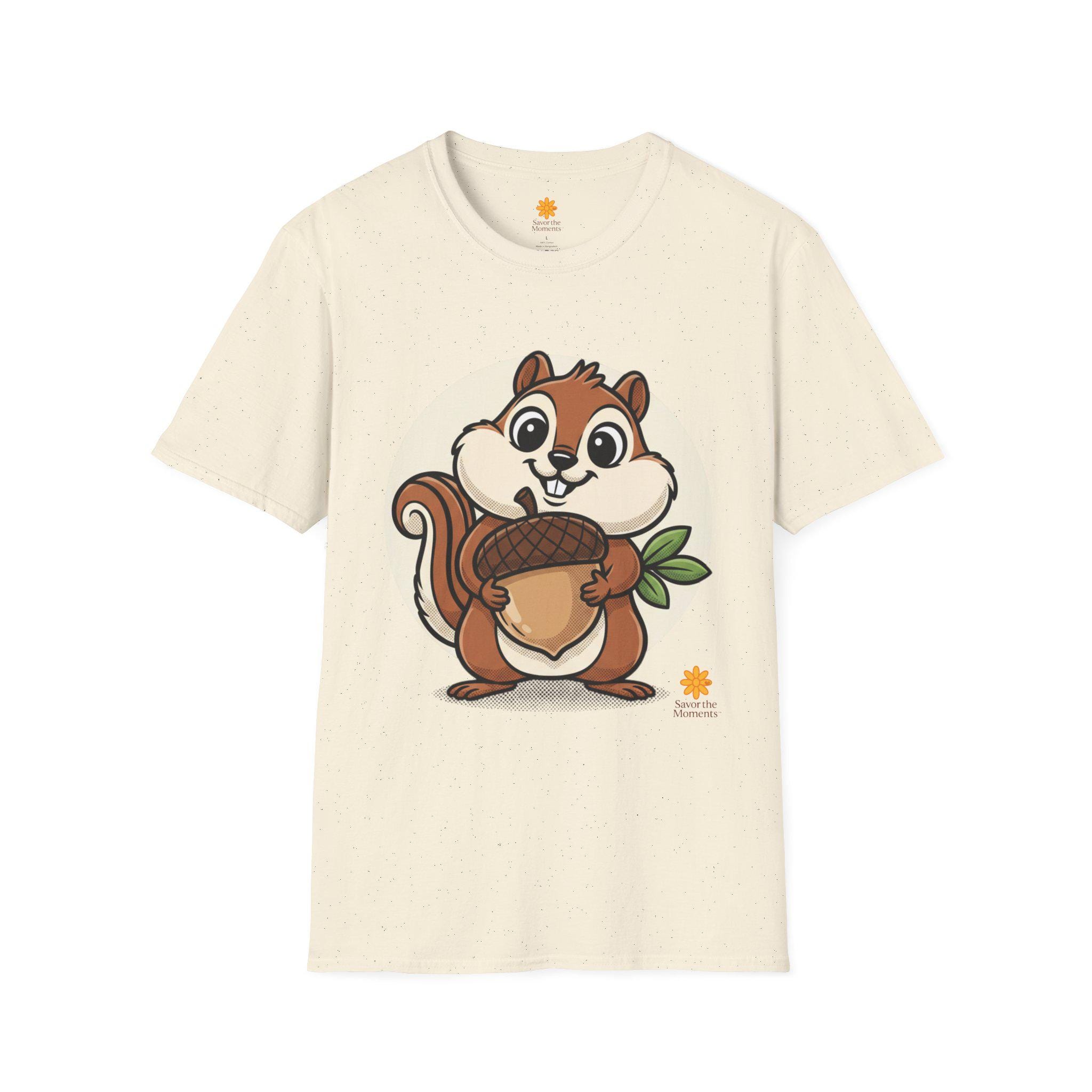 Cartoon Chipmunk Acorn T-Shirt | Woodland Animal Graphic Tee