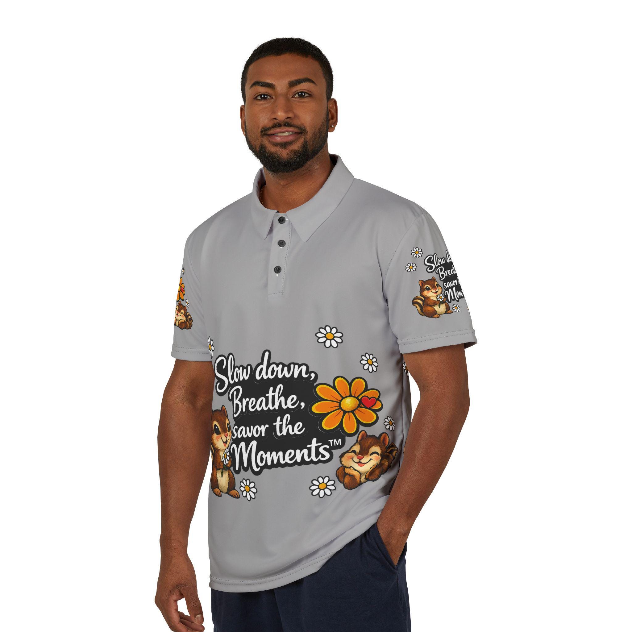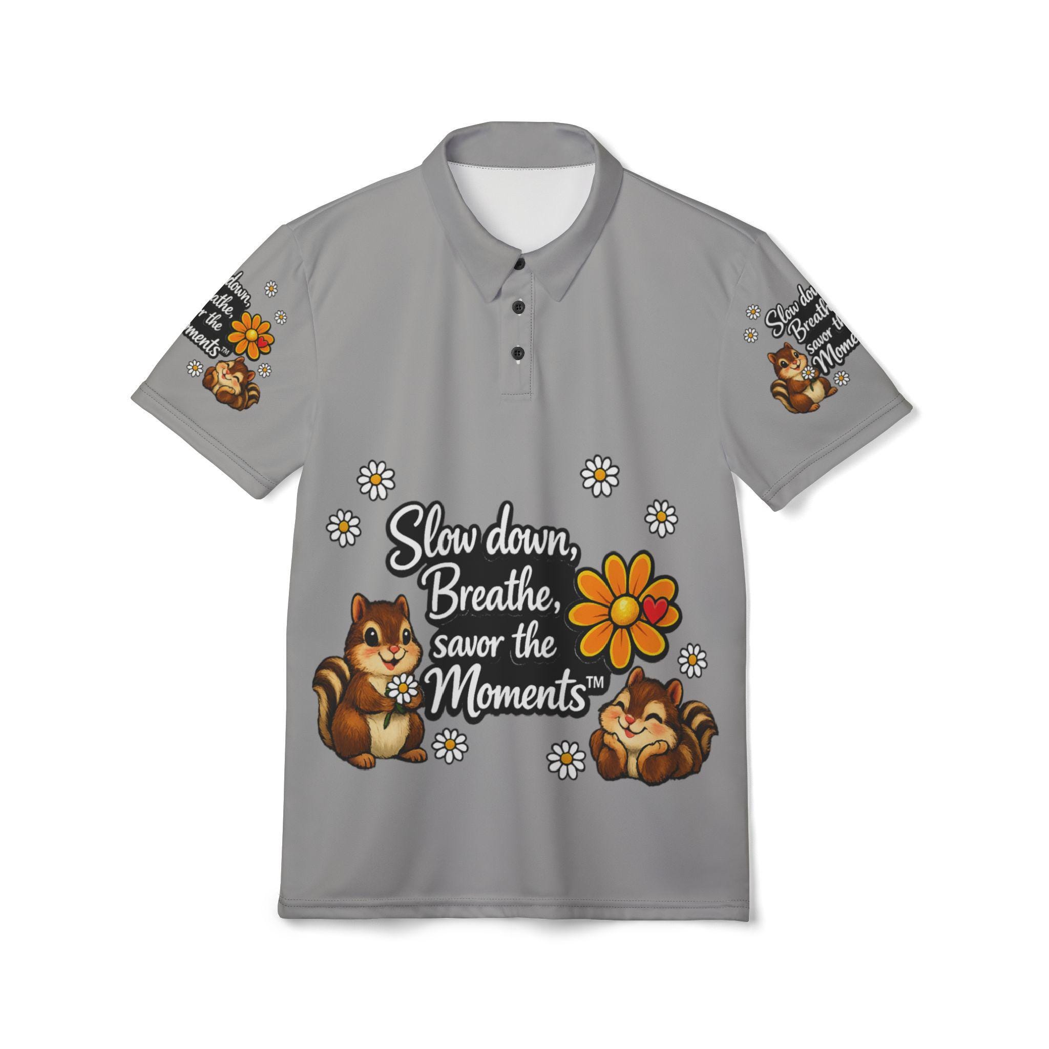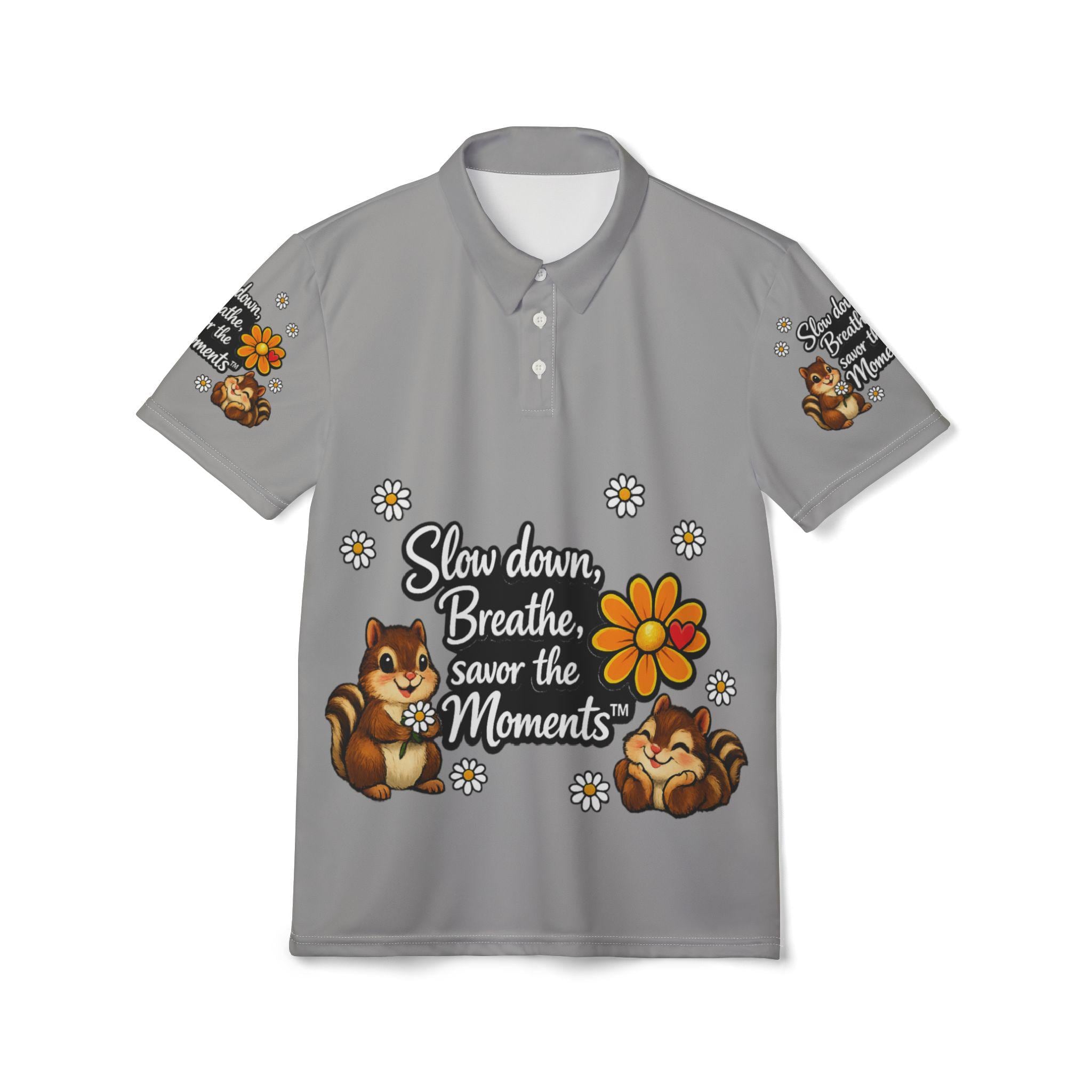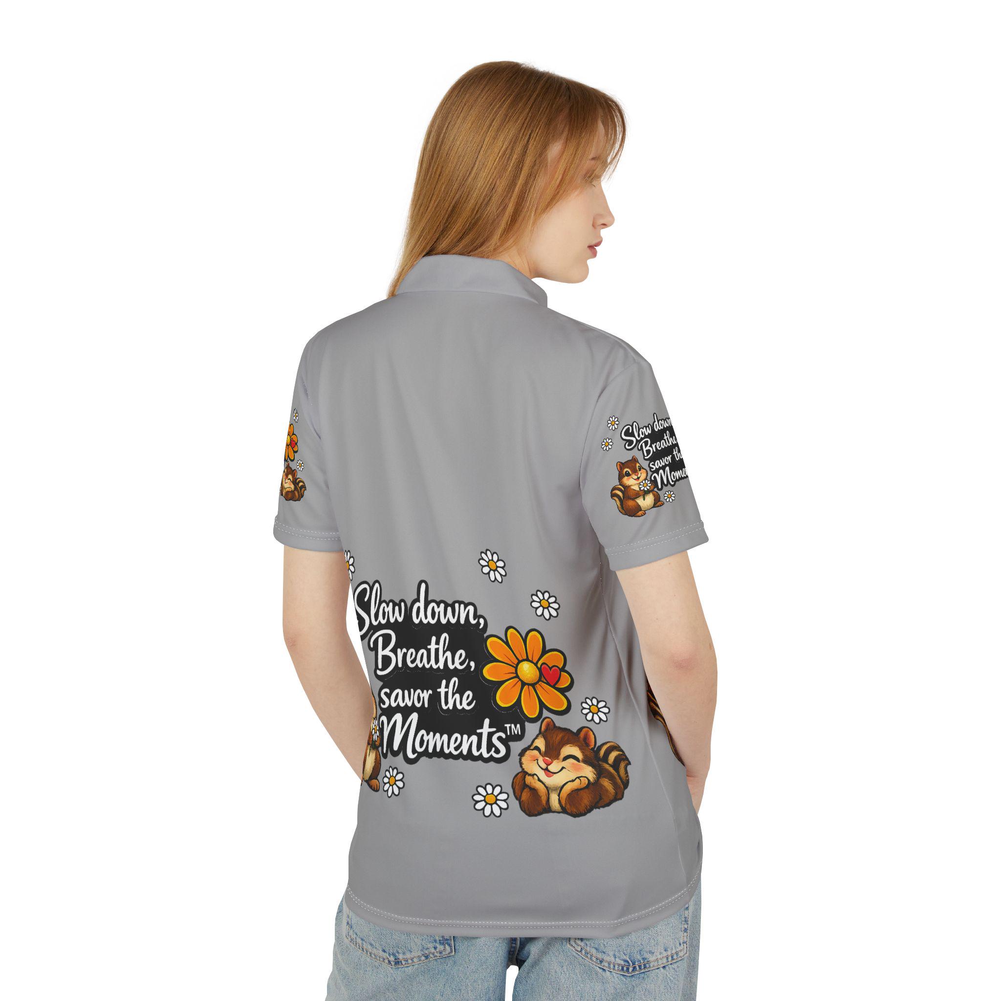 Cartoon Chipmunks, Unisex Polo Shirt (AOP), Savor the Moments Quote