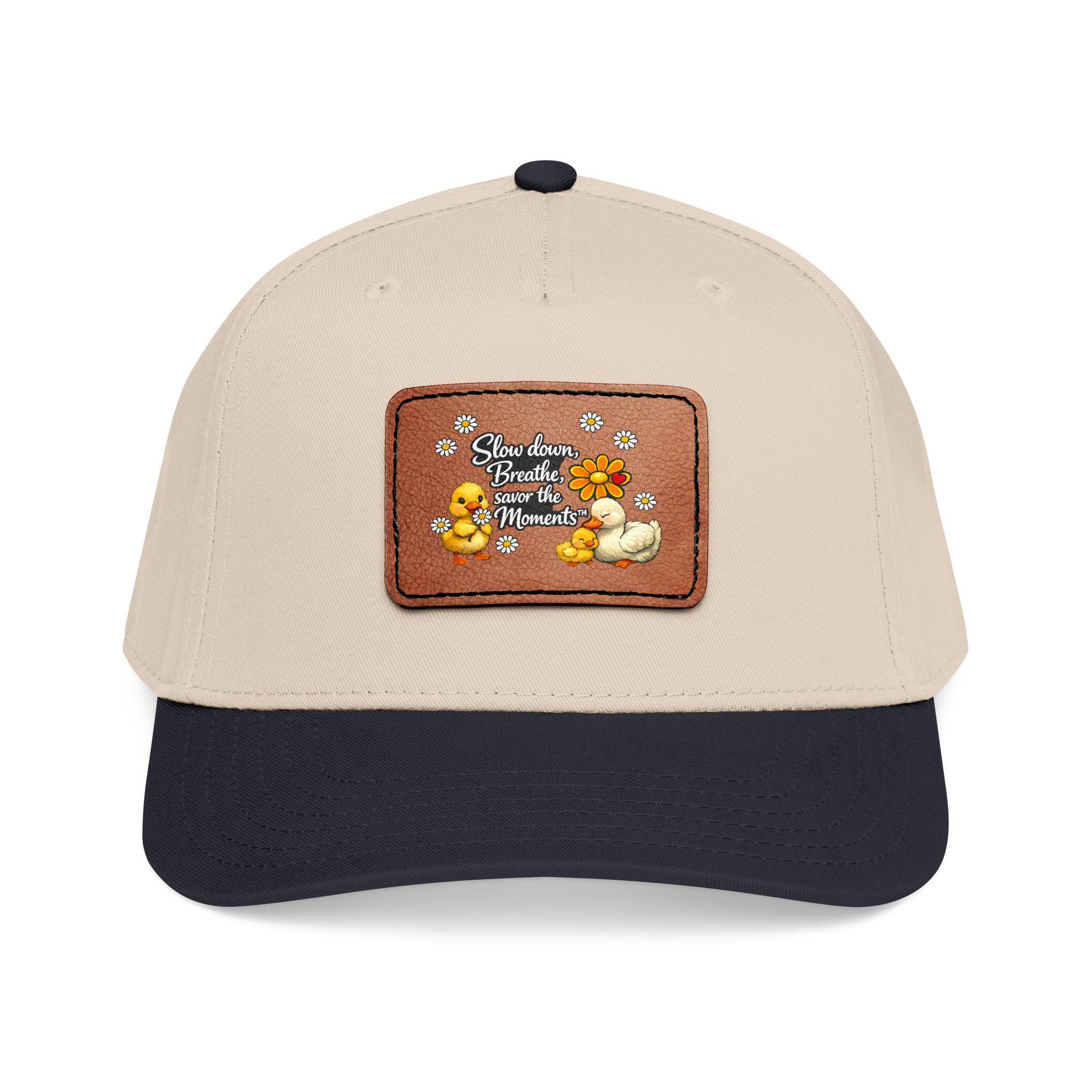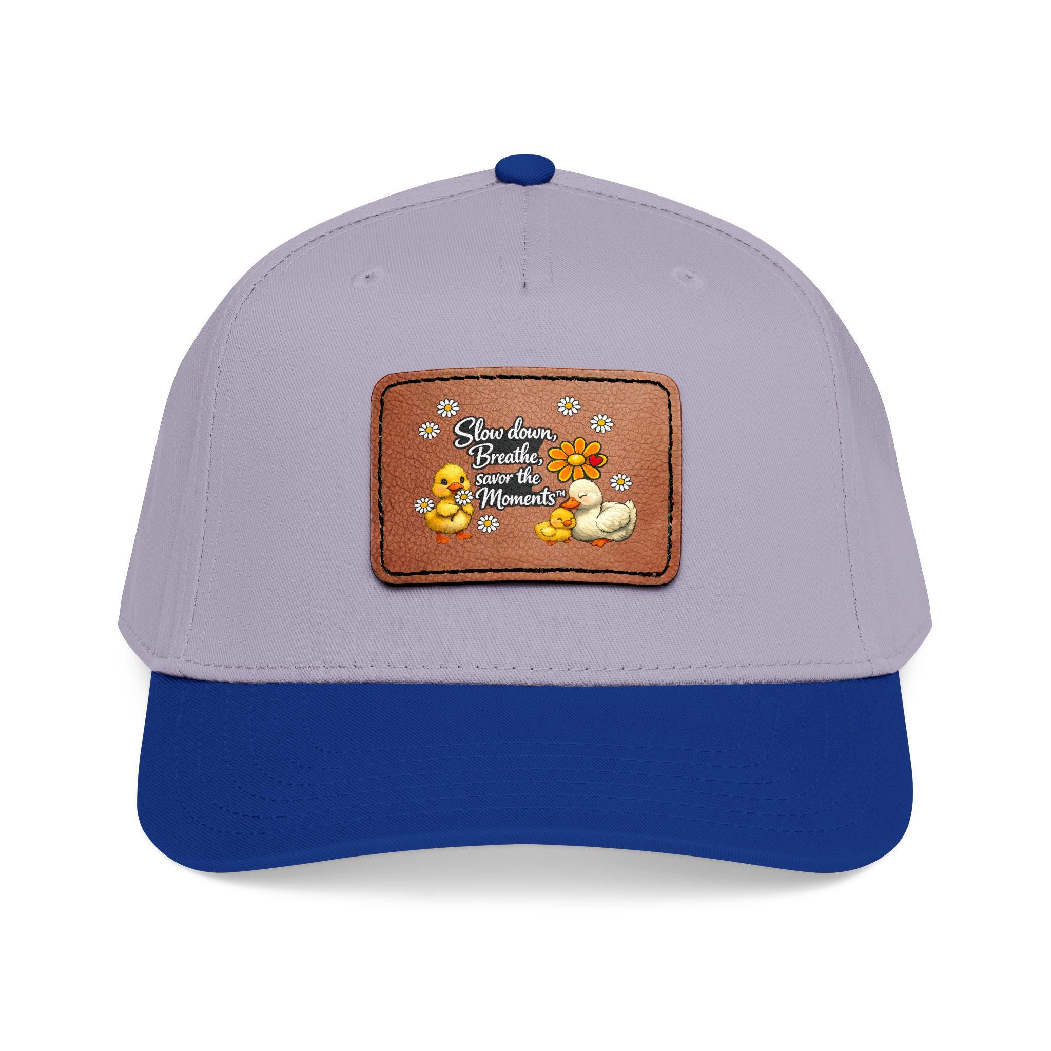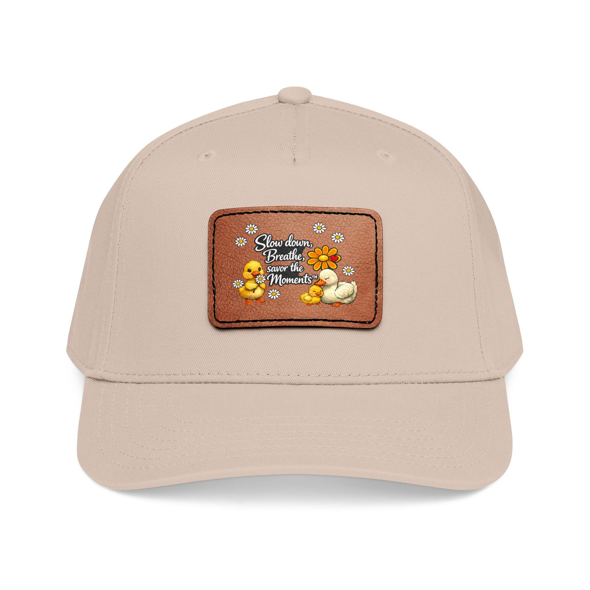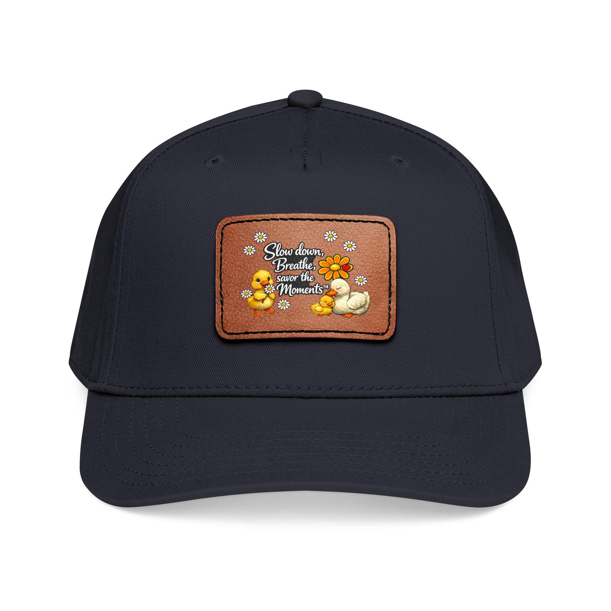 Cute Duck Floral Patch Mid Profile Baseball Cap | Leather Rectangle Patch