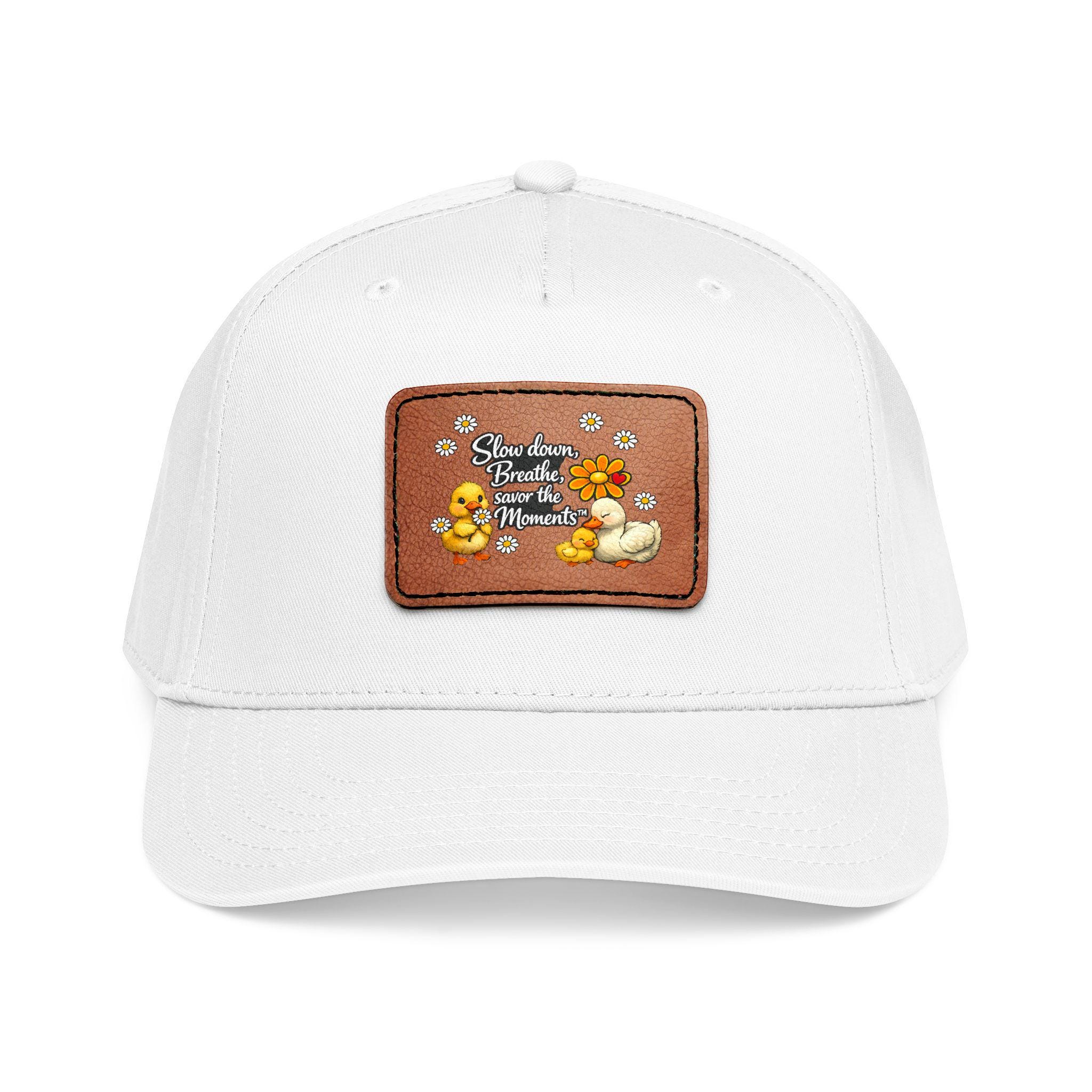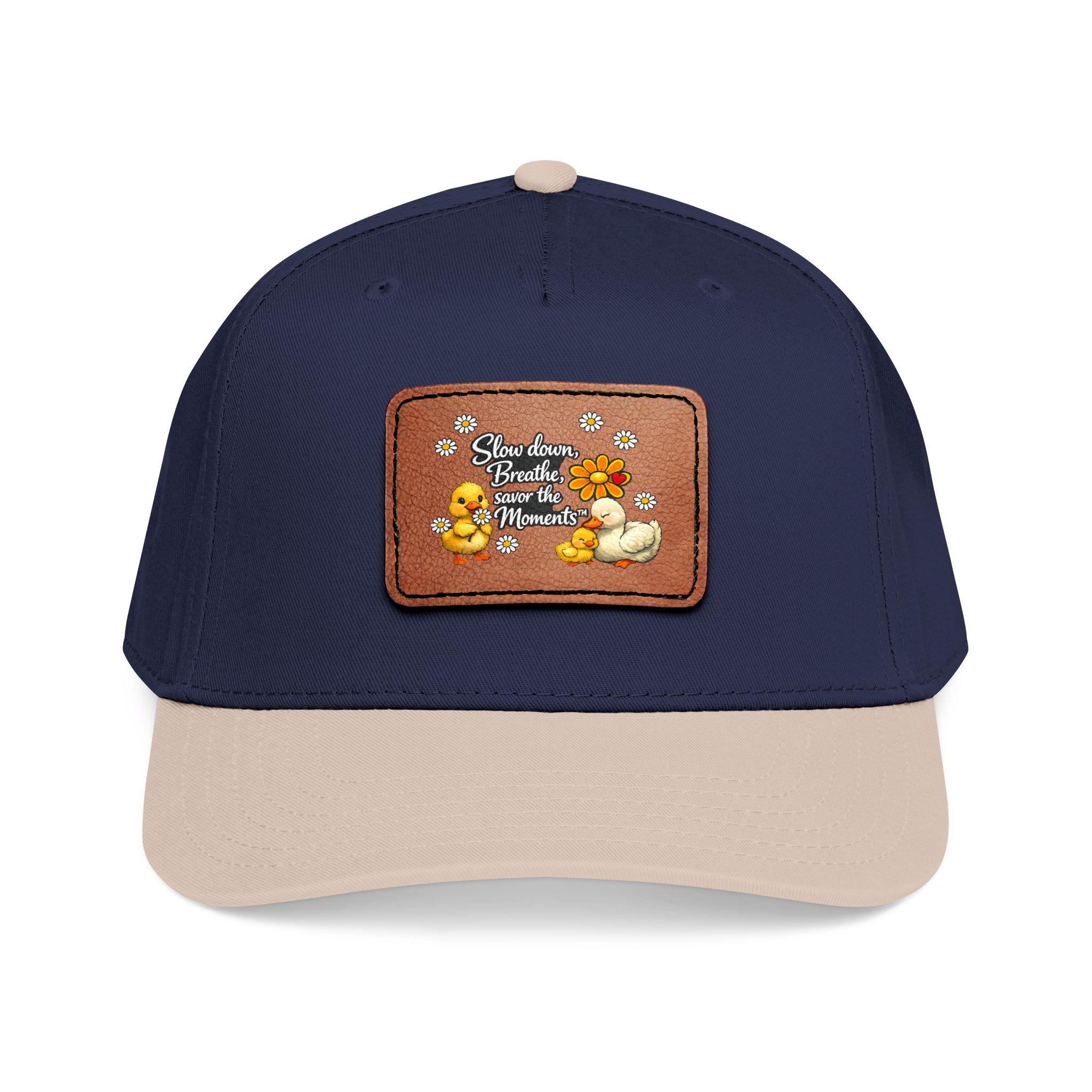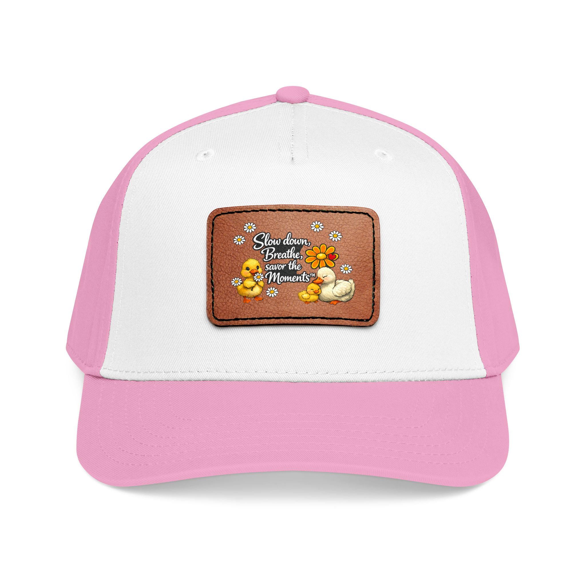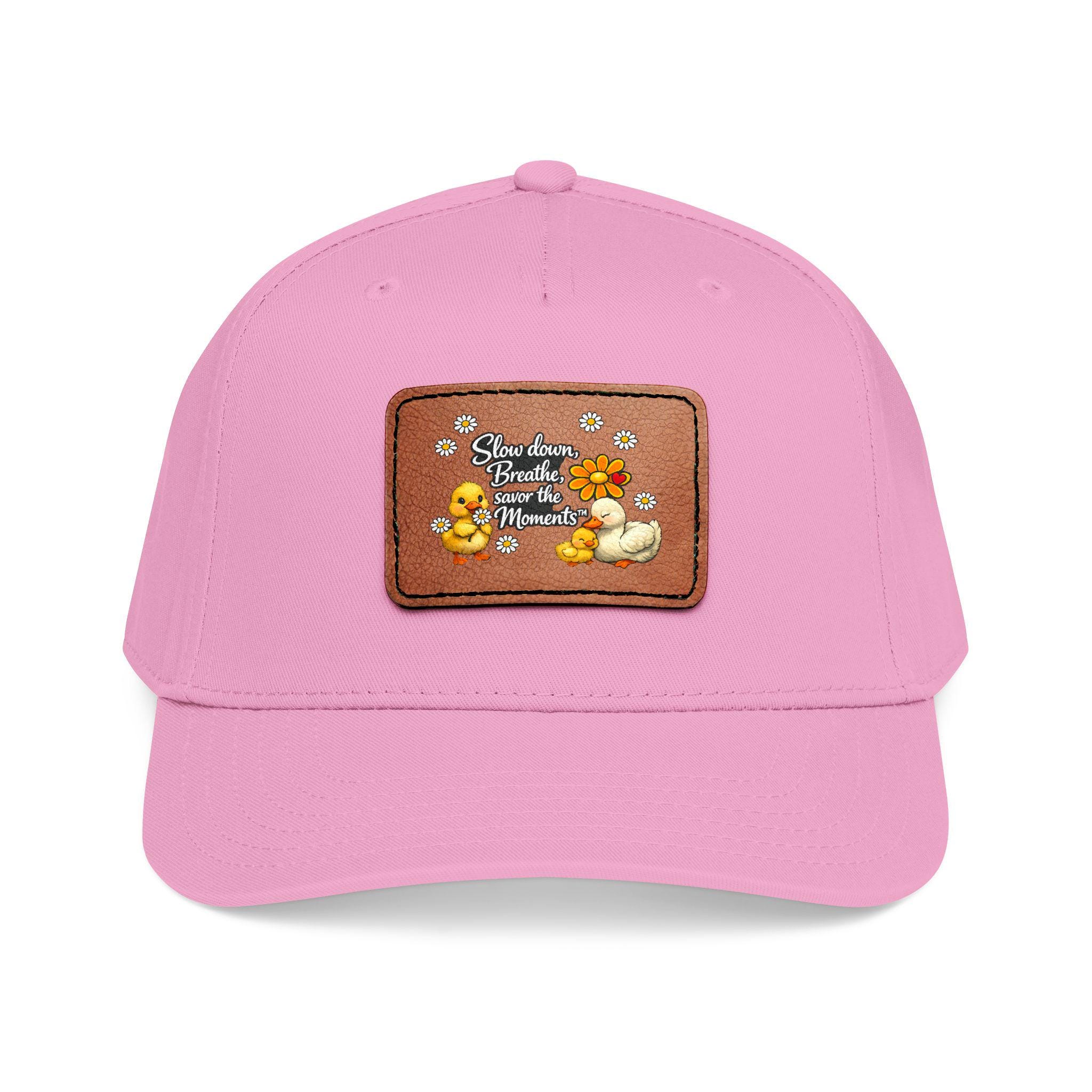Cute Duck Floral Patch Mid Profile Baseball Cap | Leather Rectangle Patch