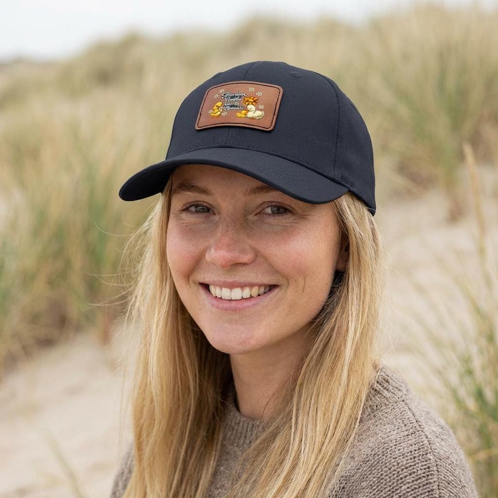A mid-profile, five-panel cap that blends casual comfort with a warm, vintage-inspired aesthetic. The structured silhouette and seamless front panel keep the look clean, while a light brown vegan leather patch stitched to the front adds a handcrafted, nostalgic touch. Soft matching undervisor and sweatband make it comfortable for long wear; a durable snap closure lets you adjust the fit quickly. This cap pairs well with outdoorsy weekends, backyard gatherings, or everyday errands when you want a subtle, homespun accent to your outfit.