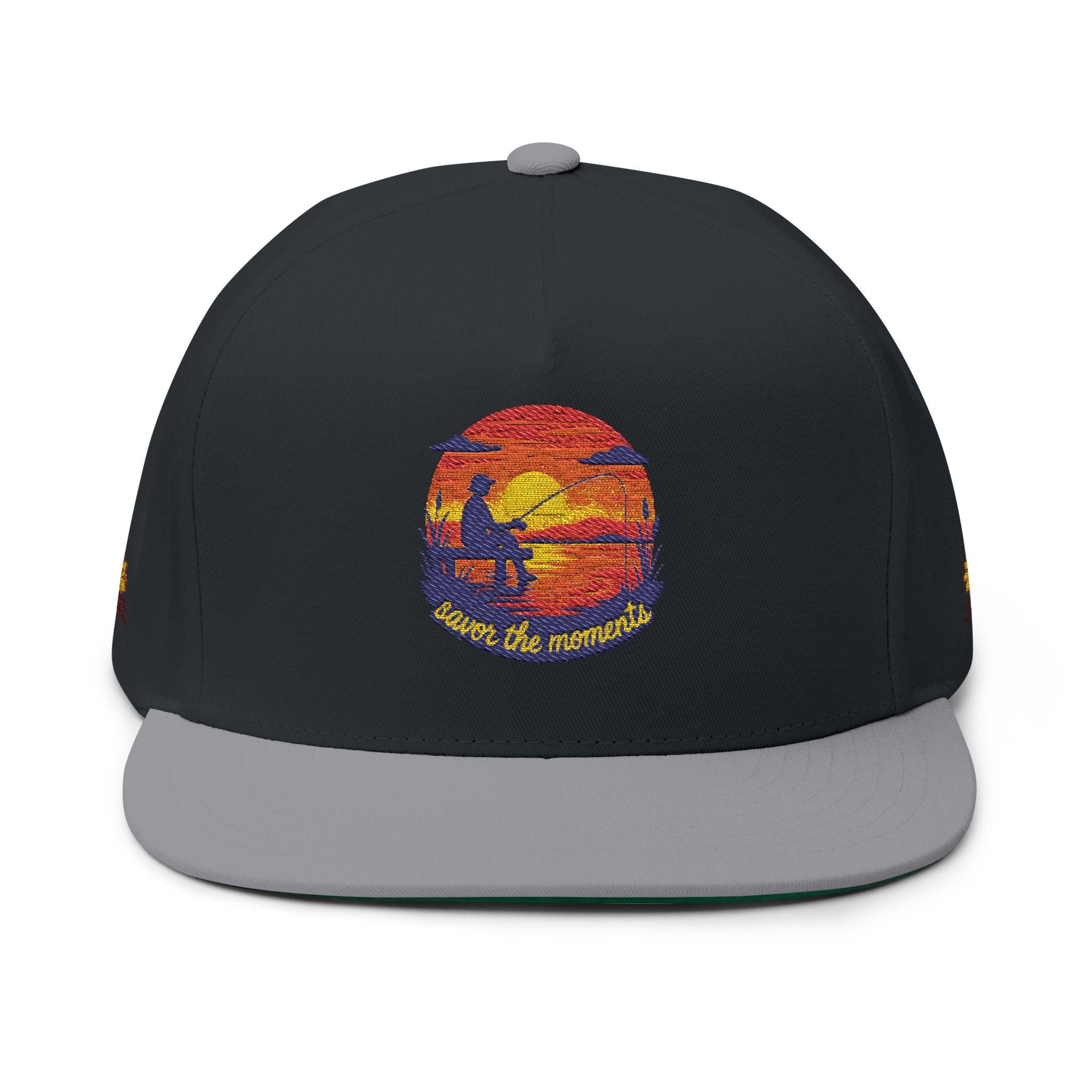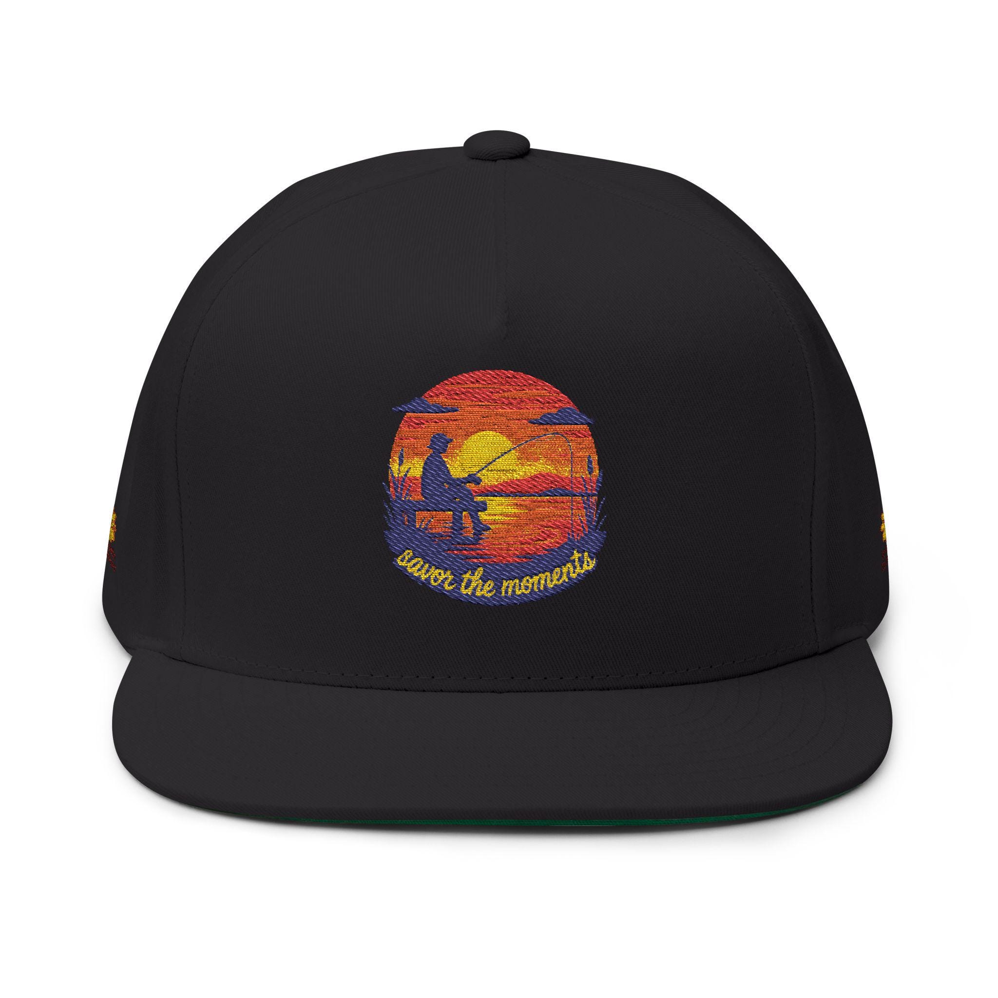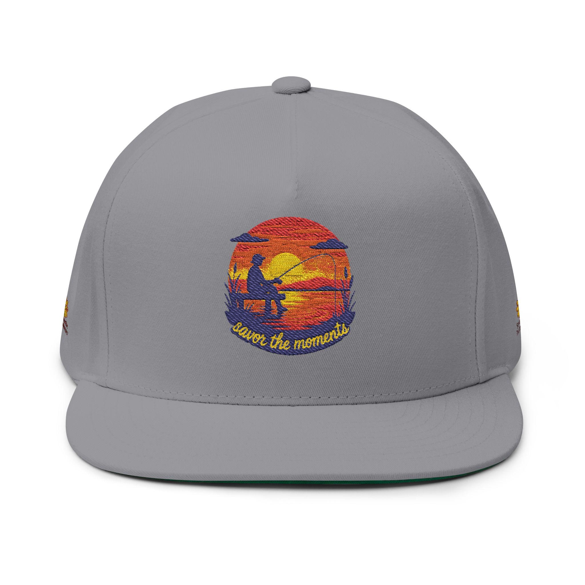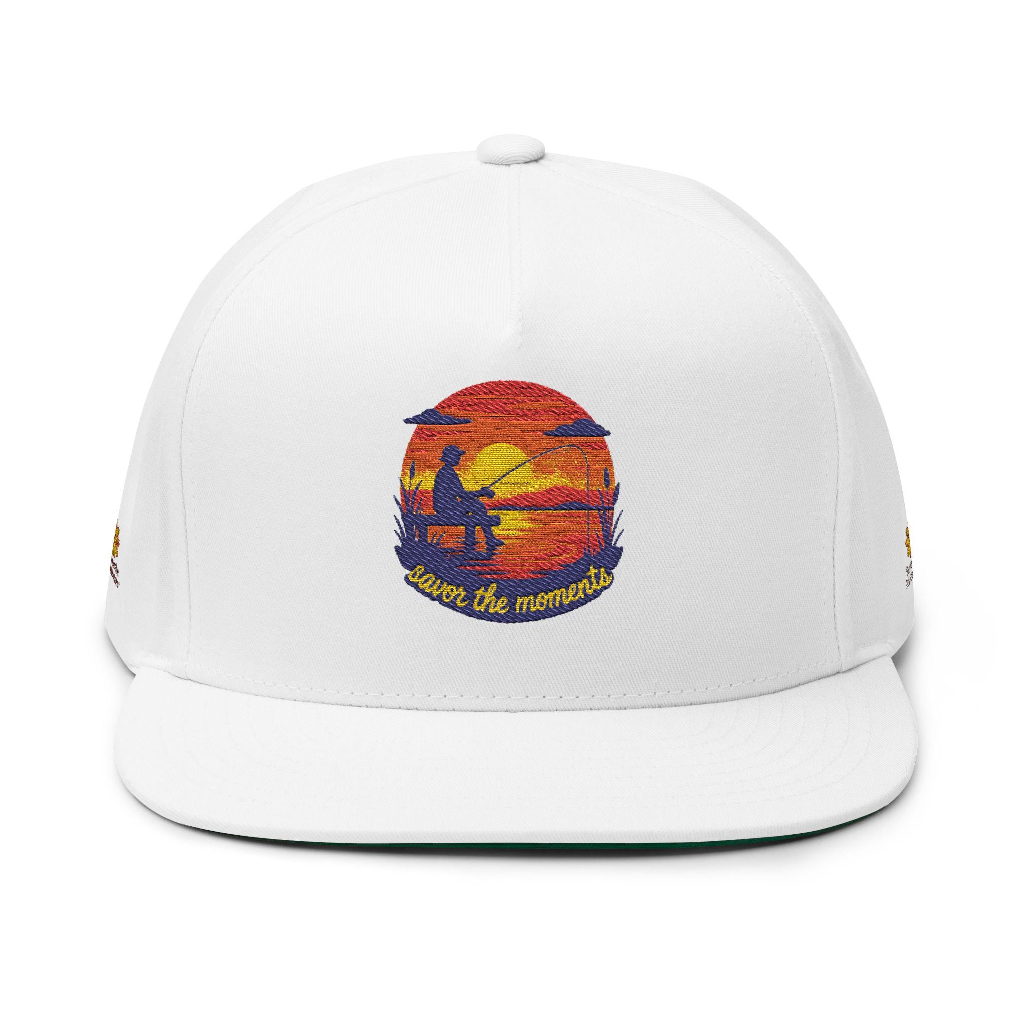 Fishing Pier Flat Bill Cap | Embroidered Sunset Design
