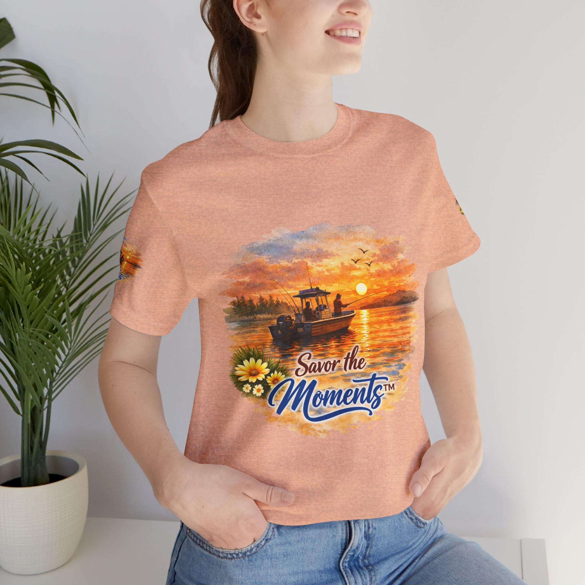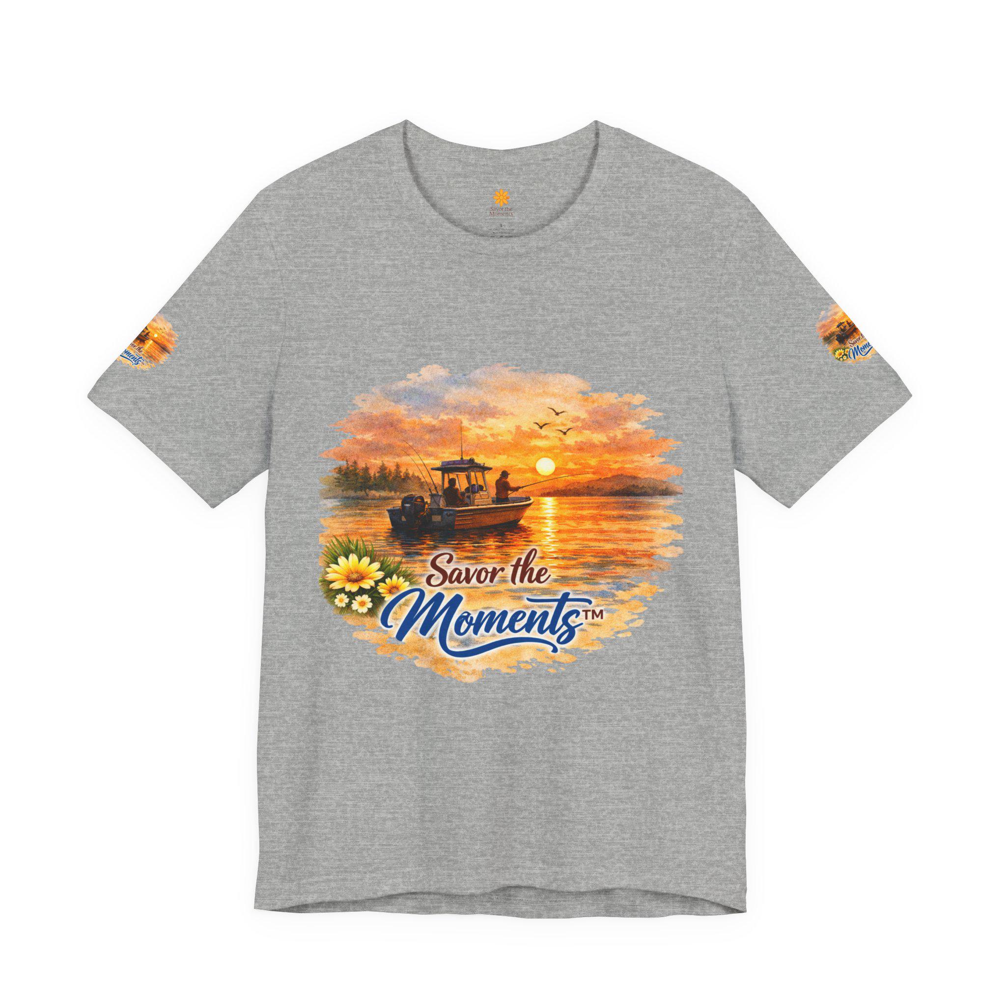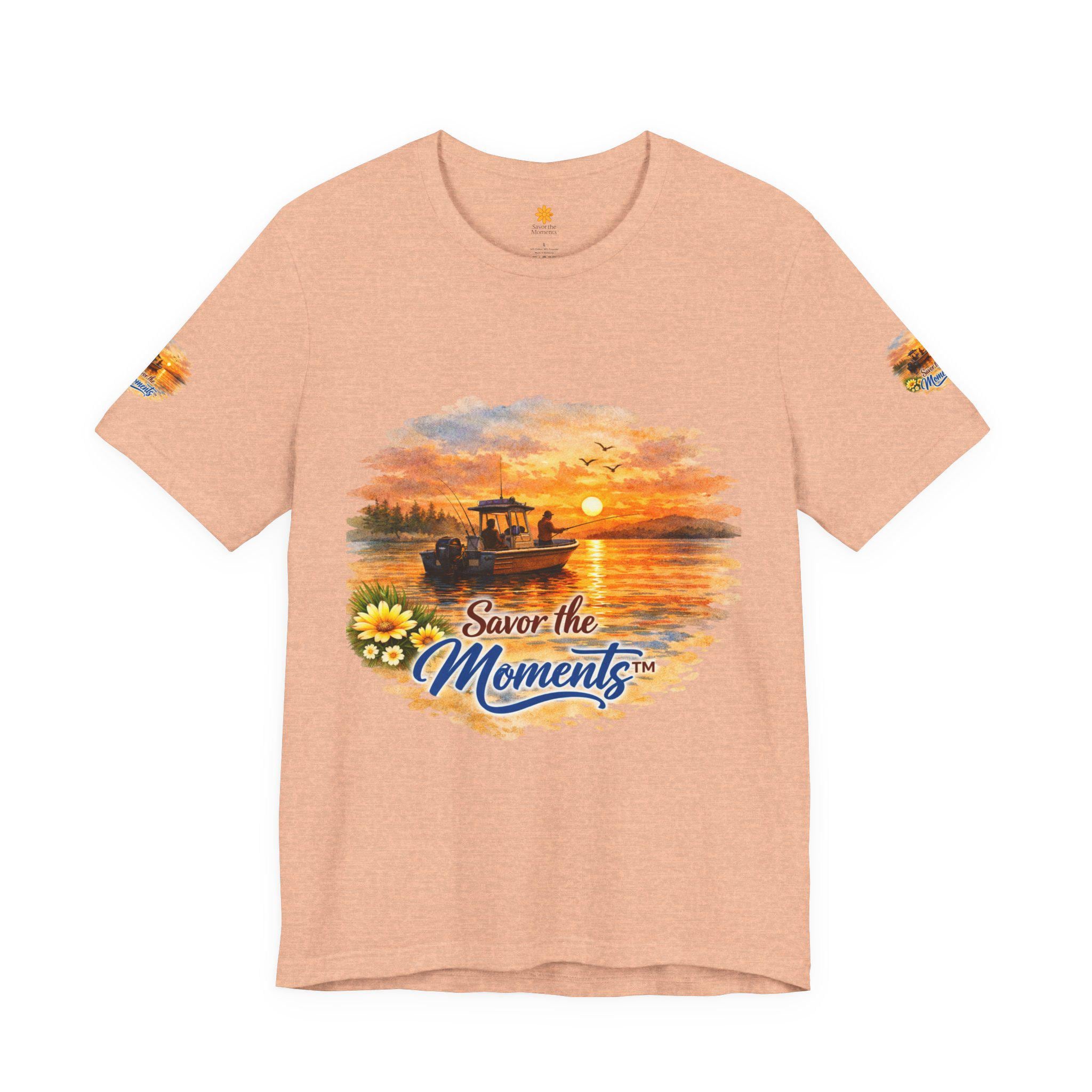 Sunset Fishing Boat Vibe, Savor the Moment Tee.