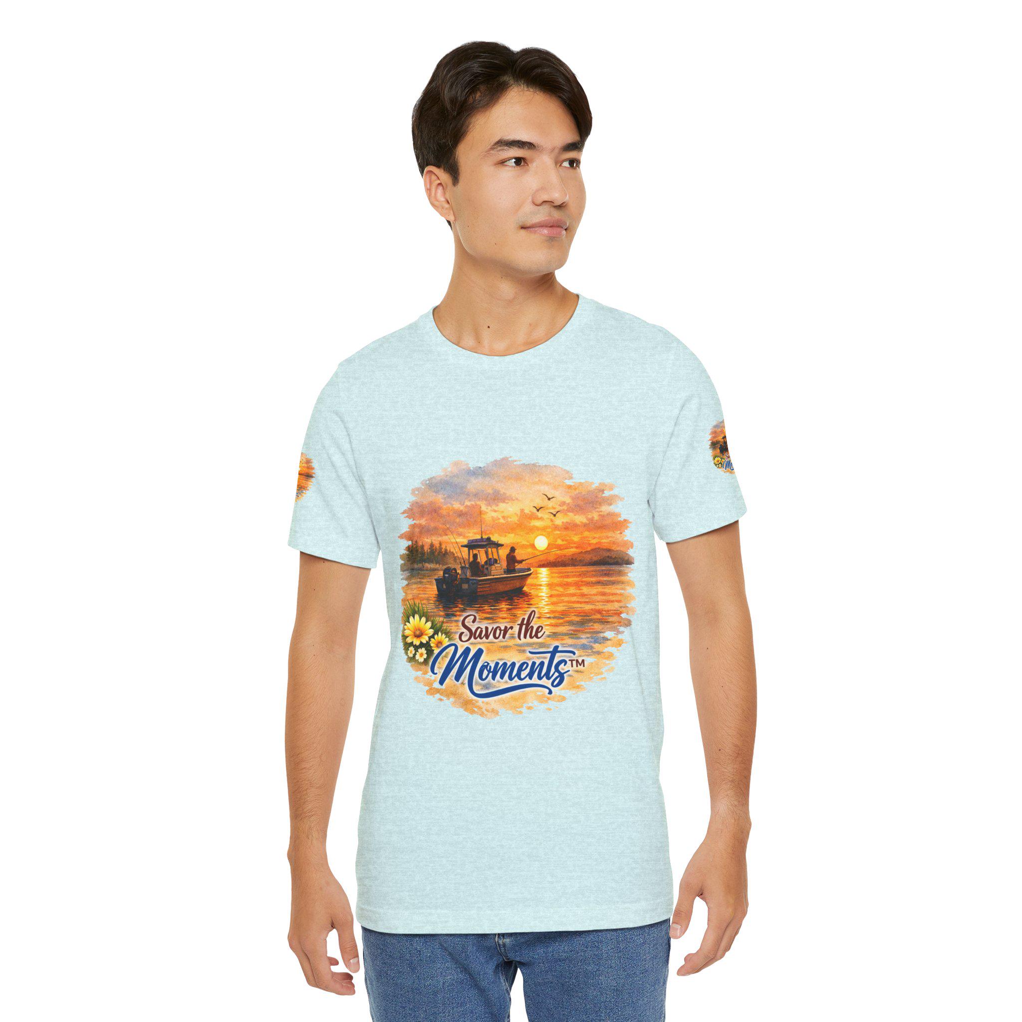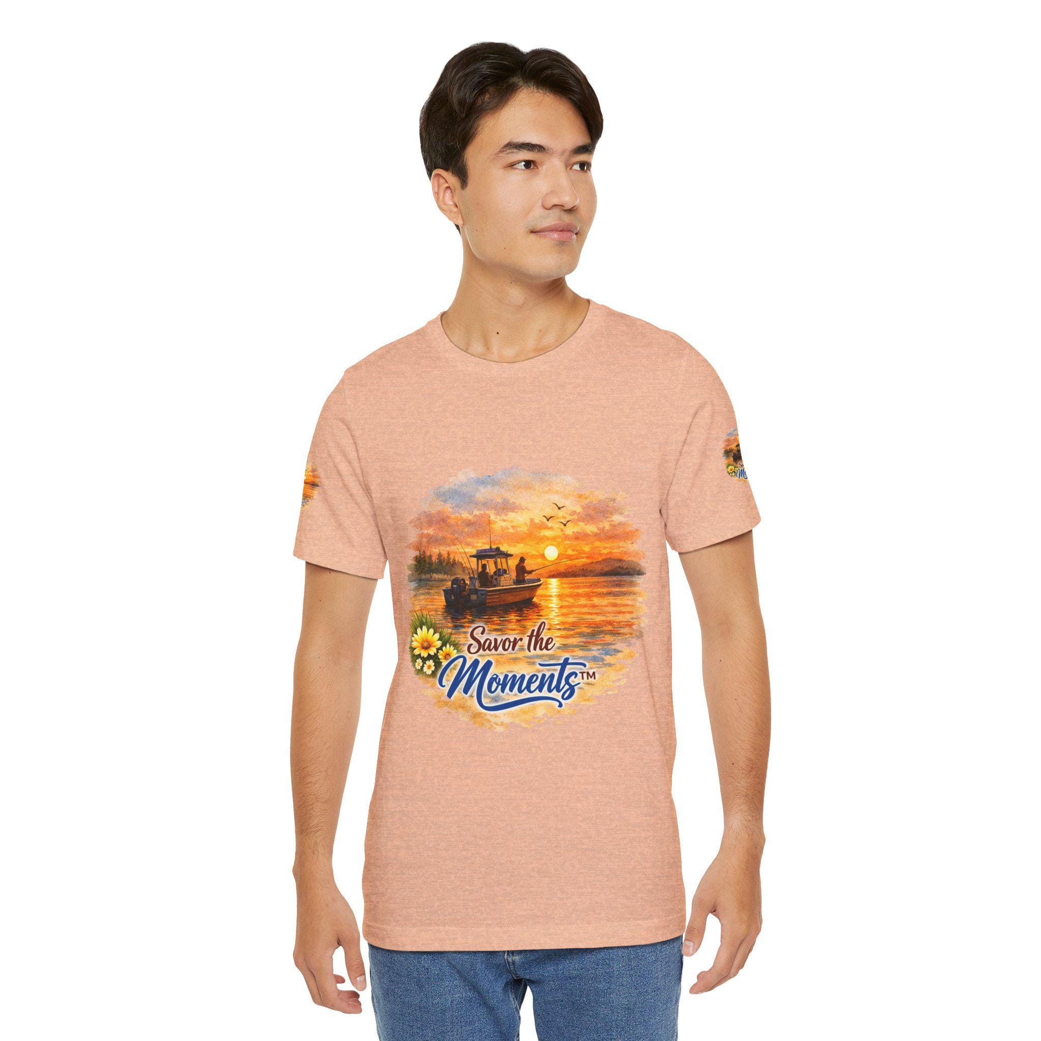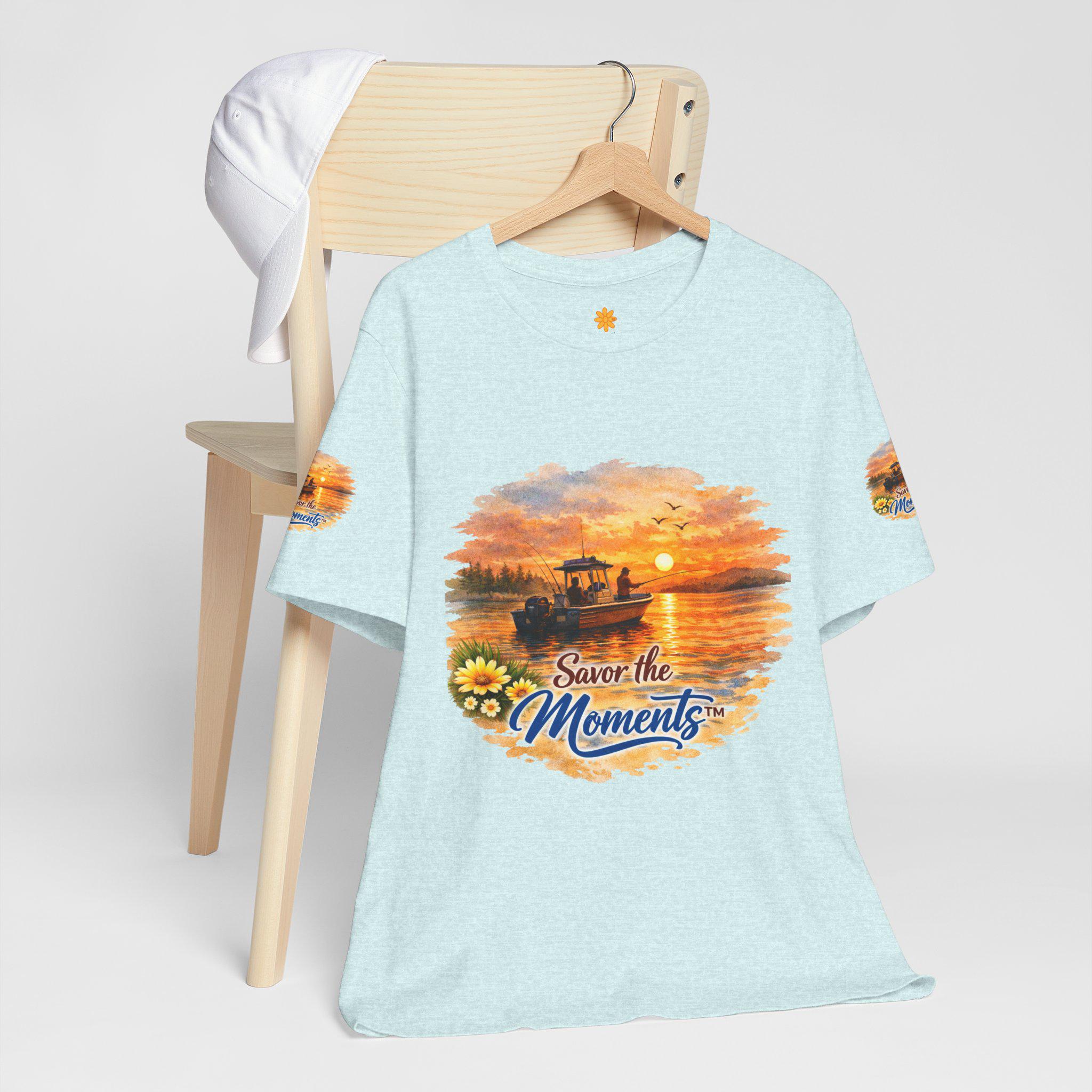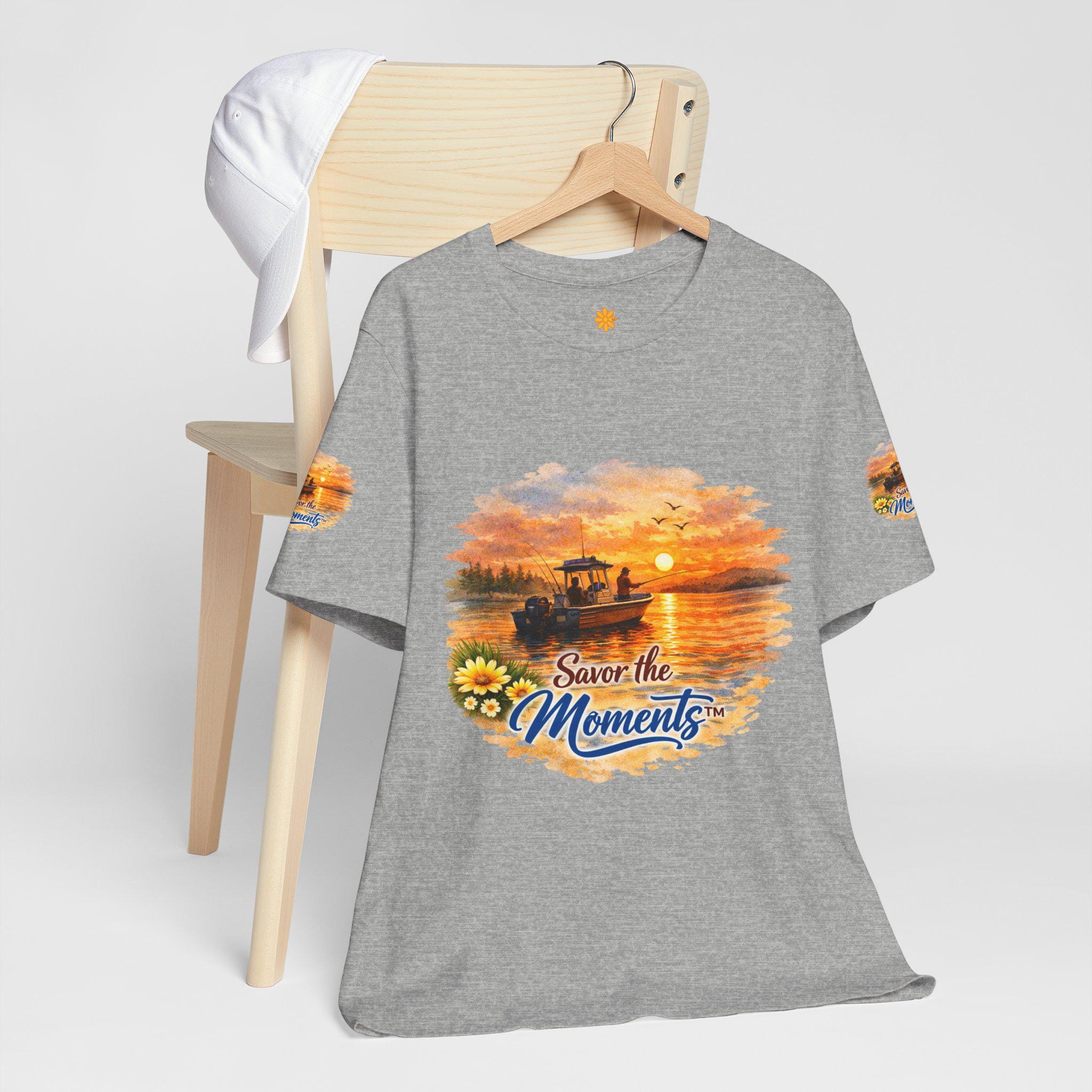 Sunset Fishing Boat Vibe, Savor the Moment Tee.