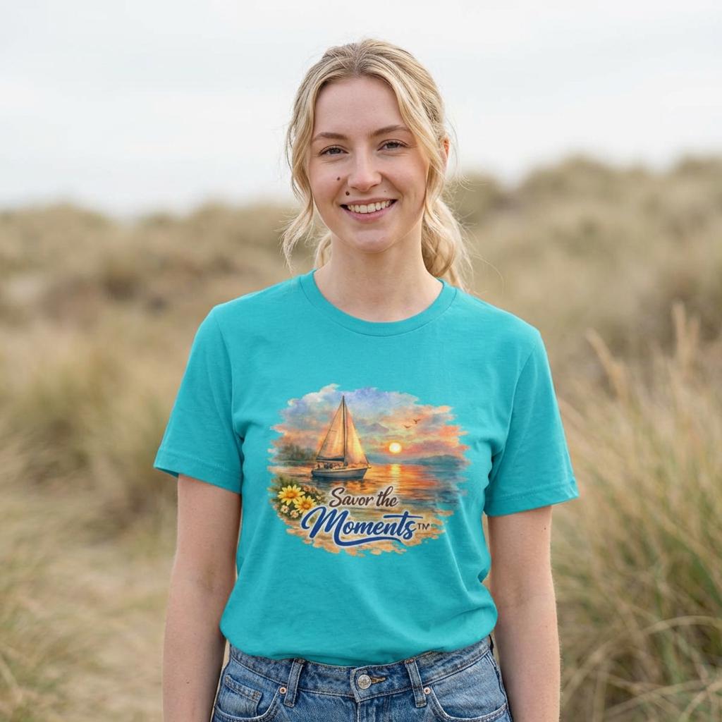Sailboat Tee | Sunset Sailing Beach Theme, Savor the Moments