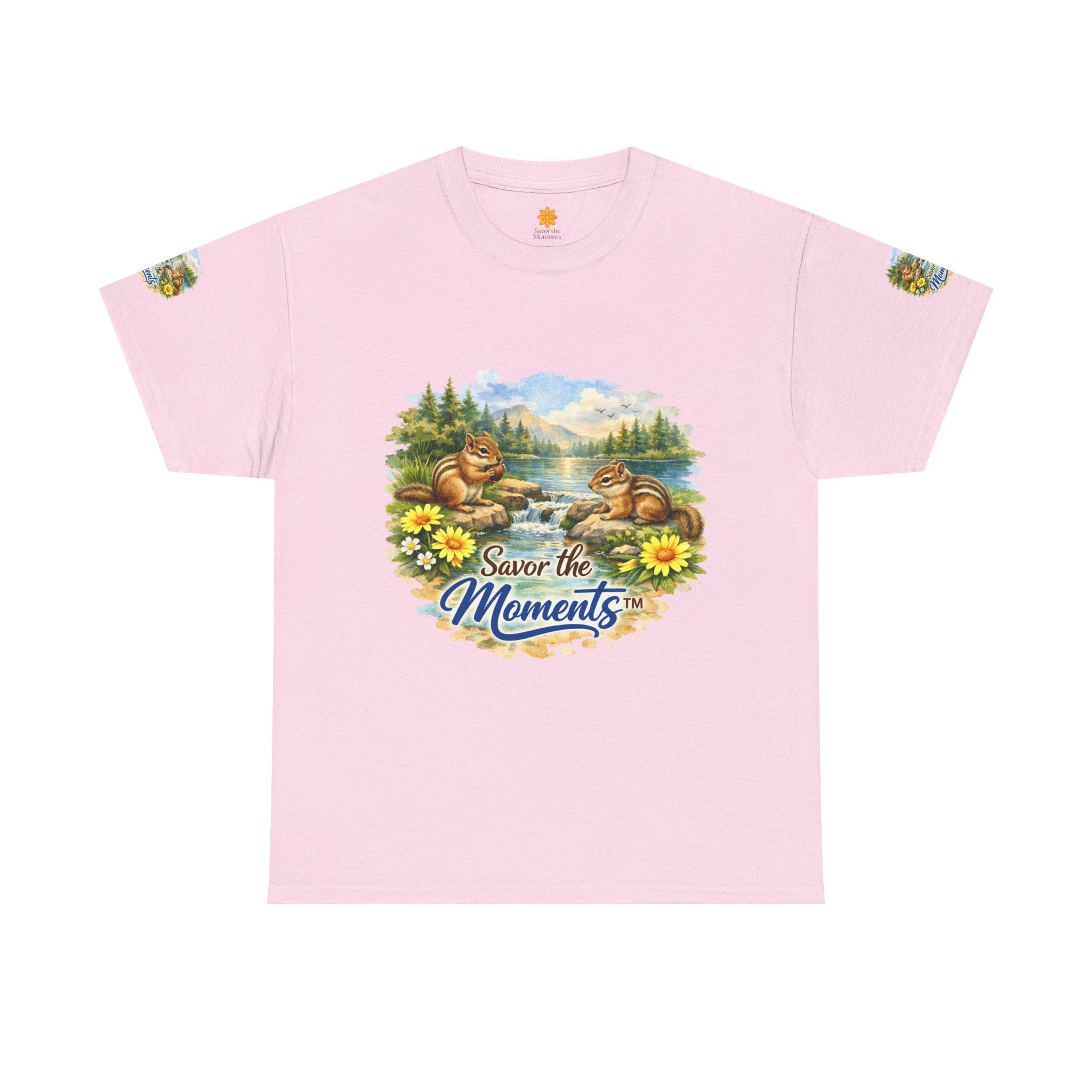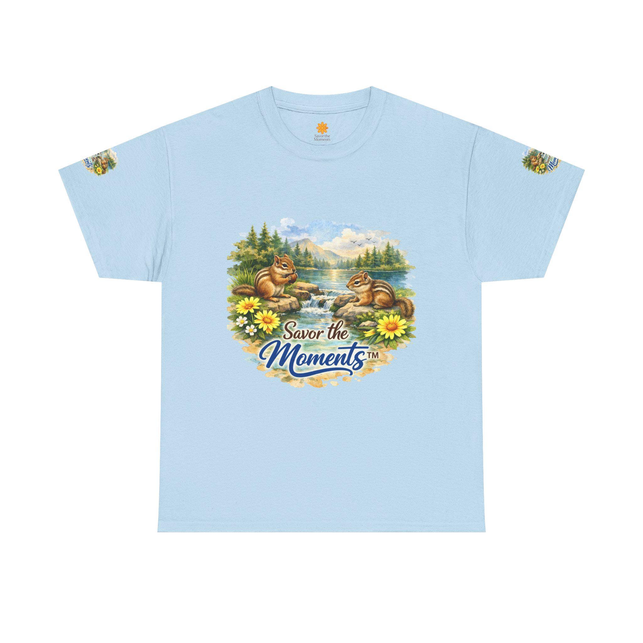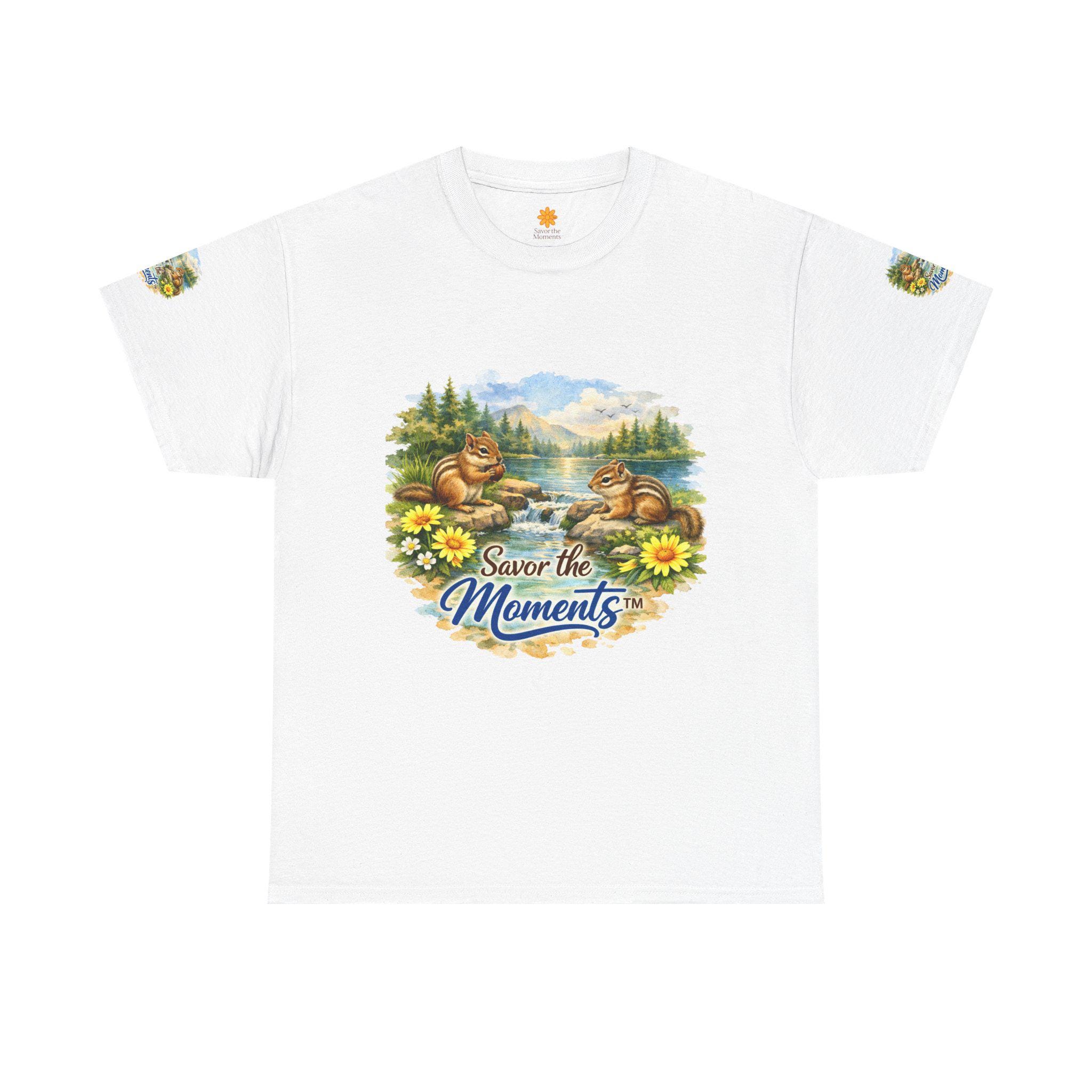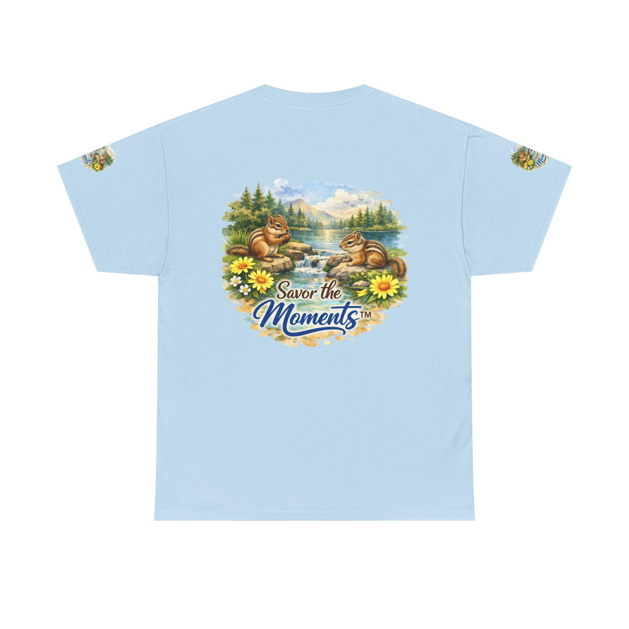 Chipmunk lakeside T-Shirt | nature scene, floral accents, Savor the Moments