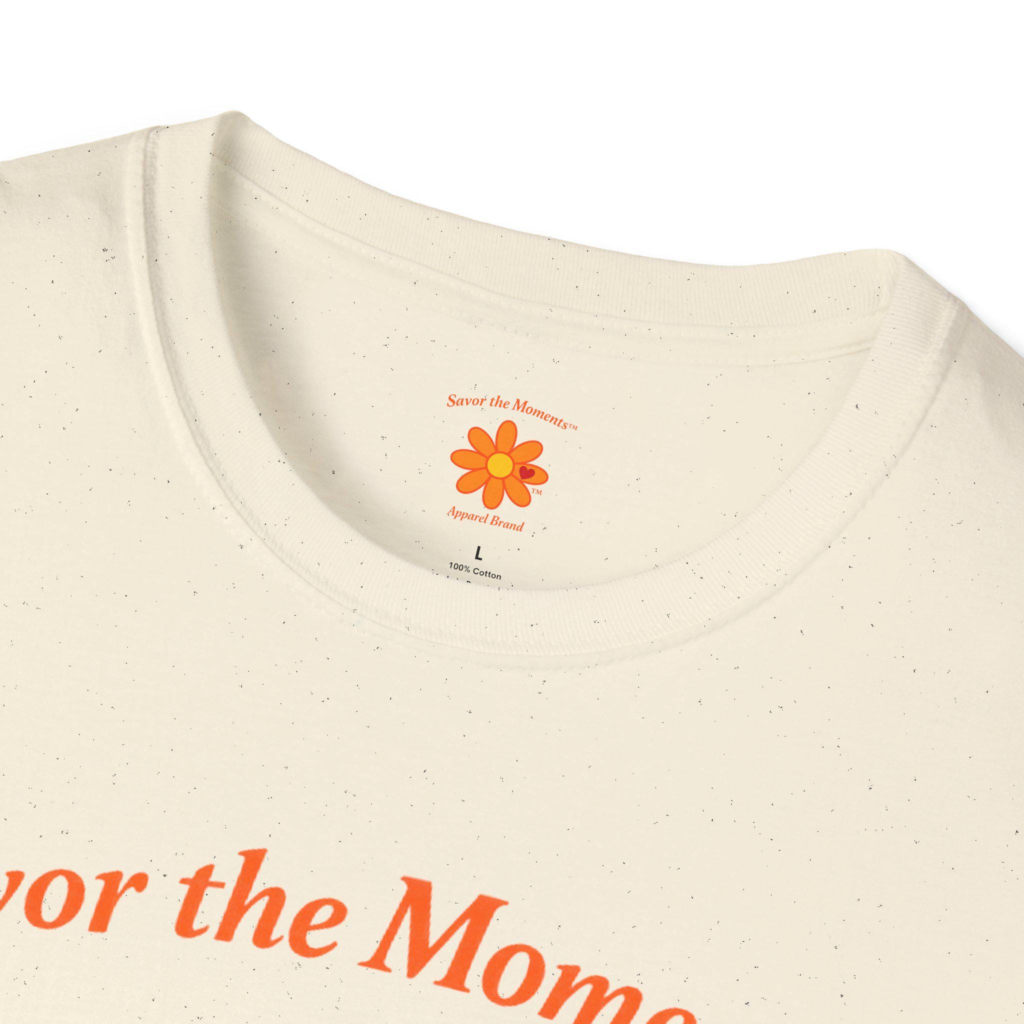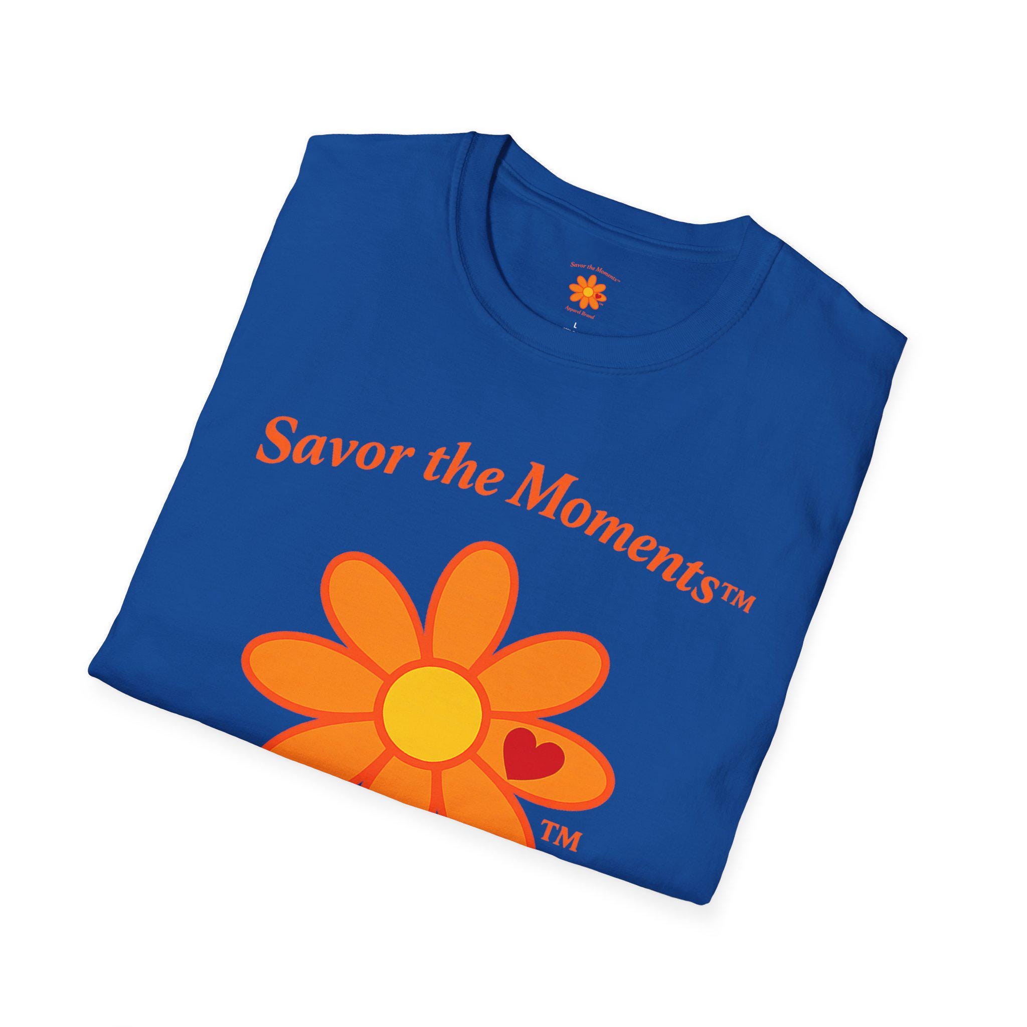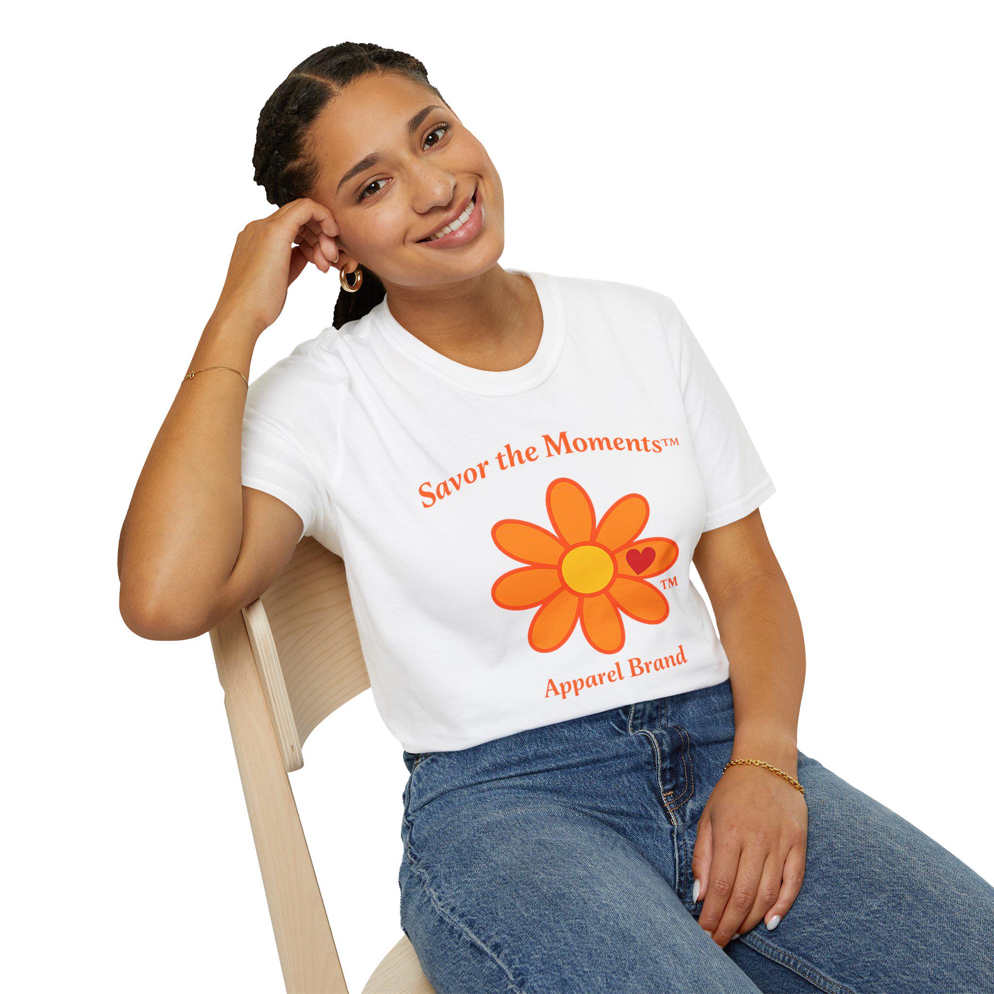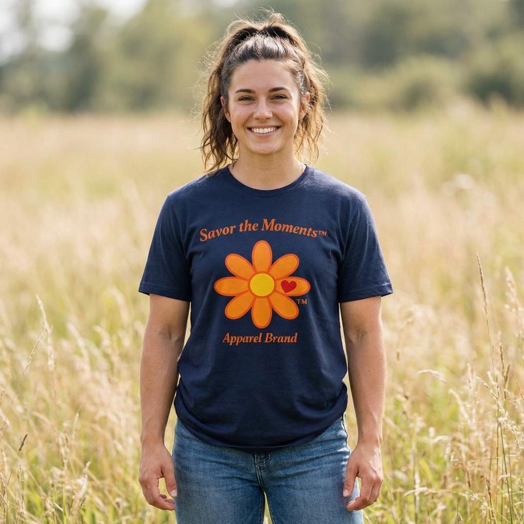 A light, sun-warmed tee that carries a small, joyful rebellion — a bold orange daisy with a tiny heart tucked into a petal and the phrase “Savor the Moments™.” Soft against the skin, this 100% ring-spun cotton shirt wears like a memory: easy, bright, and quietly confident. It slips into weekend routines — coffee runs, thrifted market strolls, porch conversations — and lifts them with a splash of retro color and an upbeat message. The classic crew neck and clean fit make it comfortable layered under a denim jacket or worn solo with high-waist jeans. Finished with carefully printed details on the chest and back, this tee feels personal, like a small talisman to slow down and notice the little things.